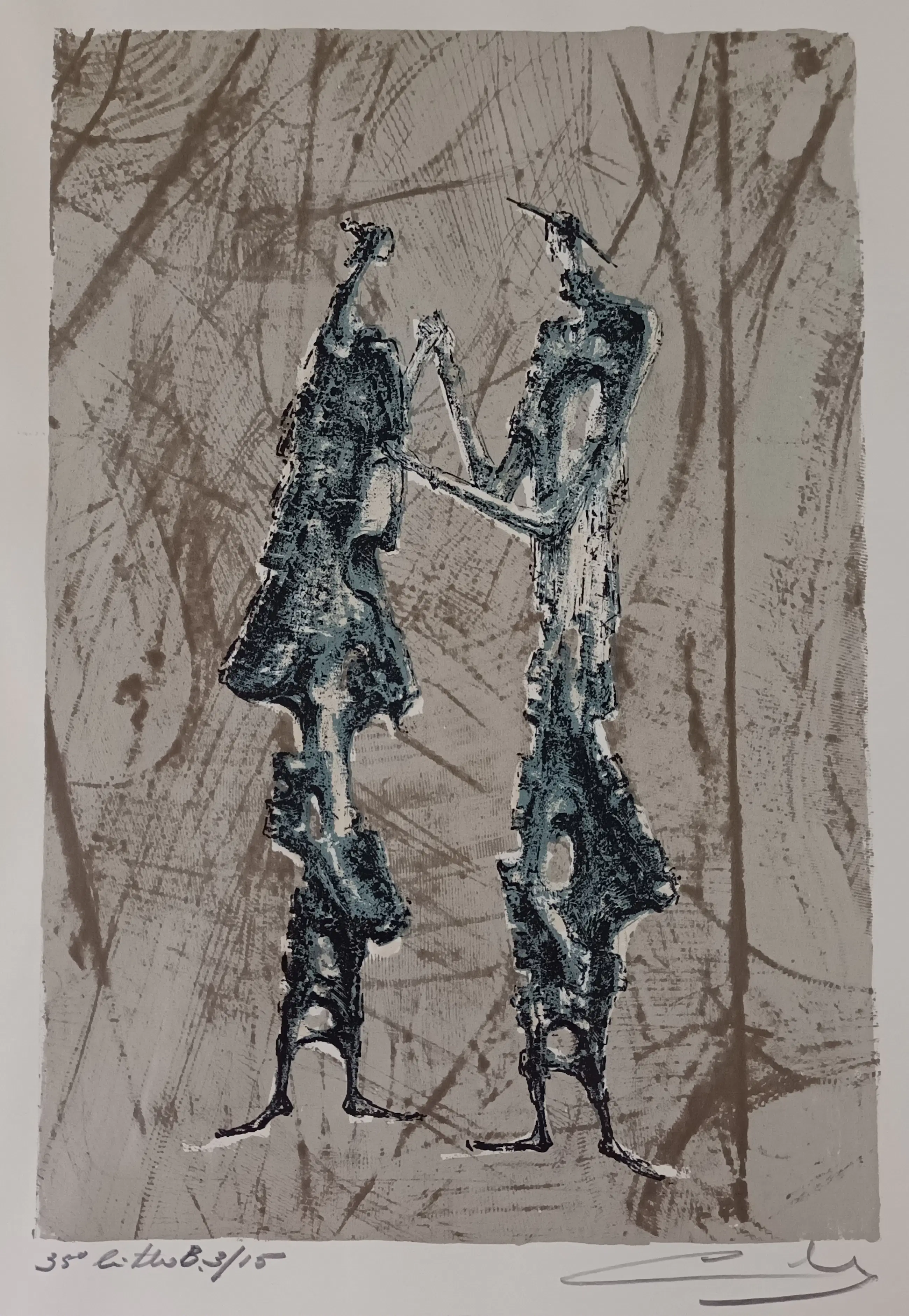 Prachtige originele handgesigneerde en genummerde lithografie van de Belgische beeldhouwer, tekenaar en lithograaf Remy Cornelissen, geboren in 1913 te Turnhout en gestorven in 1990 te Antwerpen. Opleiding aan de Academie te Antwerpen o.l.v. E. Wijnants en tweede plaats voor de Prix de Rome in 1943. Hij was leraar aan de Academie te Turnhout (1937-1947), aan het Atheneum te Berchem (1940-1972), aan de Academie te Antwerpen (1947-1978).
