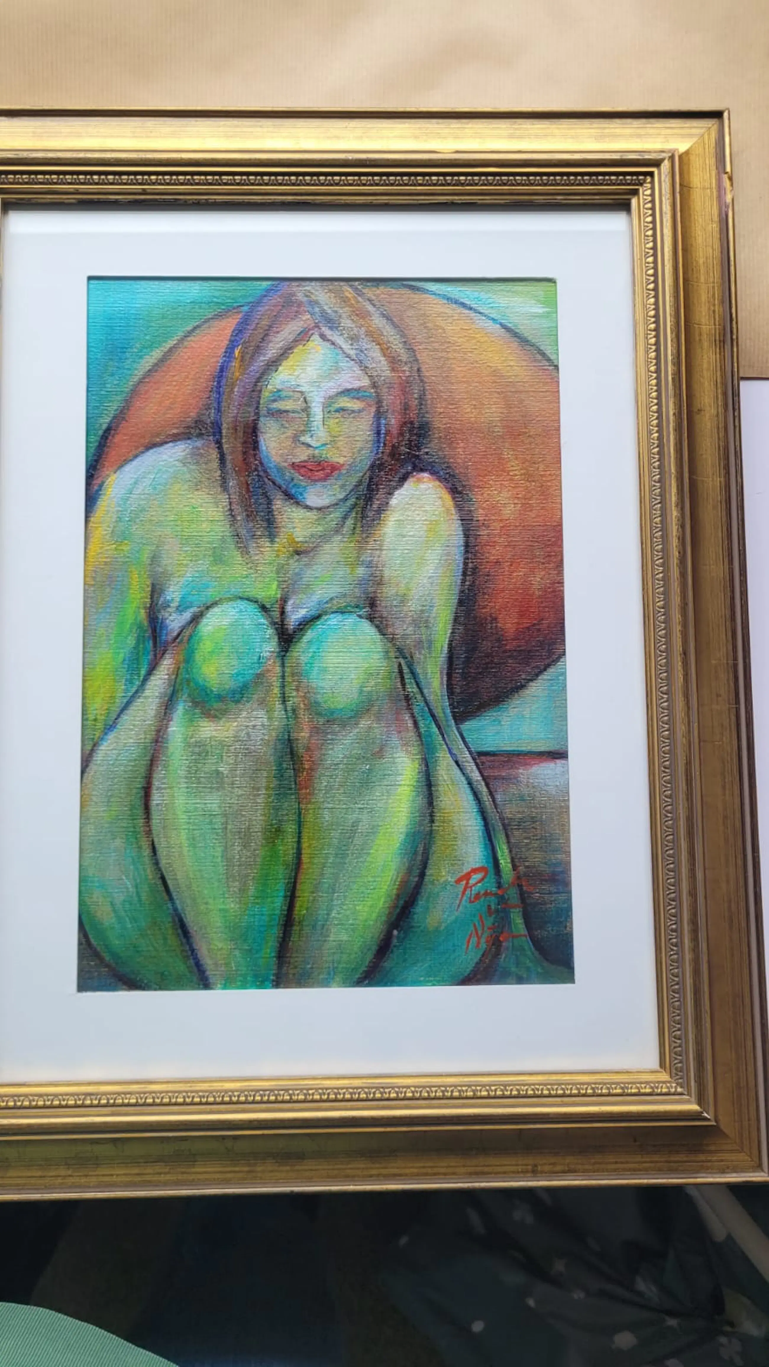 Renate van Nijen schildert veel vrouwen in diverse posities, soms licht erotisch, vaak ingetogen.