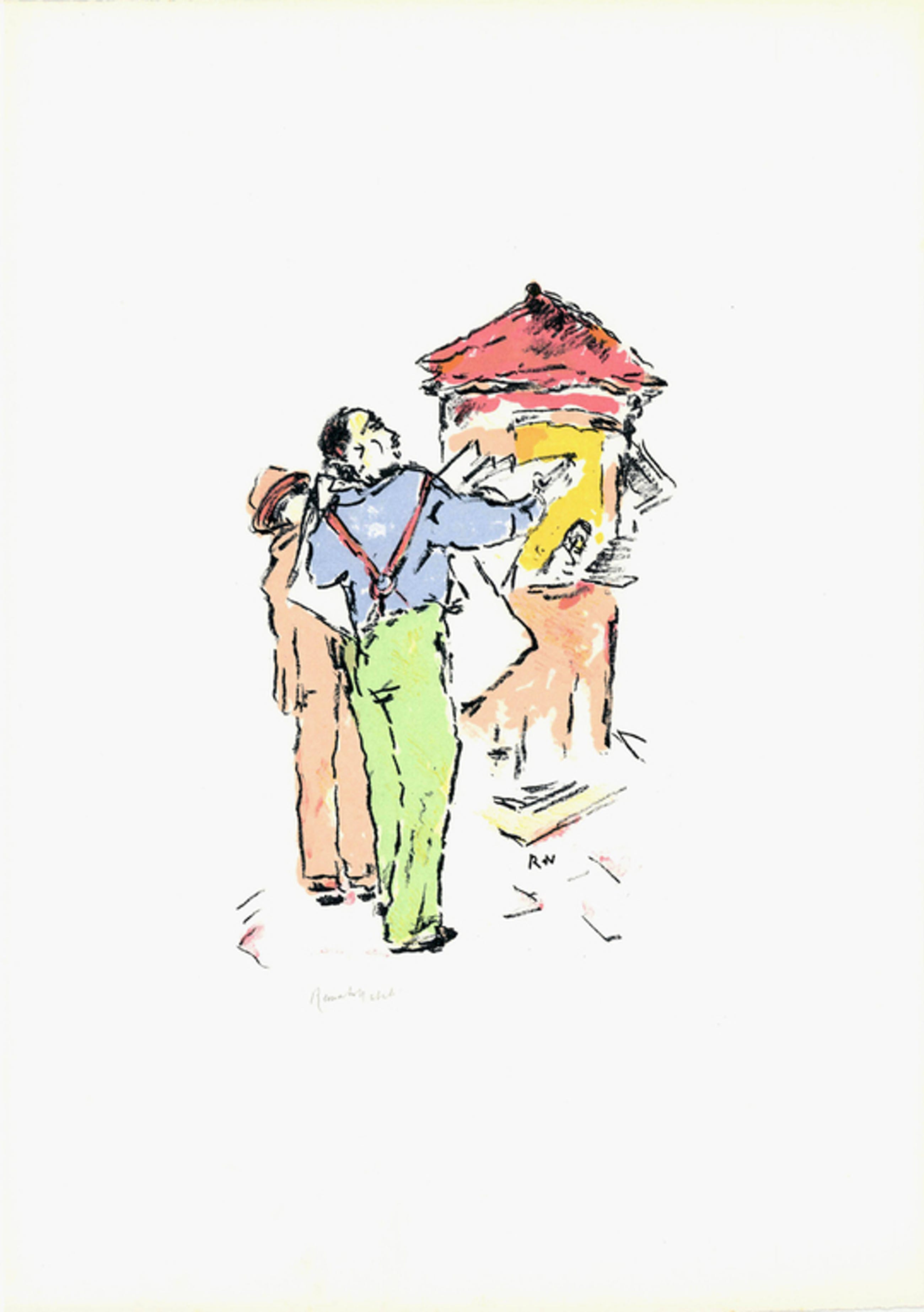 Materiaal: Kleurenlitho op geschept Bütten papier.