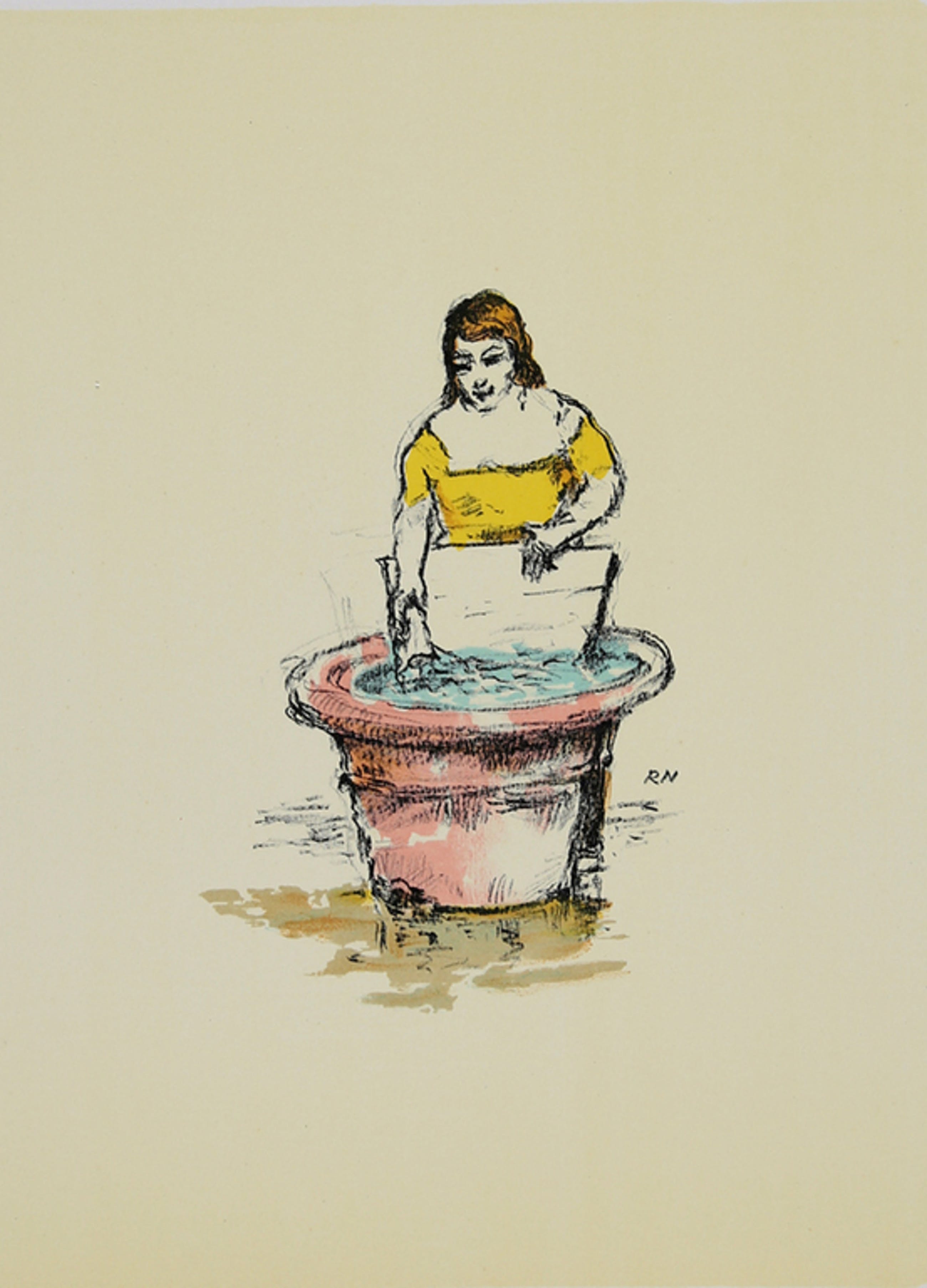 Materiaal: Kleurenlitho op geschept Bütten papier.
