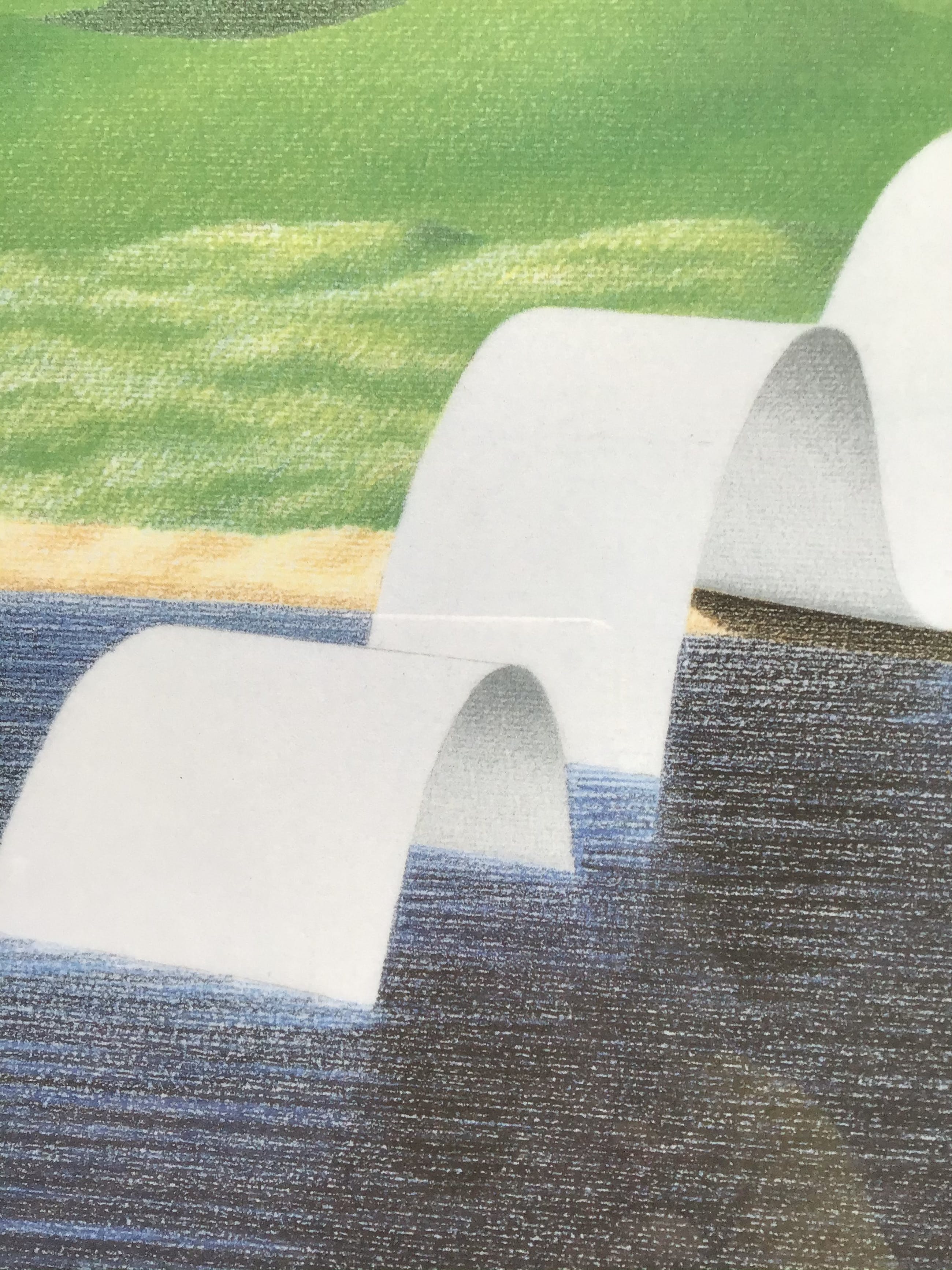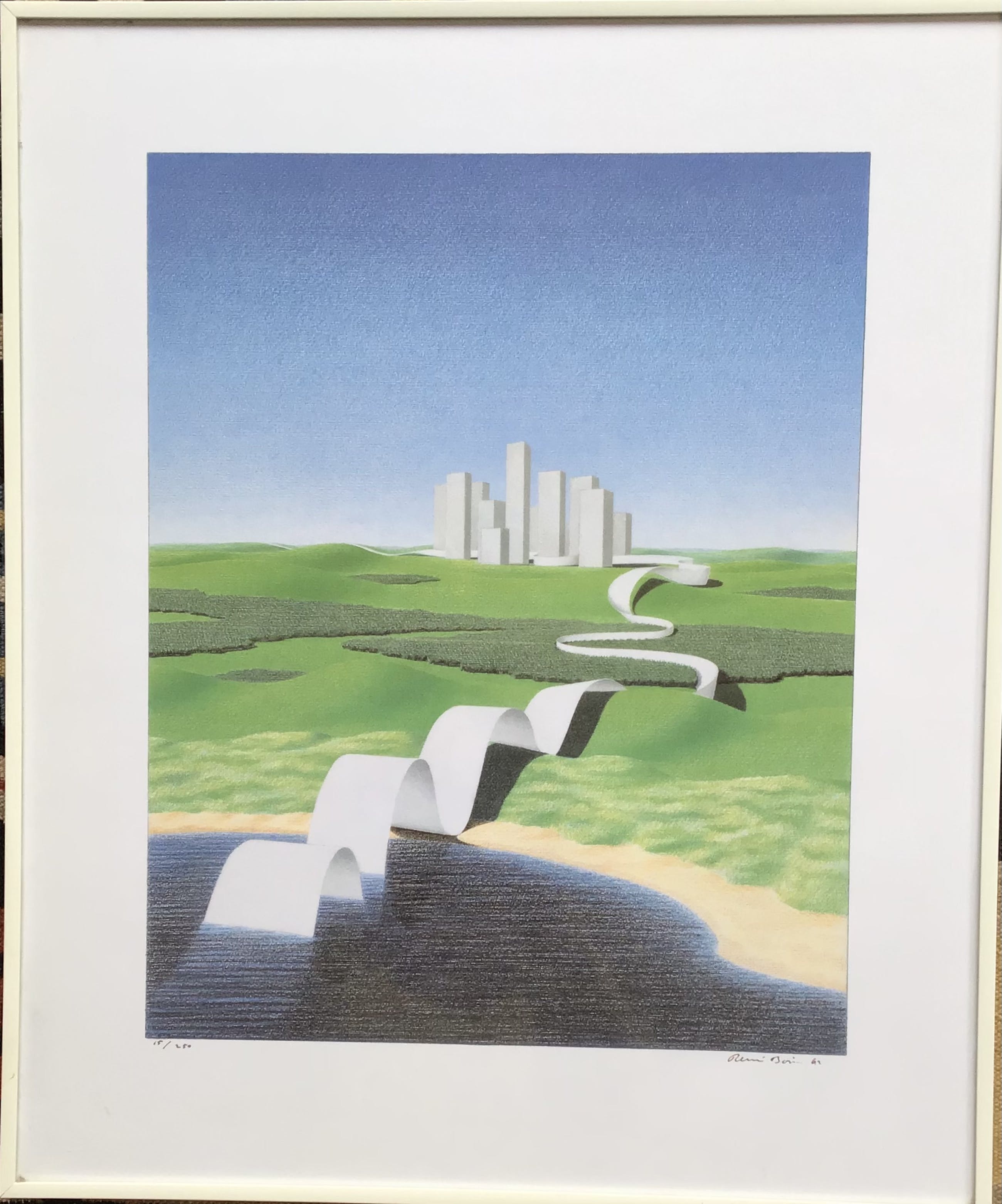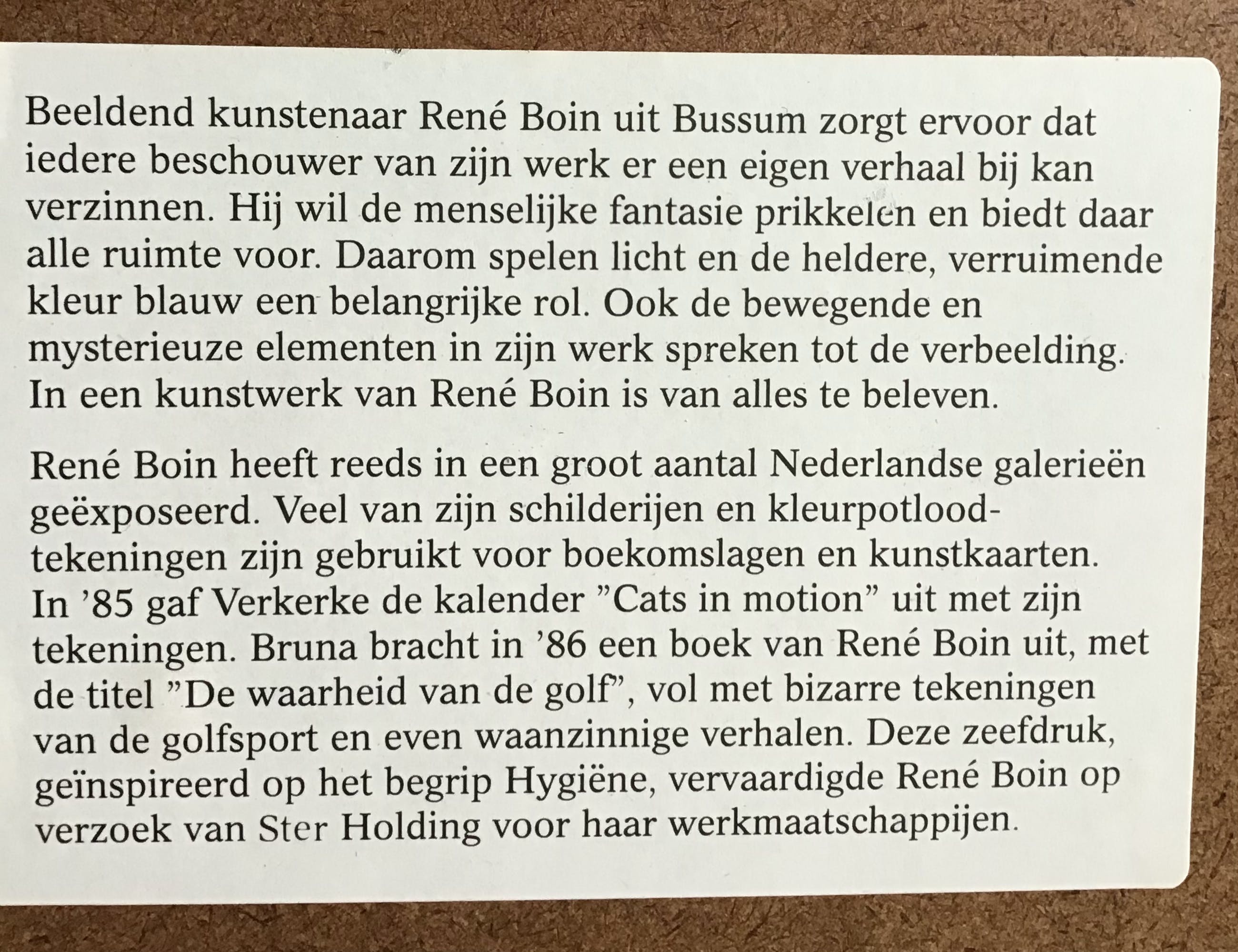Mooie grote zeefdruk van René Boin Hand gesigneerd Jaar 1992 Oplage 15/250 Het werk van René Boin staat er om bekend dat iedereen er zijn eigen verhaal bij kan verzinnen. Tekende veel over golf Ingelijst in witte lijst Conditie zeer goed Door glas gefotografeerd