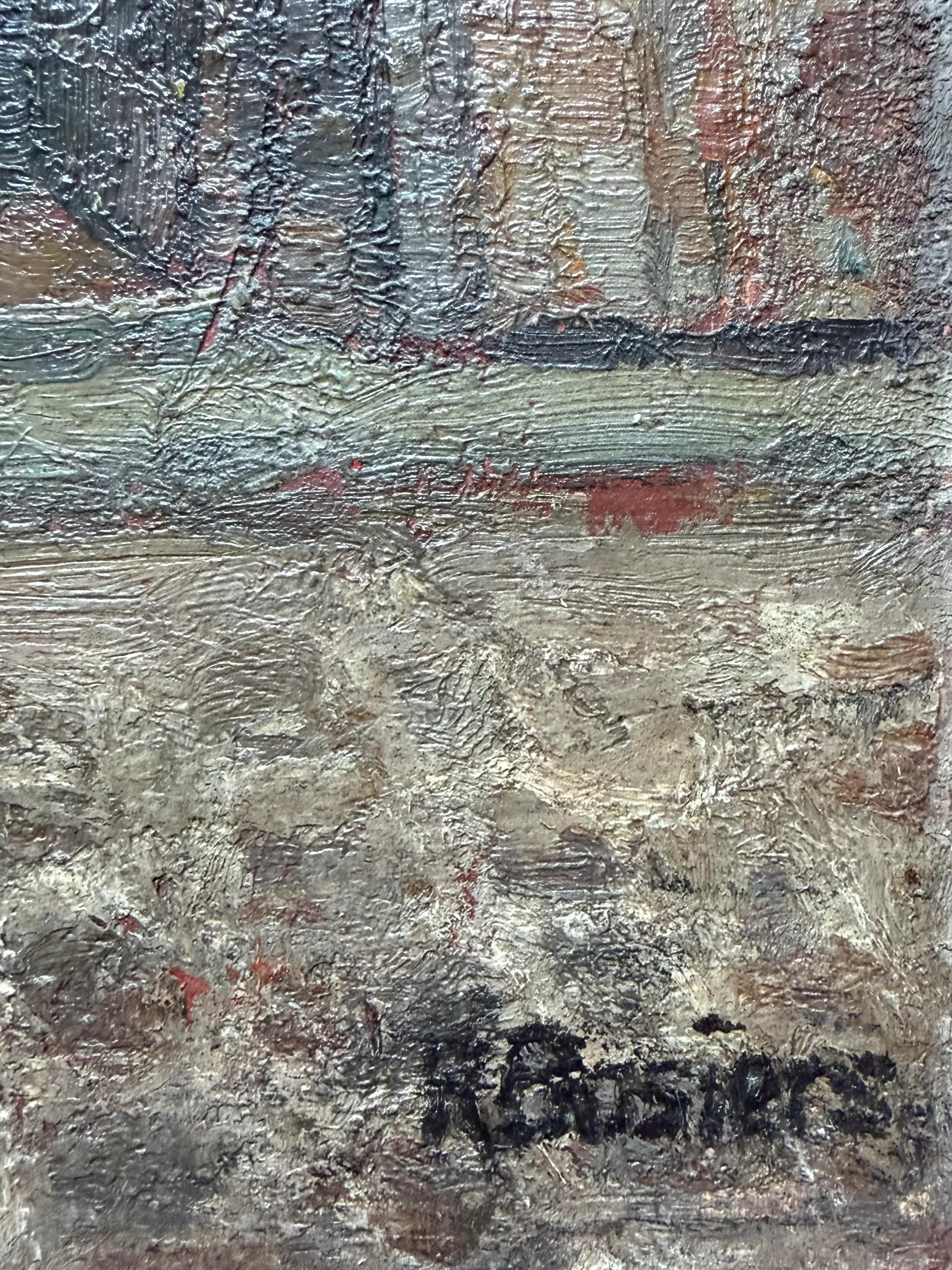 Het schilderij is rechtsonder gesigneerd “R. Bosiers”.