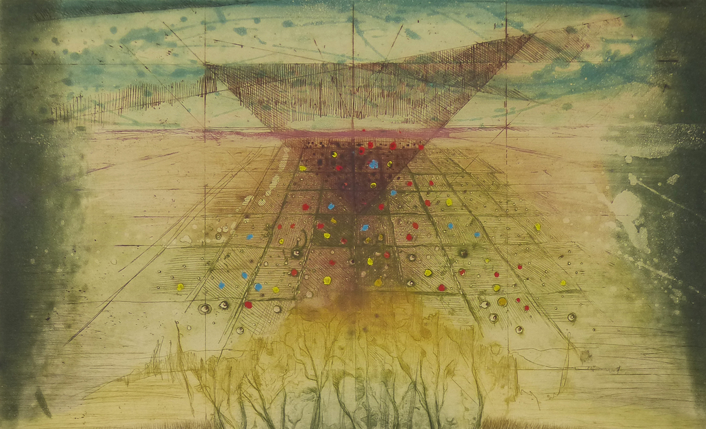 René Carcan (1925-1993) was een Belgische etser, aquarellist en beeldhouwer. Eerst volgt hij een opleiding als beeldhouwer aan de Academie van Sint-Joost-ten-Node bij Gustave Jacobs en dan, van 1941 tot 1946, een schildersopleiding aan de Academie van Brussel bij Jacques Maes en Léon Devos. De vier elementen vinden bij Carcan een nieuwe symbolische interpretatie waarin de mens af en toe schuchter opduikt, alsof hij bang is deze sublieme paradijselijke harmonie te verstoren. Deze scherpe tekenaar wordt ook een gedurfde colorist, met een voorliefde voor zonnig rood en oranje, soms besprenkeld met spatten citroengeel, en voor watergroen, azuurblauw en natuurlijk de Siena kleuren; warme tinten dus om een vruchtbare aarde te bezingen die achtereenvolgens baadt in lente- of zomerlicht. Hij was een vaardige etser – in staat om rechtstreeks in de koperplaat te etsen – en hij was ook zeer productief want zijn twee complete catalogi bevatten iets meer dan 800 gravures. Als veelzijdige artiest, altijd aangetrokken door het experiment, doet hij ook aan beeldhouwen, ontwerpt hij juwelen of illustreert hij werk van bevriende dichters zoals André Sempoux, Jean Orizet en Philippe Roberts-Jones.
