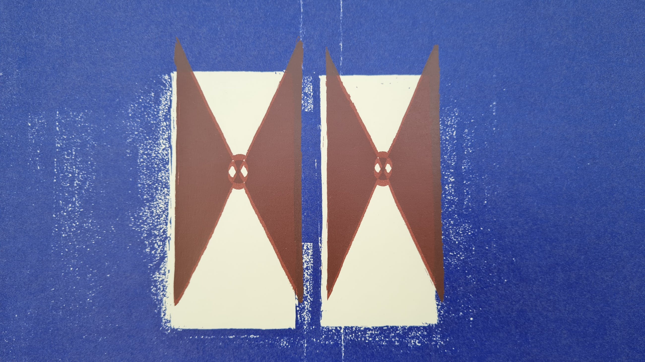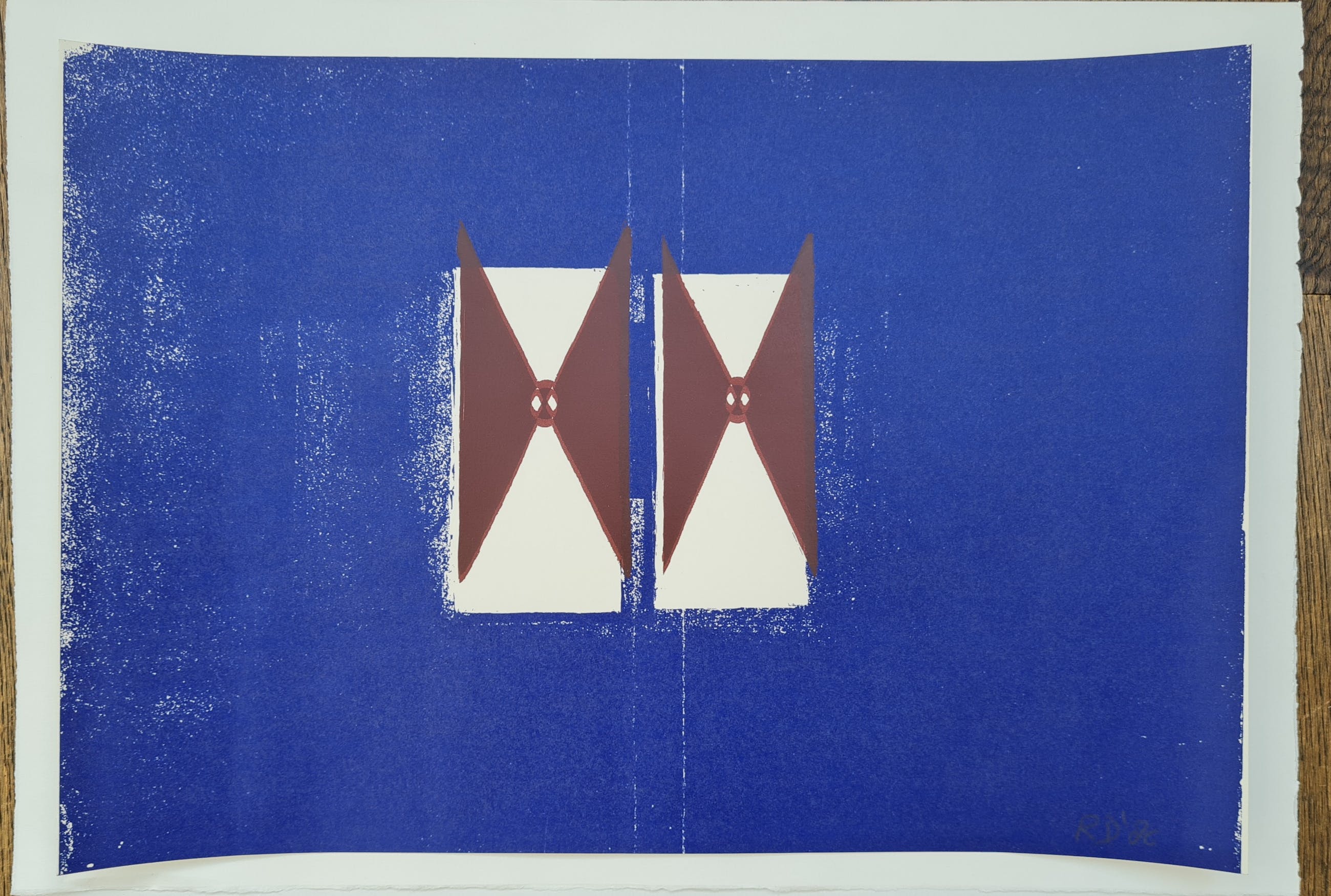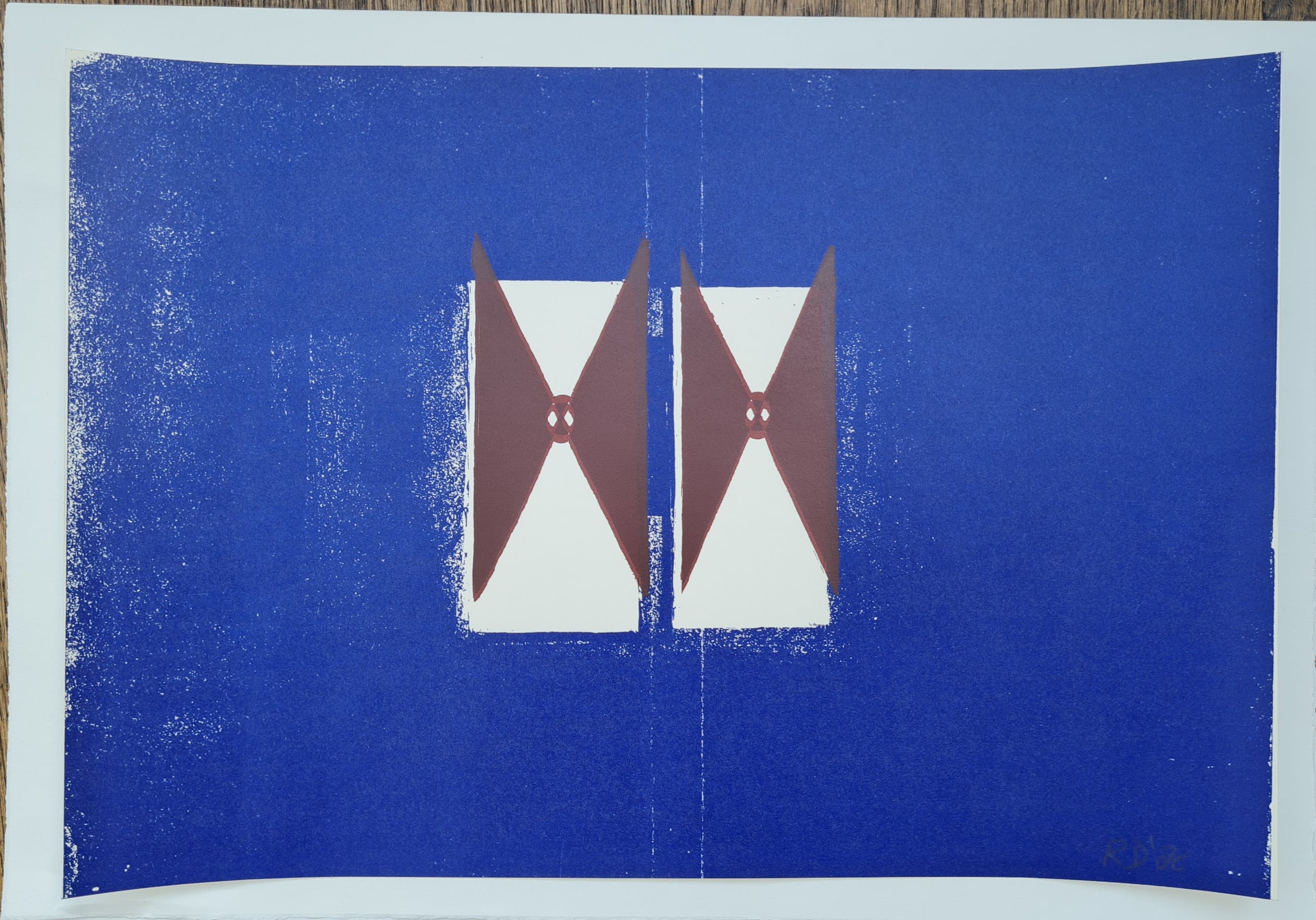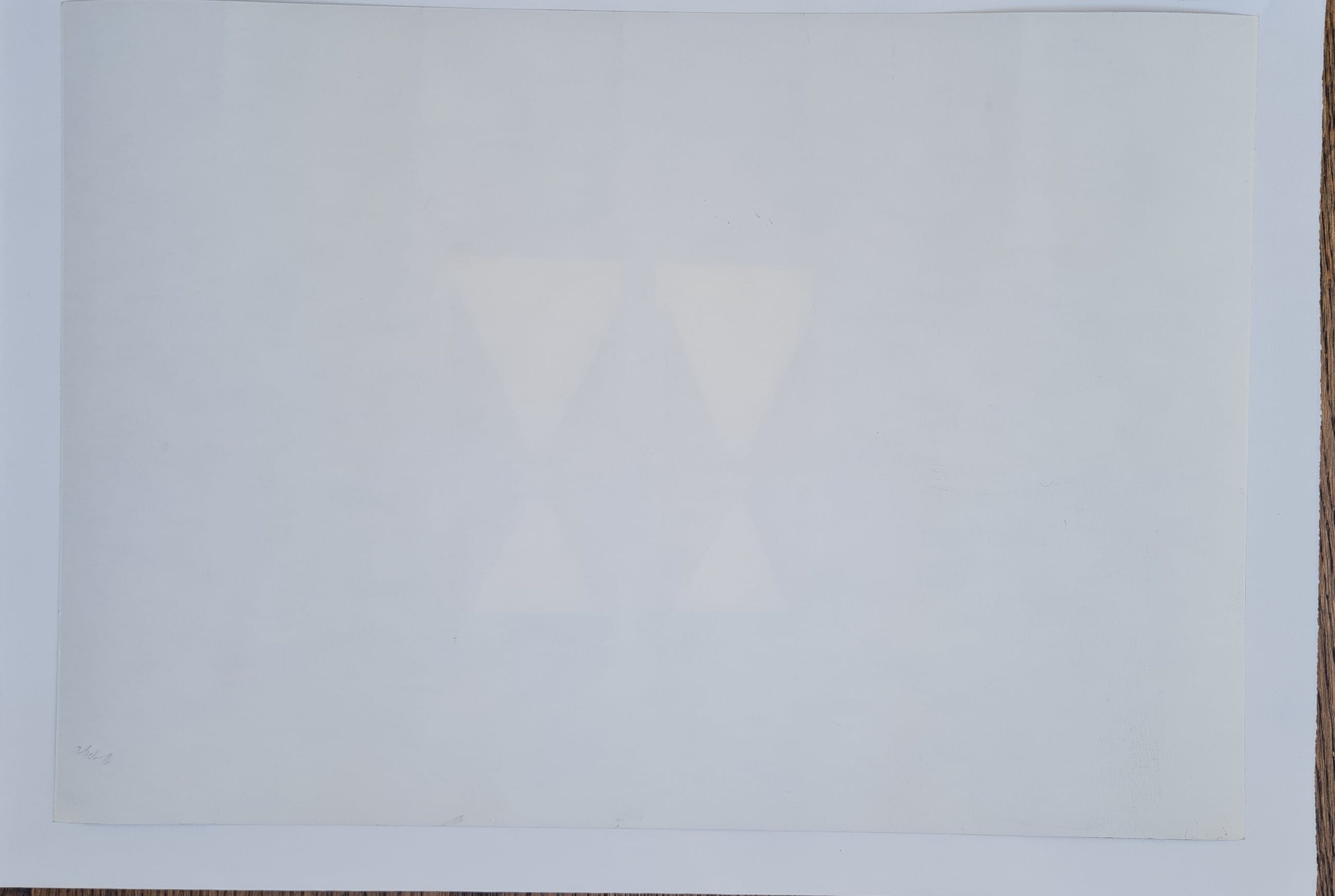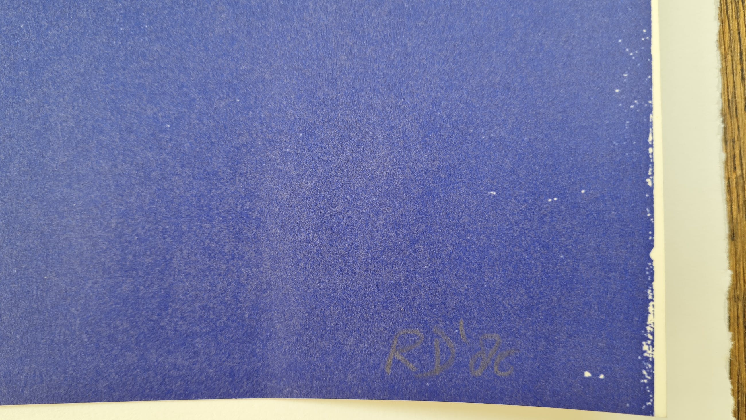 Het werk heeft opgerold gezeten in een brede koker en rolt iets op aan de kanten (geen kreukjes). Wanneer onder passe-partout gezet is hier niet meer van te zien.