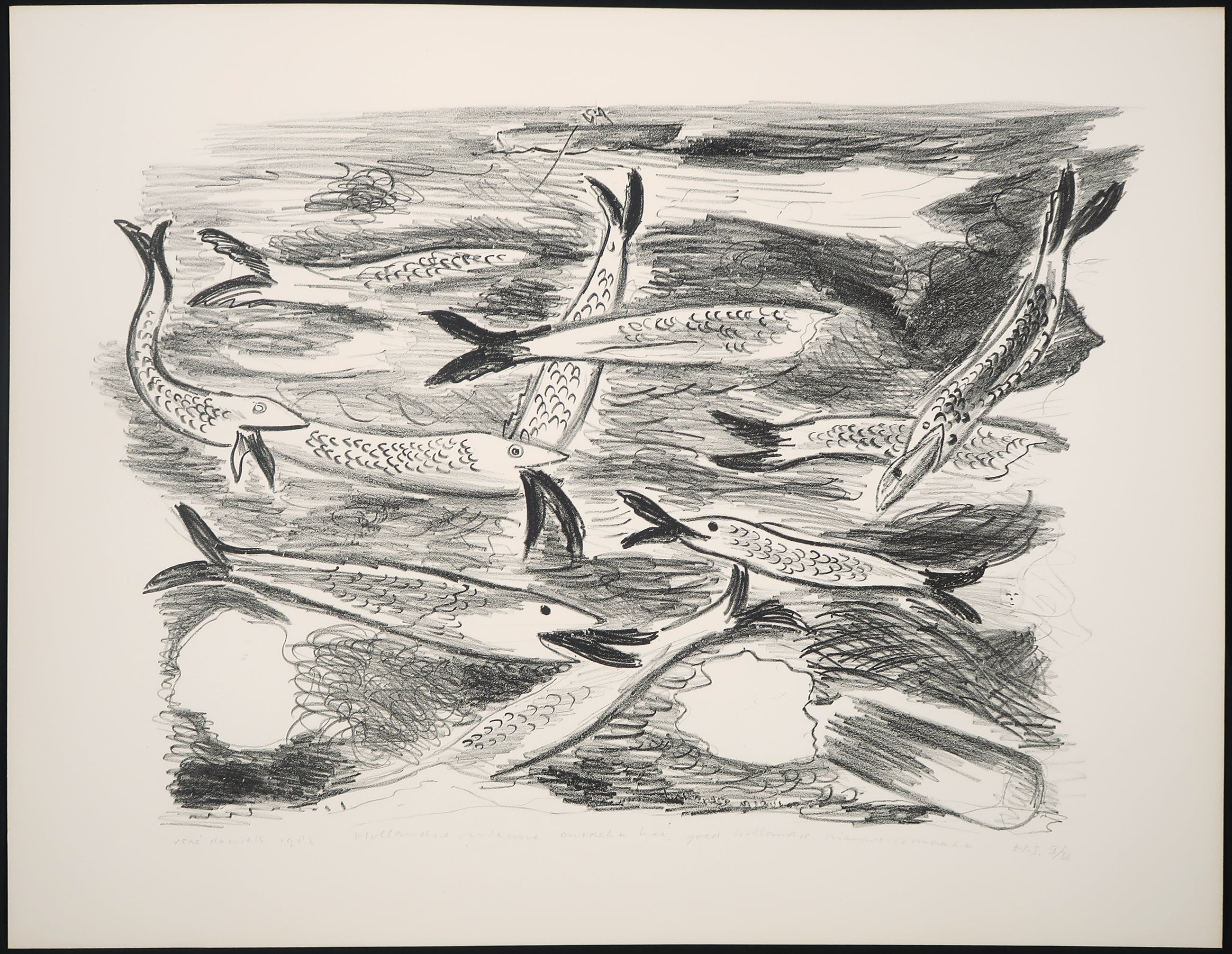 Afkomstig uit de map ’10 litho’s’ die verscheen op 19 september 1982 met litho’s van verschillende kunstenaars waarvan gelijktijdig een tentoonstelling werd georganiseerd in het Van Reek museum Apeldoorn. Gedrukt door steendrukkerij Amsterdam.