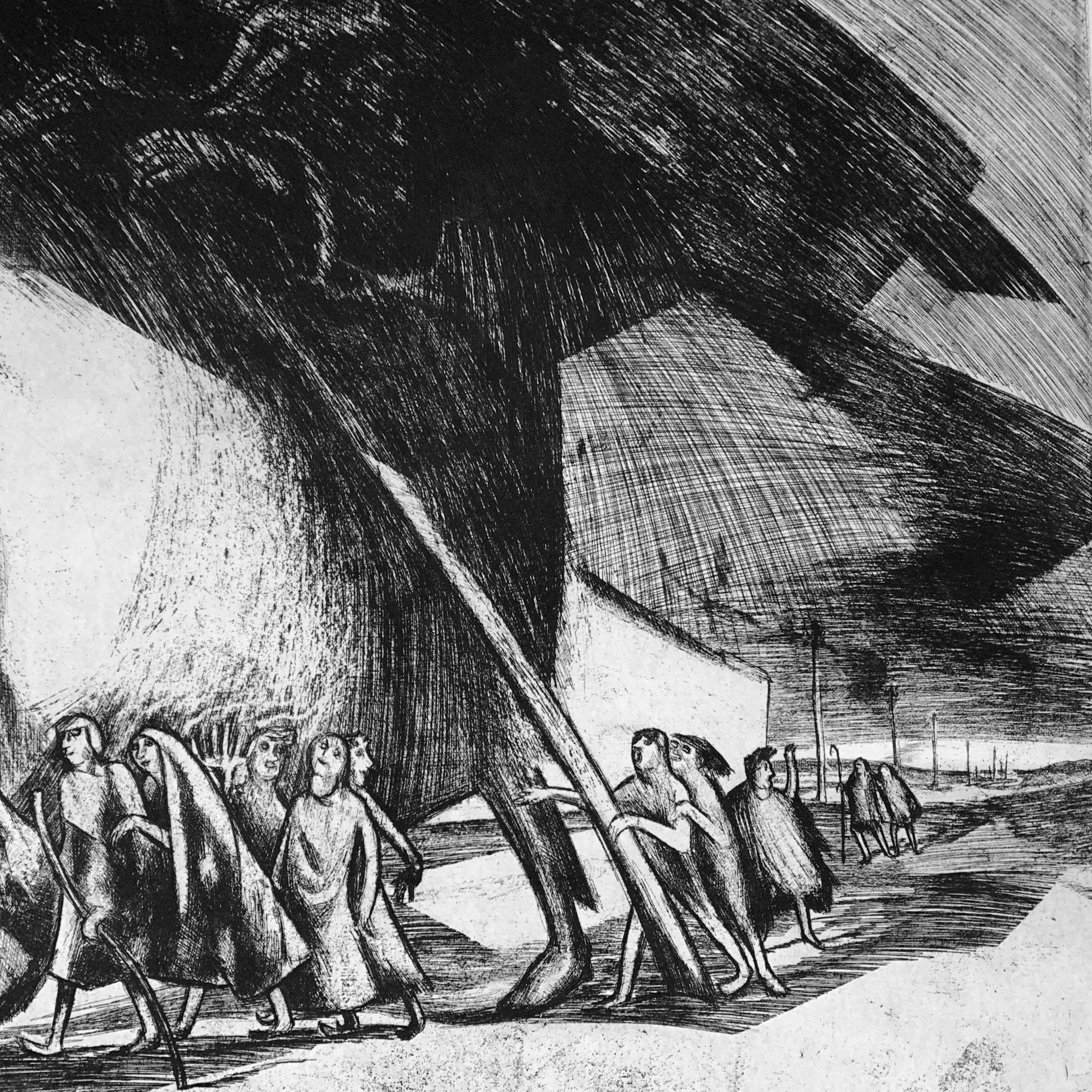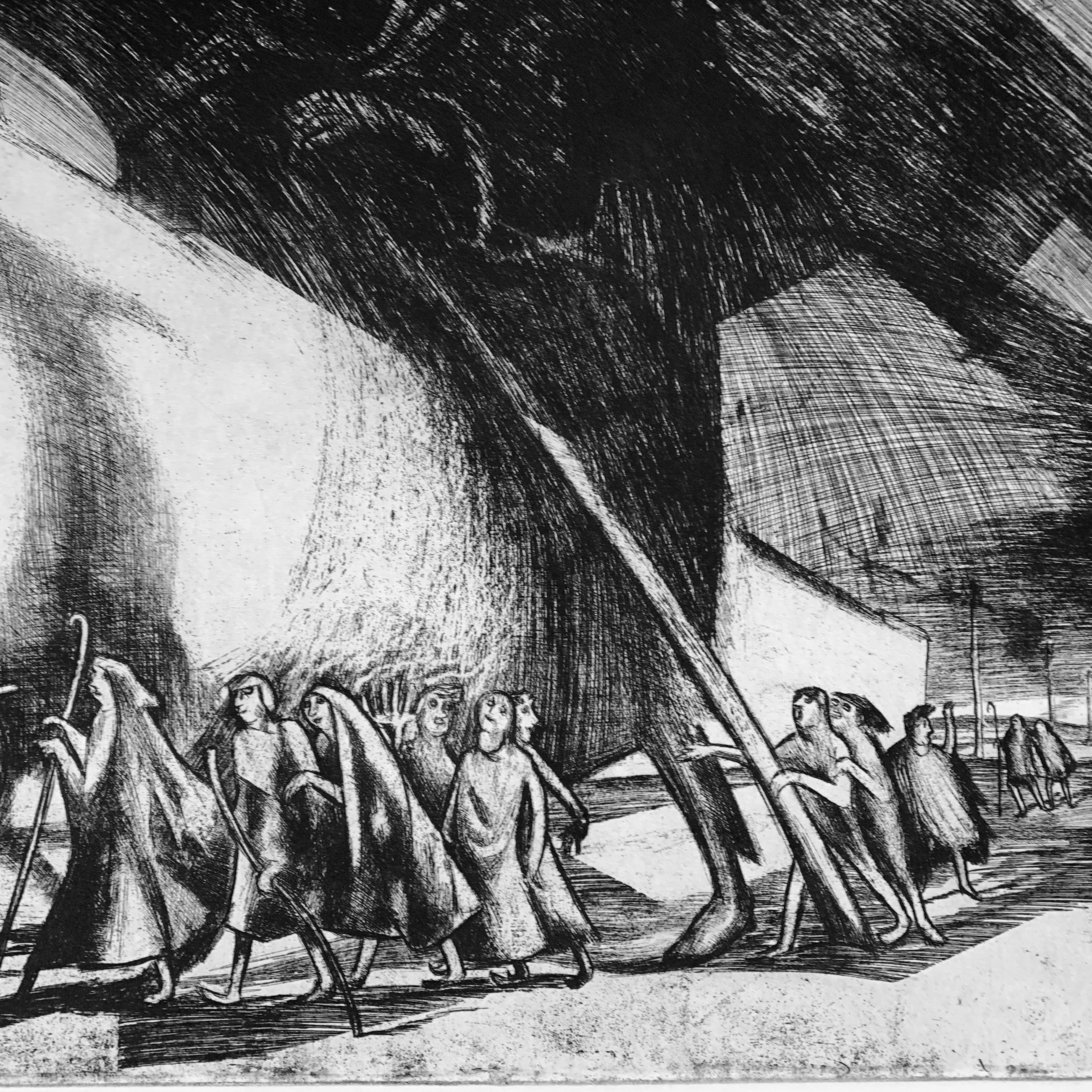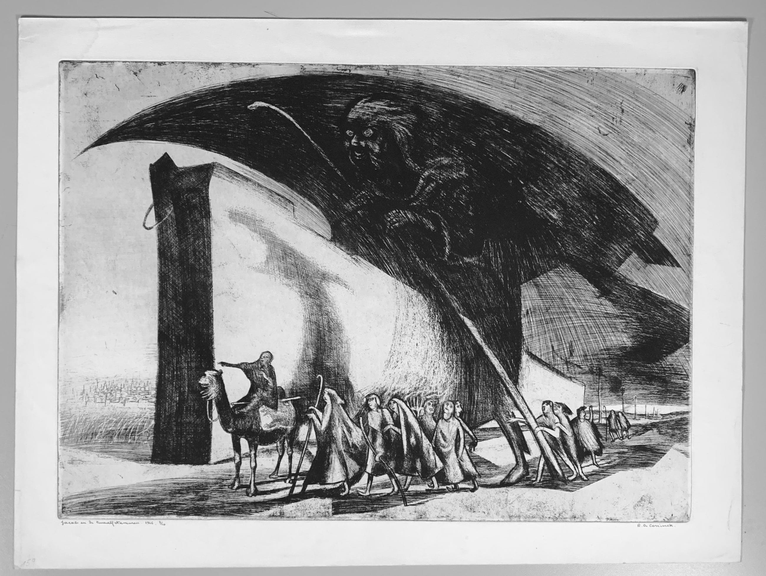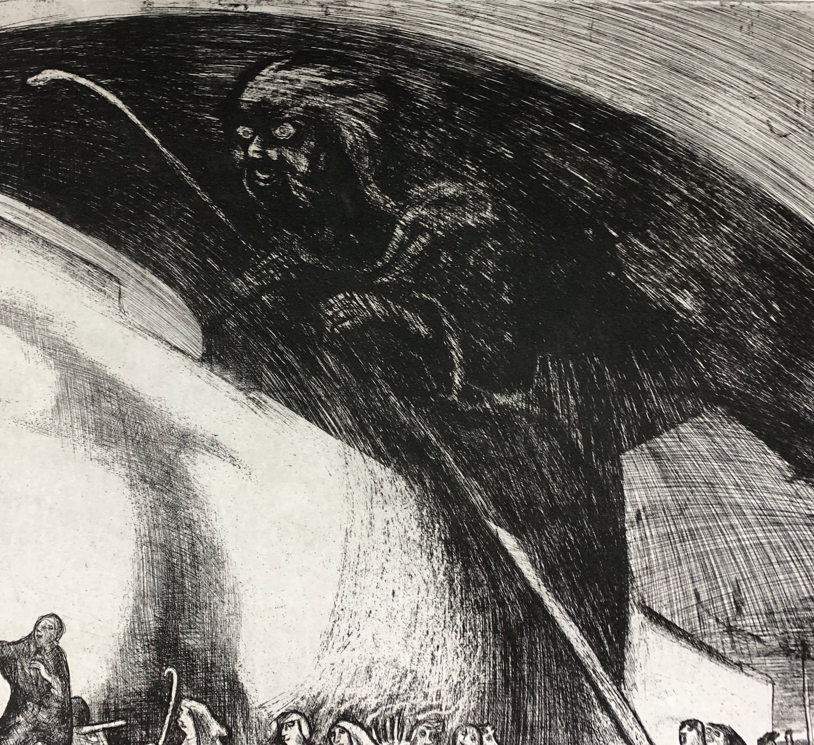 Conditie: Ets goed. Vel heeft vlekjes en 1 hoek heeft watervlek, zie foto's. Editie: 4/10. Afmeting afbeelding: 54 x 75 cm. Wordt verzekerd verzonden in een stevige kartonnen koker.