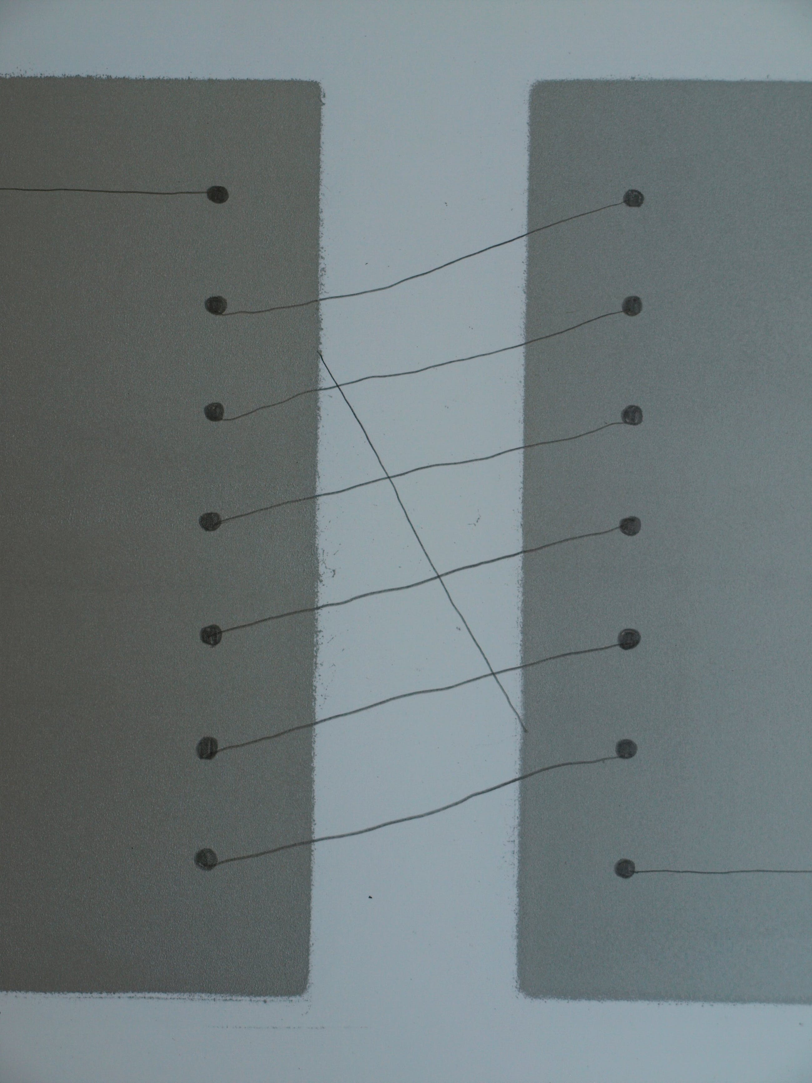 -Een combinatie van drukinkt, acrylverf en potlood.