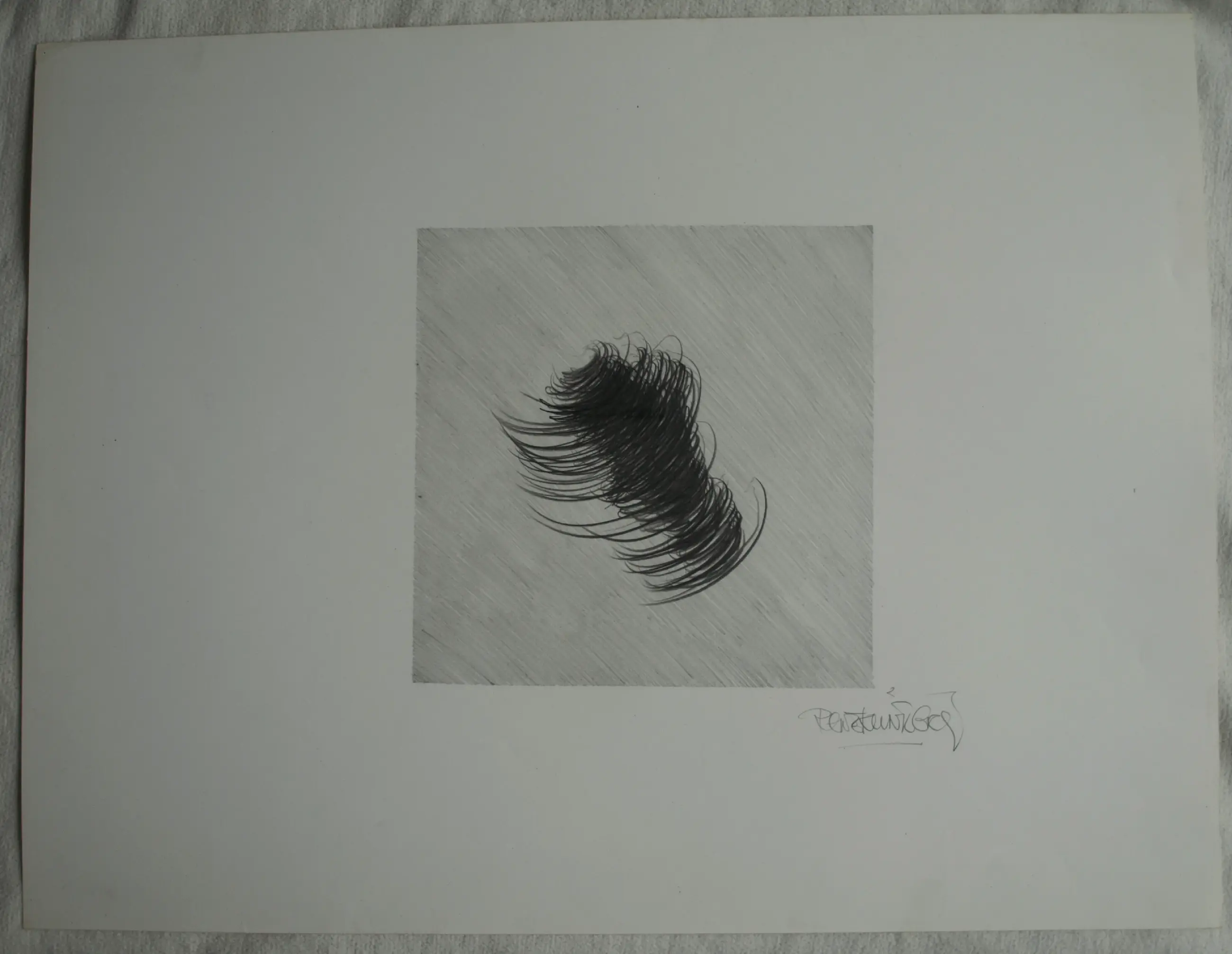 Een minimalistisch werk op papier van de Nederlandse kunstenaar René Klinkers (1943-2011). -Techniek: (Conté)potlood op papier. -Gesigneerd rechtsonder. -Niet ingelijst en ook nooit ingelijst geweest. -Jaartal onbekend. -Afmetingen: Blad, 50 x 65 cm. Beeld, 25 x 25 cm. -Herkomst: Uit de nalatenschap van de kunstenaar, overleden in 2011 in het Rosa Spierhuis in Laren. -Conditie: In zeer goede staat. Zie ook de foto’s.