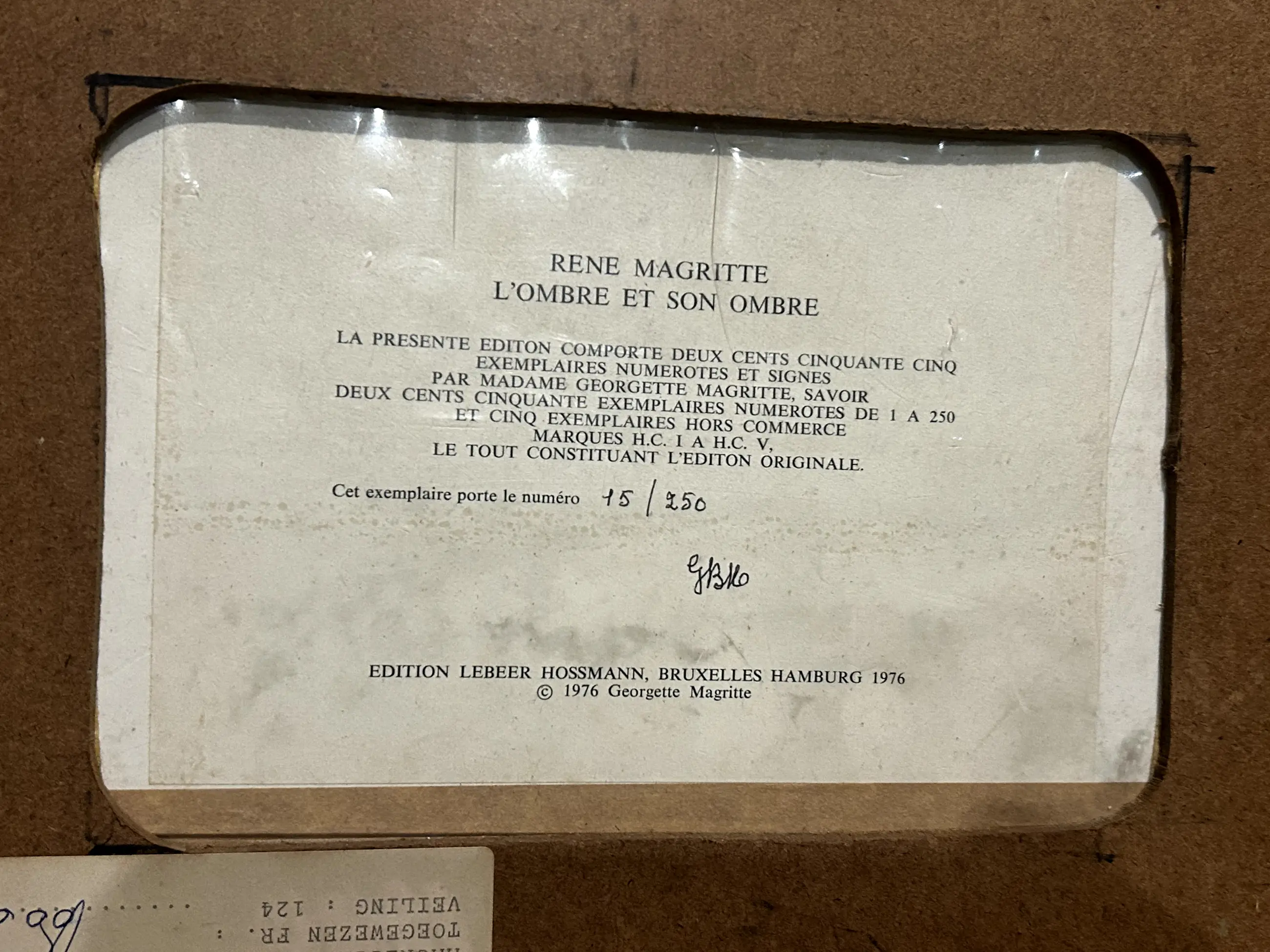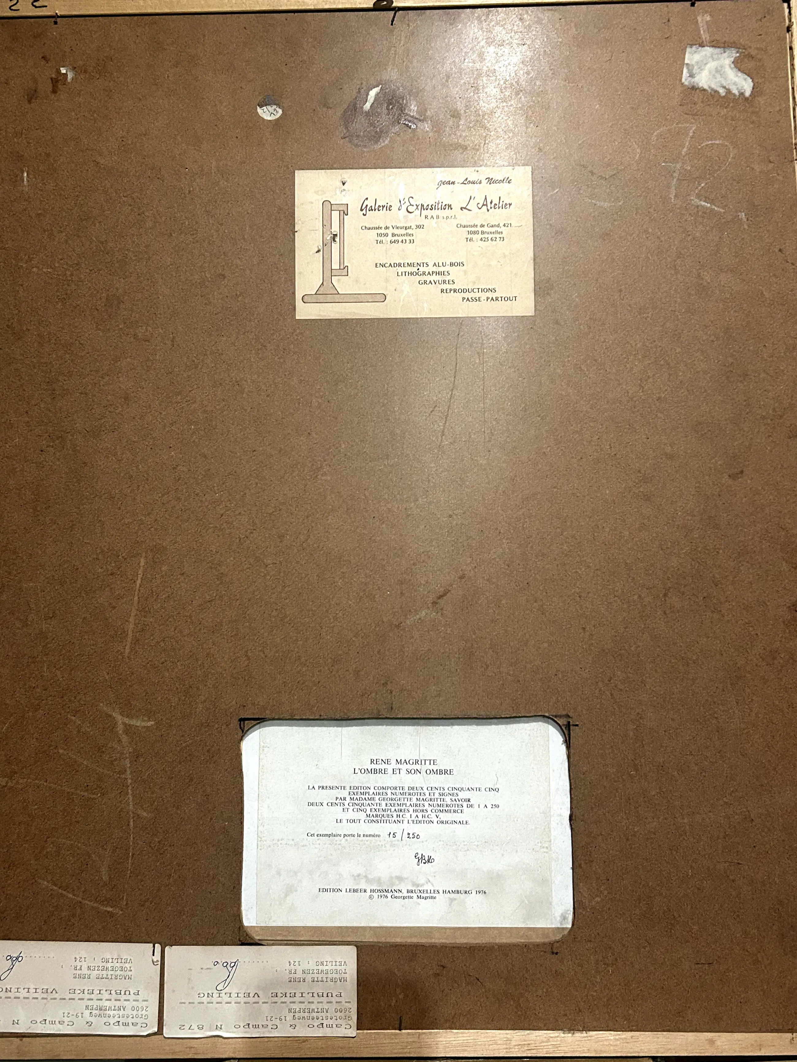 De foto heeft een certificaat aan de achterkant (zie foto), gesigneerd door Georgette Magritte en uitgebracht in 1976 door edition Lebeer Hossman Bruxelles Hamburg. Editie 15/250 De foto is in een mooie conditie. Weerspiegeling van het licht bij het maken van de foto's. De kader heeft wat kleine imperfecties en wordt u gratis aangeboden bij dit kavel. Een collectors item ooit geveild geweest bij Campo & Campo Kan opgehaald worden in Hasselt of kan veilig verpakt verzonden worden.