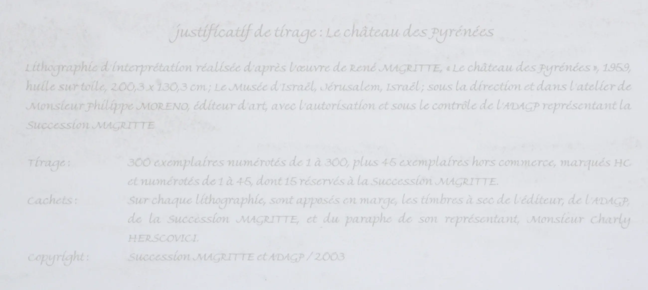 Rene Magritte - (naar), Le Château des Pyrenées, Lithografie, 77,5x57,5 cm