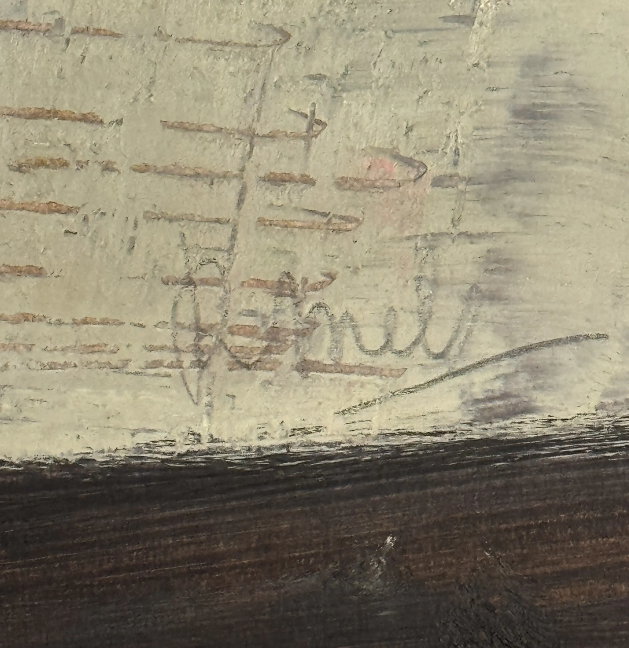 Een abstracte compositie van grote kwaliteit, waarin René Mels de kracht van gebaren, subtiele kleurschakeringen en innerlijke diepte combineert – een belangrijk getuigenis van zijn abstracte periode eind jaren vijftig.