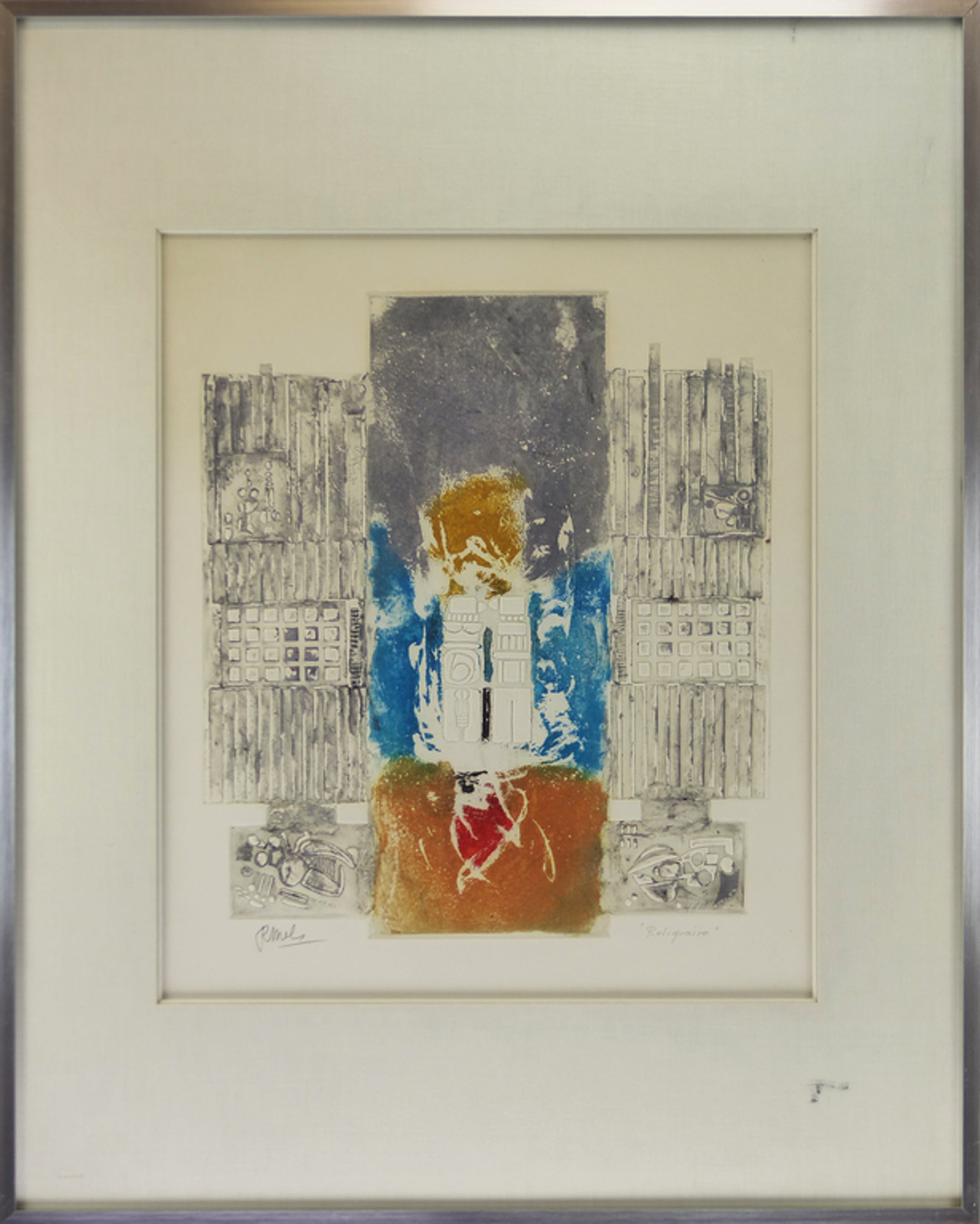 maten met lijst: 93x74 cm. De ets verkeert in goede staat. Voorzien van aluminium lijst en passepartout. Herkomst: kunstcollectie iBM België.