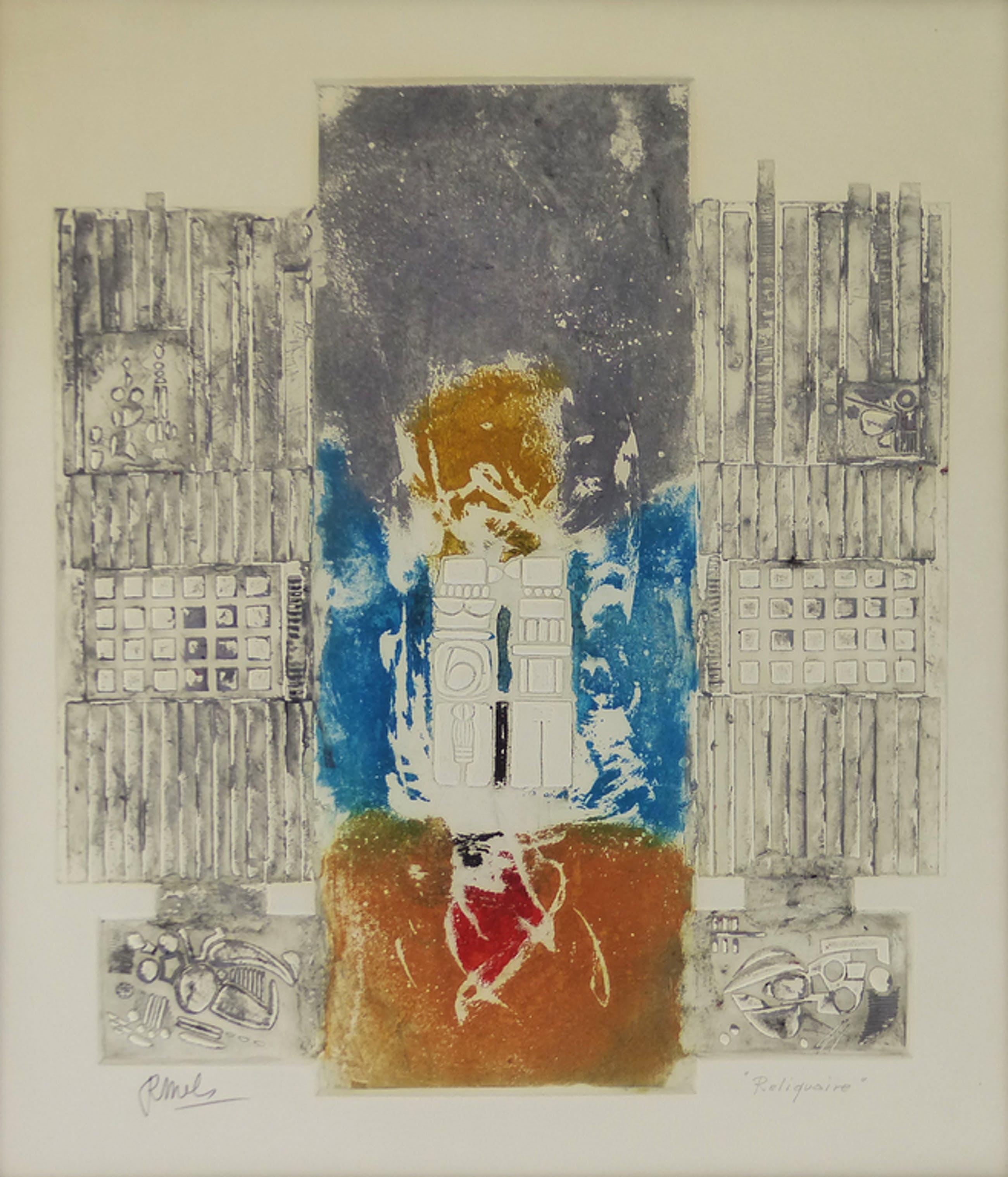 René Mels exposeert vanaf de jaren ’30 aanvankelijk met expressionistische schilderijen. Zoals zovele jonge kunstenaars in deze periode laat hij het expressionisme varen en ontdekt hij de abstractie en ook de gouden snede. In 1947 sluit hij zich aan bij de groep “Jeune Peinture Belge”. In deze periode schildert en tekent hij verschillende stillevens, die zijn zoeken naar een eigen abstracte vormentaal verraden. Kleur is prominent aanwezig, maar ook pastellen, zoals in “Les Tulipes” (1947), worden niet geschuwd. In 1950 ontdekt hij het Atelier 17, waar ook Alexander Calder, Henri Matisse, Joan Miró, Pablo Picasso, Mark Rothko en Raoul Ubac tijdelijk verblijven. In 1952 sluit hij aan bij de groep “Art Abstrait”, die met Pol Bury, Georges Collignon, Jo Delahaut, Jean Milo en Léopold Plomteux enkele uitmuntende Belgische kunstenaars een thuisbasis bezorgt. In de jaren ’50 en ’60 creëert hij diverse waterverfschilderijen. De kleuren en thema’s, zoals olijfboomgaarden, verwijzen naar Zuid-Frankrijk waar Mels vaak vertoefde. Verschillende van deze werken komen terecht in de collectie van architect en kunstliefhebber Paul Emile Vincent, die ook het woonhuis van René Mels ontwierp. Samen met Gabriel Belgeonne, René Carcan, Lismonde en Luc Peire sluit hij zich aan bij de groep “Cap d’encre”, die in de vroege jaren ’60 de kunst van het graveren en drukken promoot. René Mels verfijnt de kunst van het etsen en verbindt gevoelsmatig kleur, lijn en reliëf. Verwijzingen naar Zuid-Amerikaanse culturen of naar het Twee-Stromen-Land zijn onmiskenbaar. Kunstwerken van René Mels zijn terug te vinden in de Prentenkabinetten van Brussel en Parijs en het Koninklijk Museum voor Schone Kunsten in Brussel.