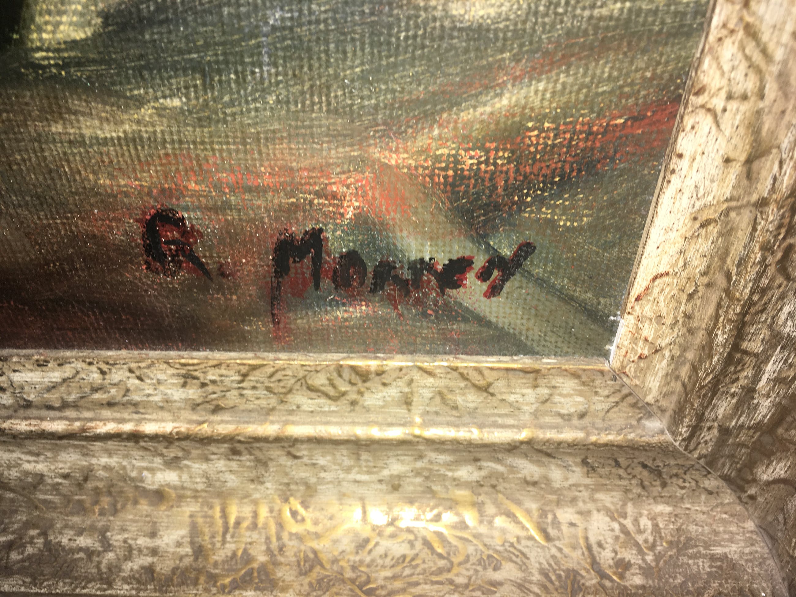 René Morren Belgische school. Prachtig doek is gemaroufleerd vanwege dat het doek op doek uit zijn atelier is gekomen
