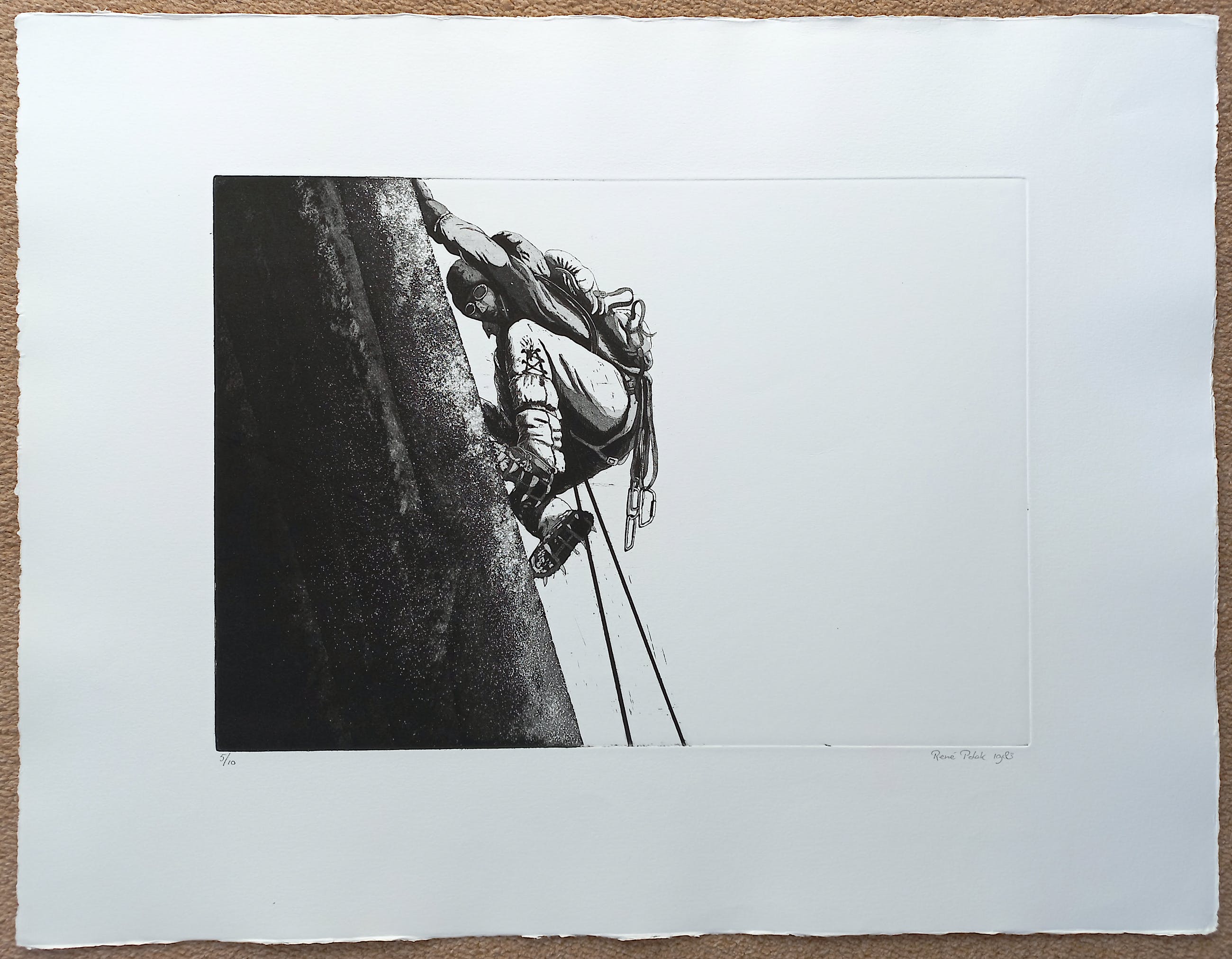Zeer mooi werk van René Polak. Aquatint ets op geschept papier, met potlood gesigneerd, gedateerd (1983) en genummerd (5/10). In uitstekende conditie.