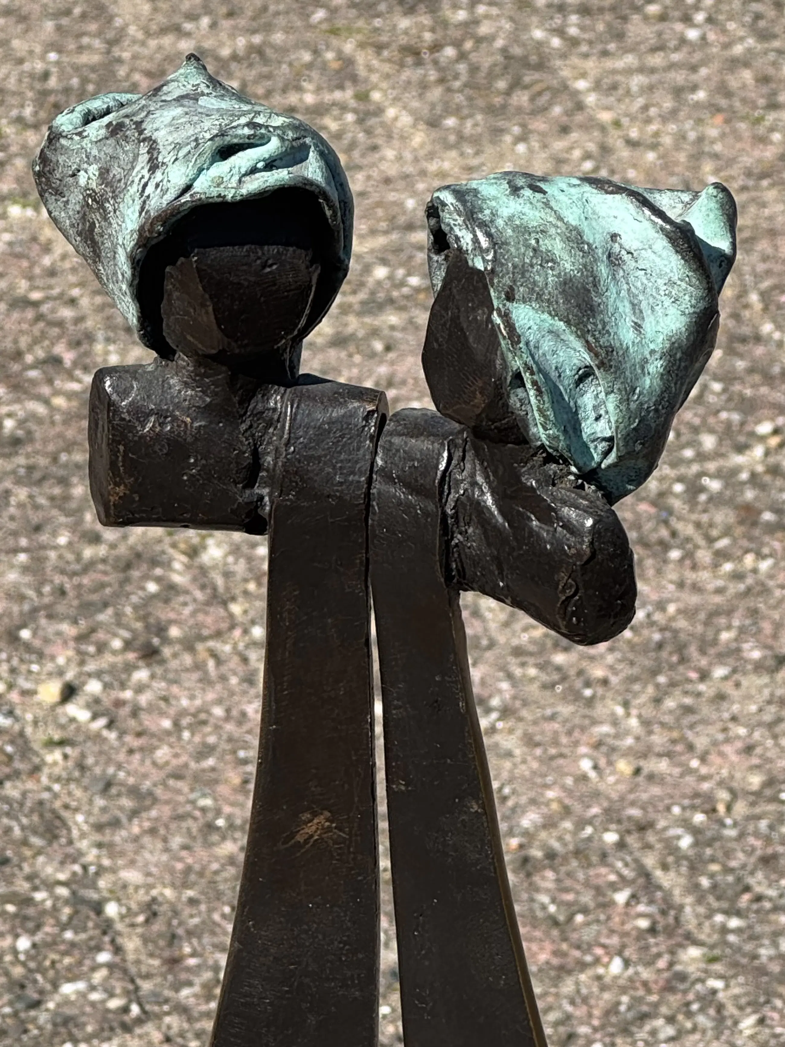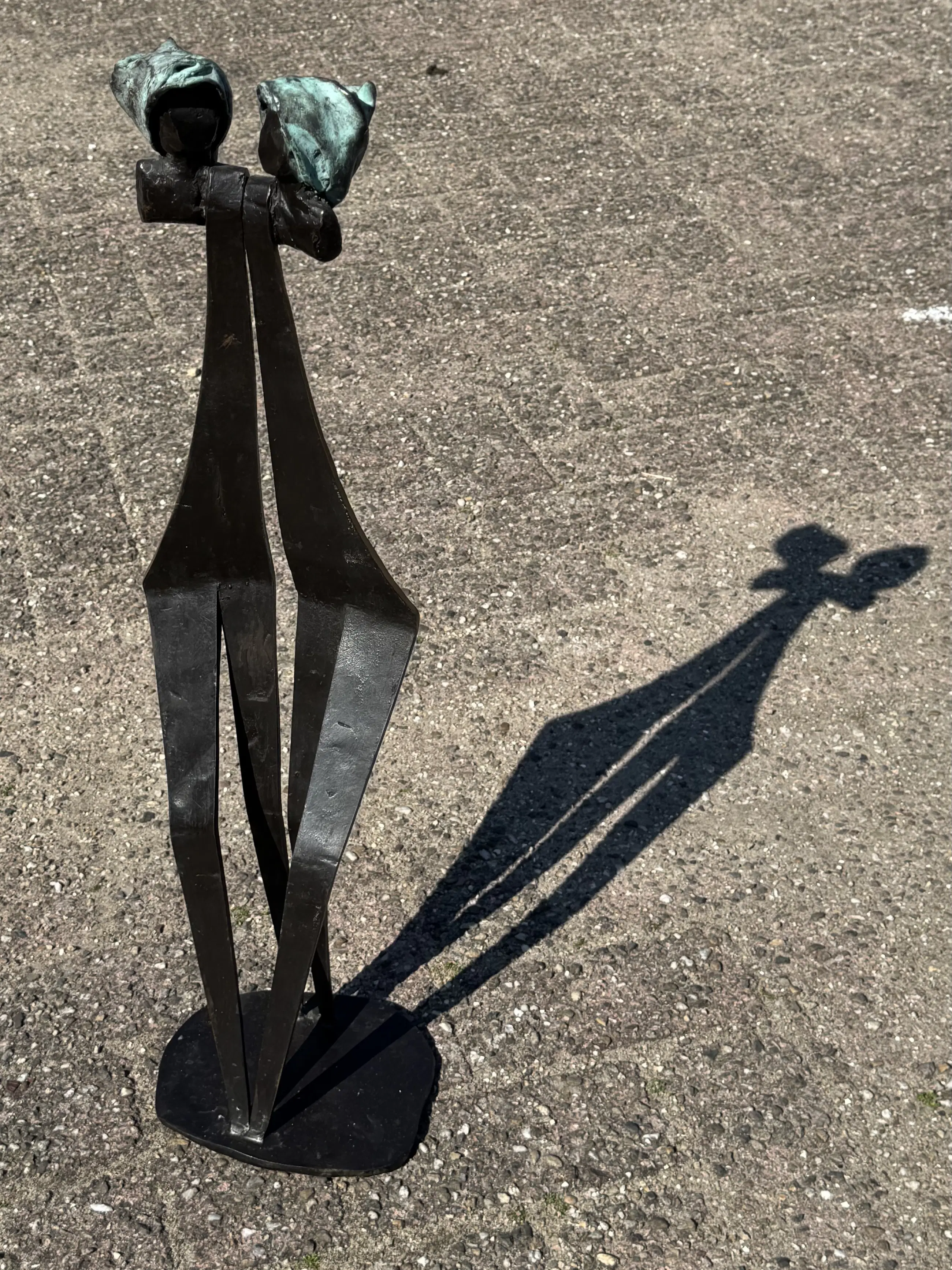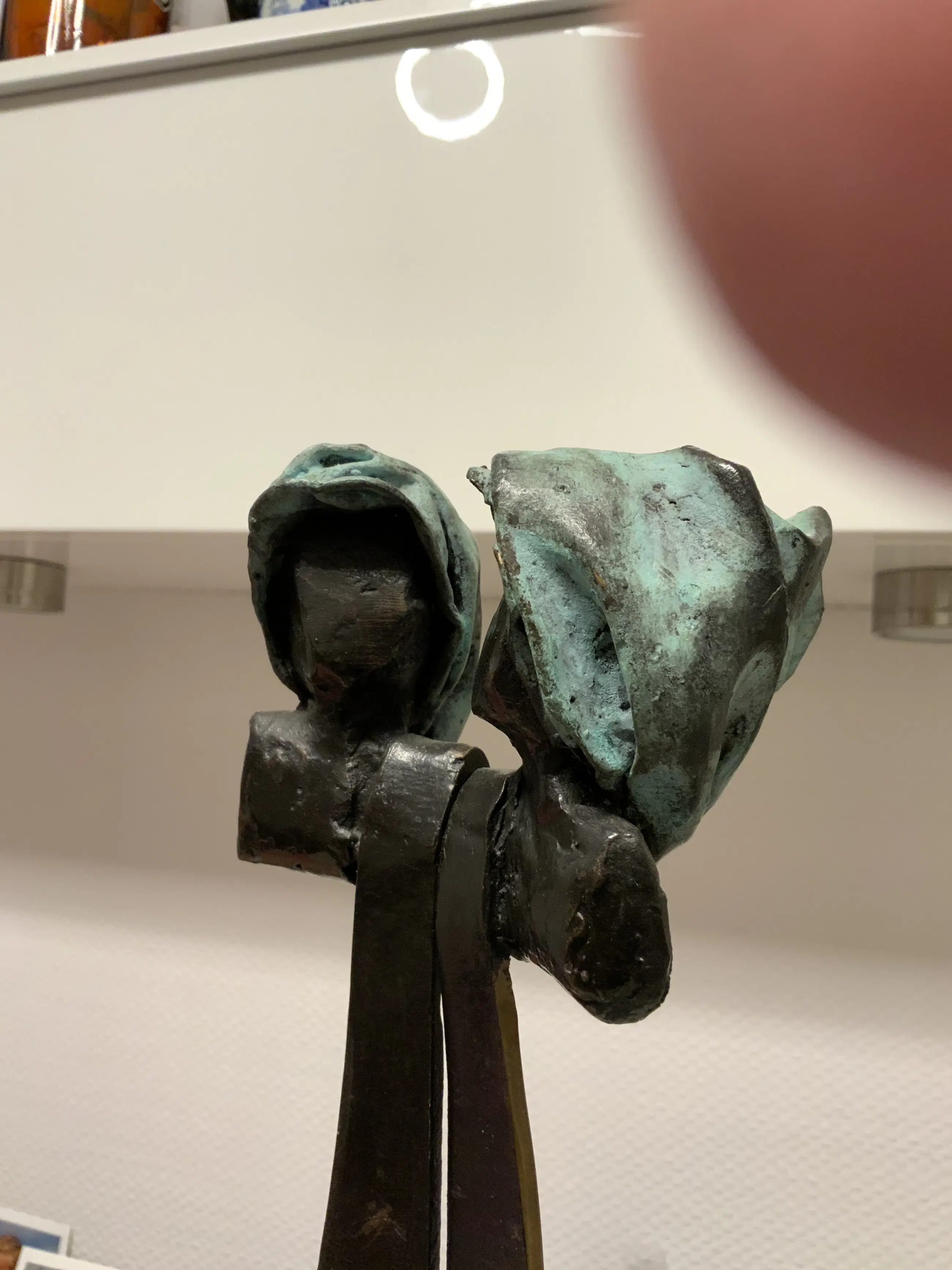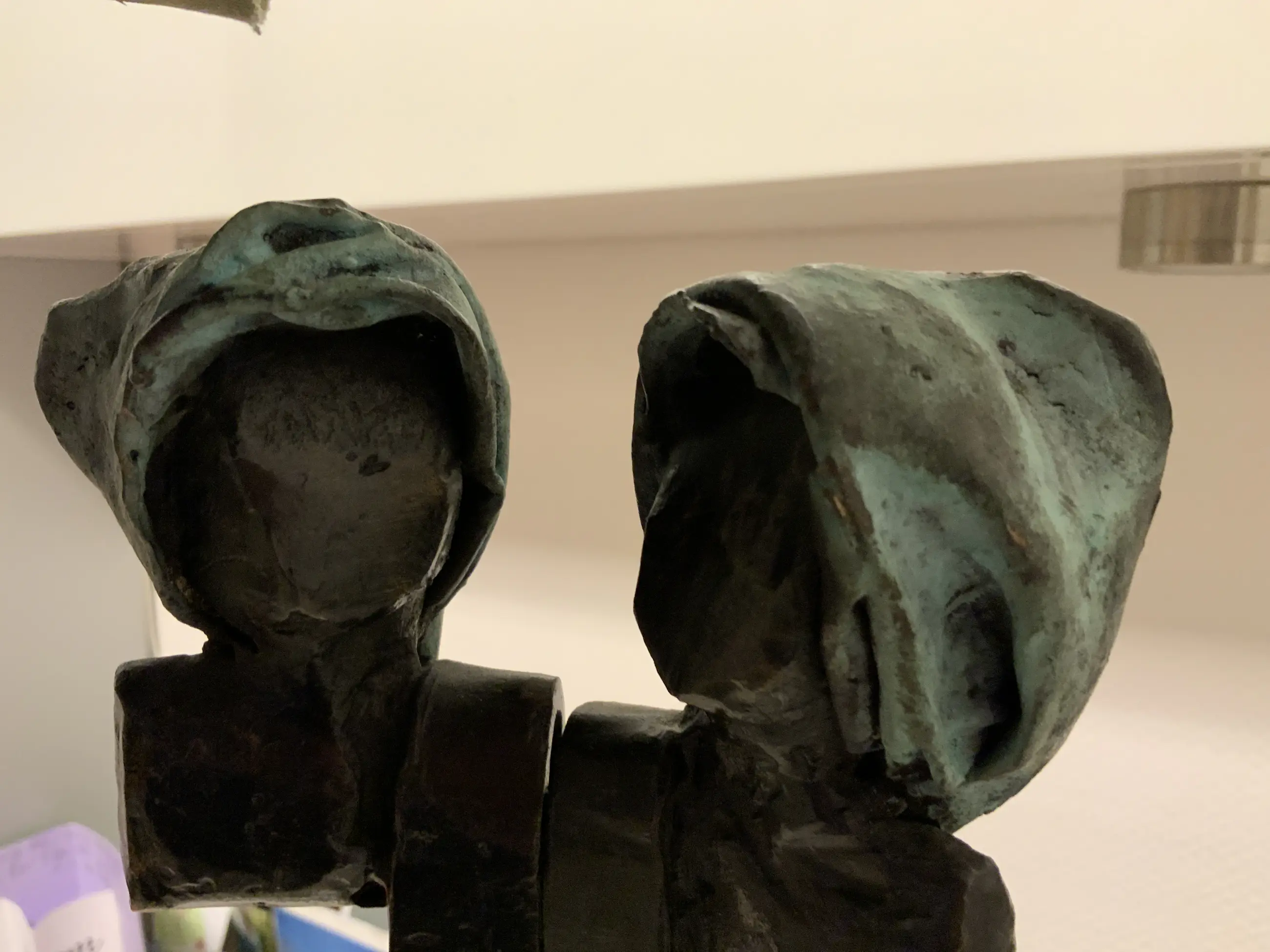 Bronzen sculptuur Duo gemaakt in 1998 door Reneé van Leusden. Van dit kunstwerkjes de originele aankoopmota van Galerie Chez Moi Ton Schulten beschikbaar. Aankoopprijs destijds euro 2160,— Beeld heeft altijd binnen gestaan.