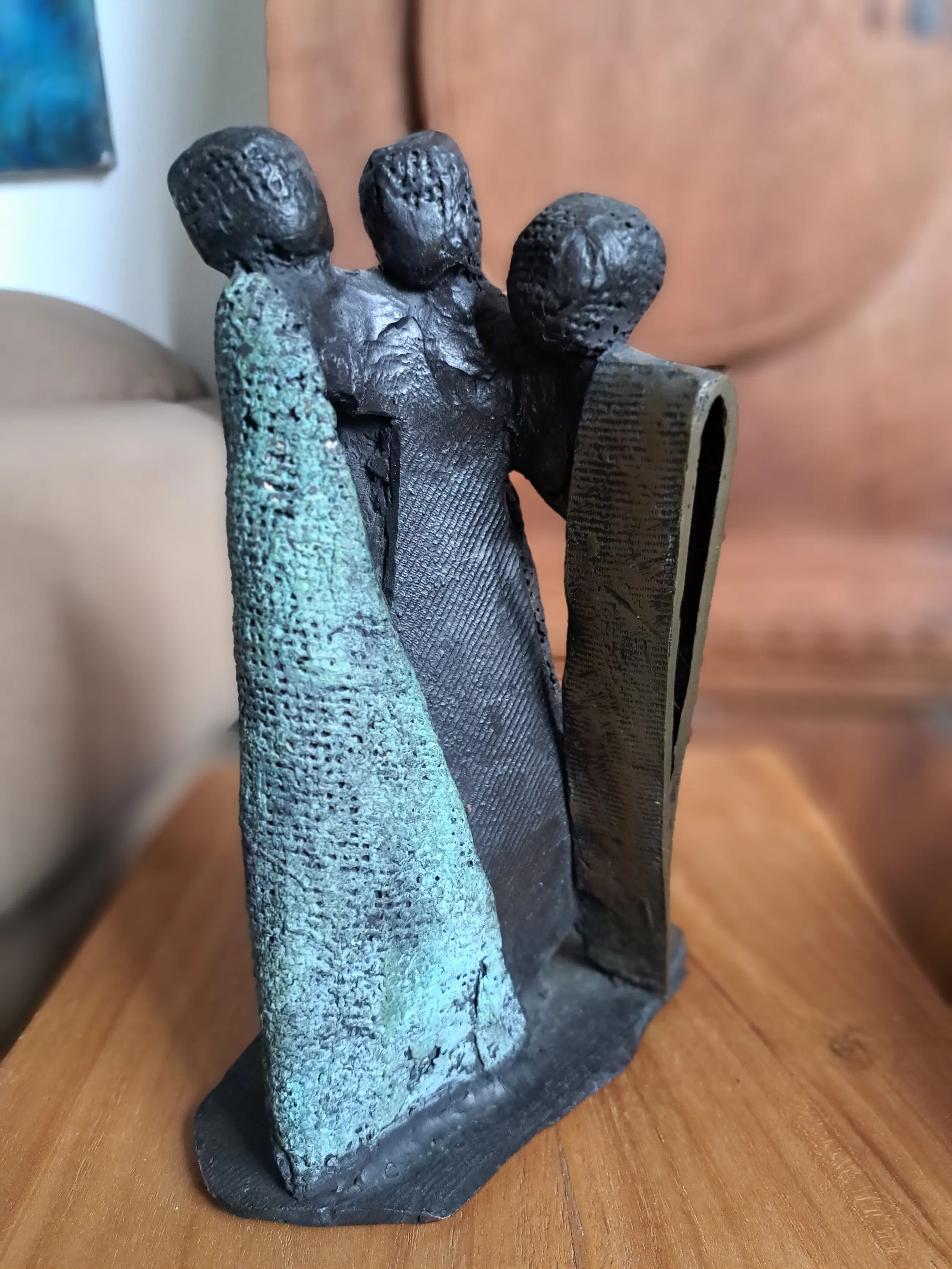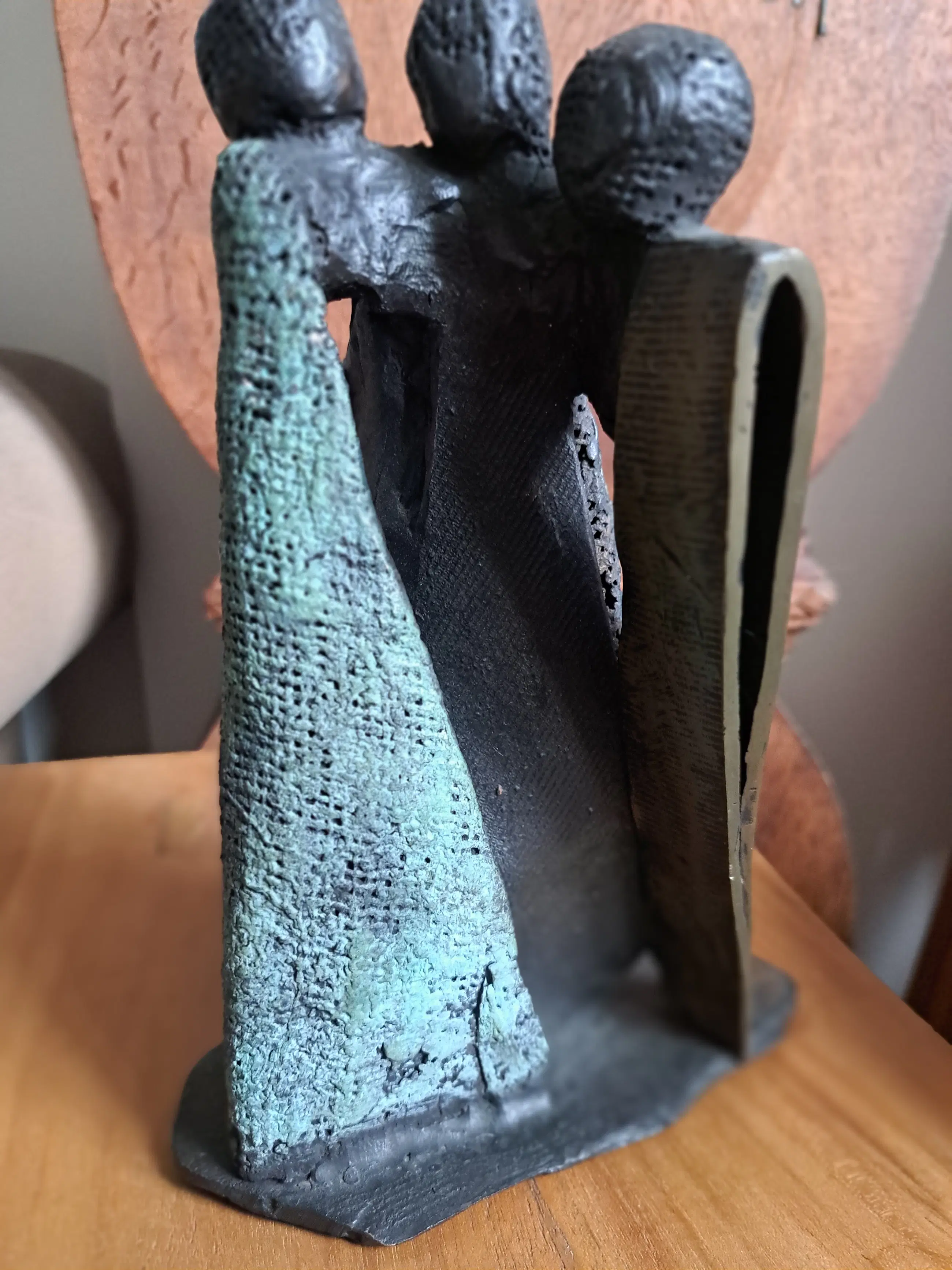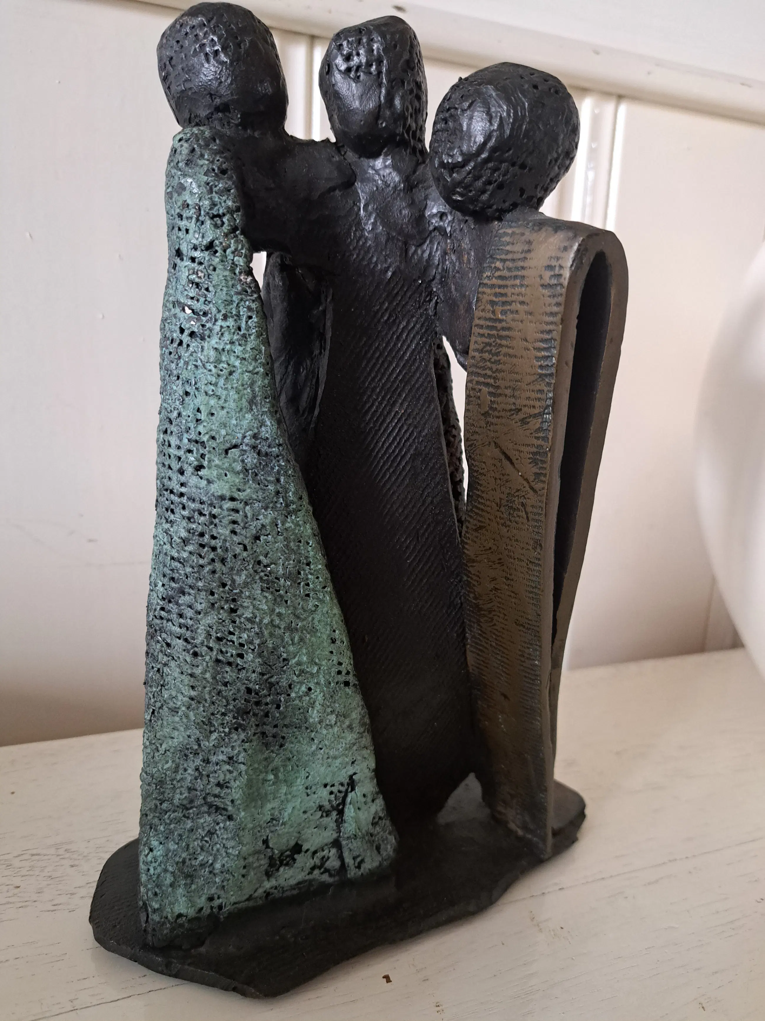Bronzen beeld "Saamhorigheid" Renee van Leusden 2/6 van 1993 H 23cm B 18cm D 10cm In goede staat