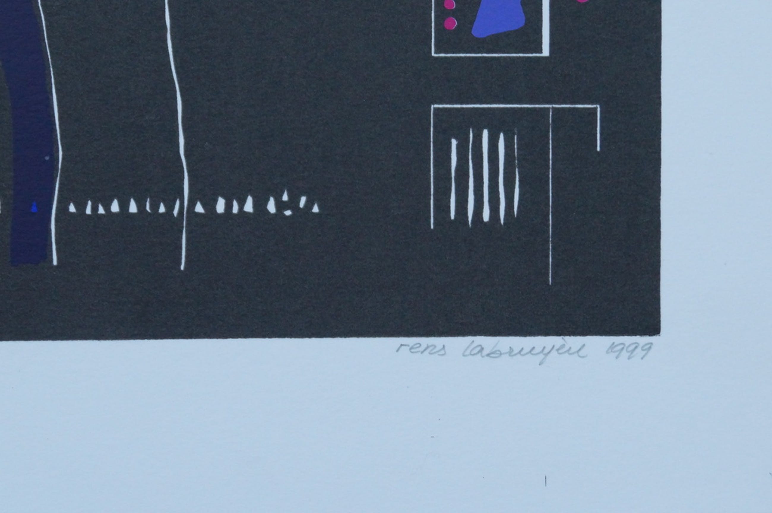 Conditie: de zeefdruk verkeert in bijzonder goede staat, is nog nooit ingelijst geweest