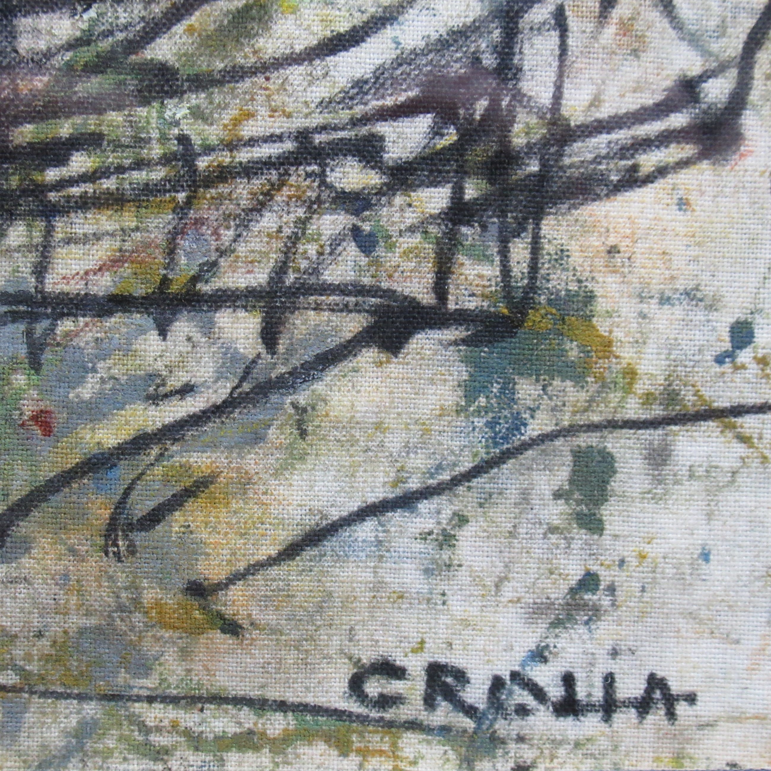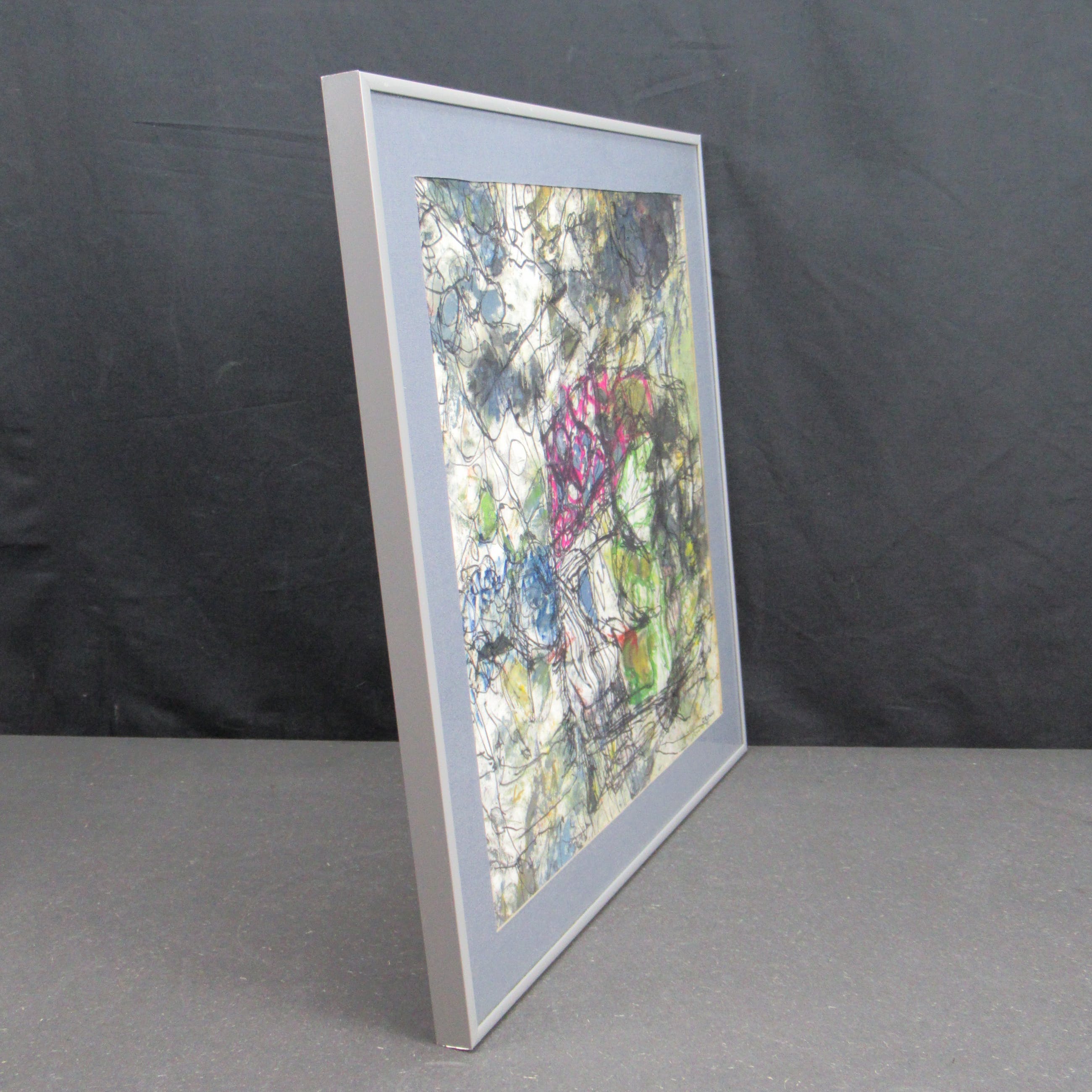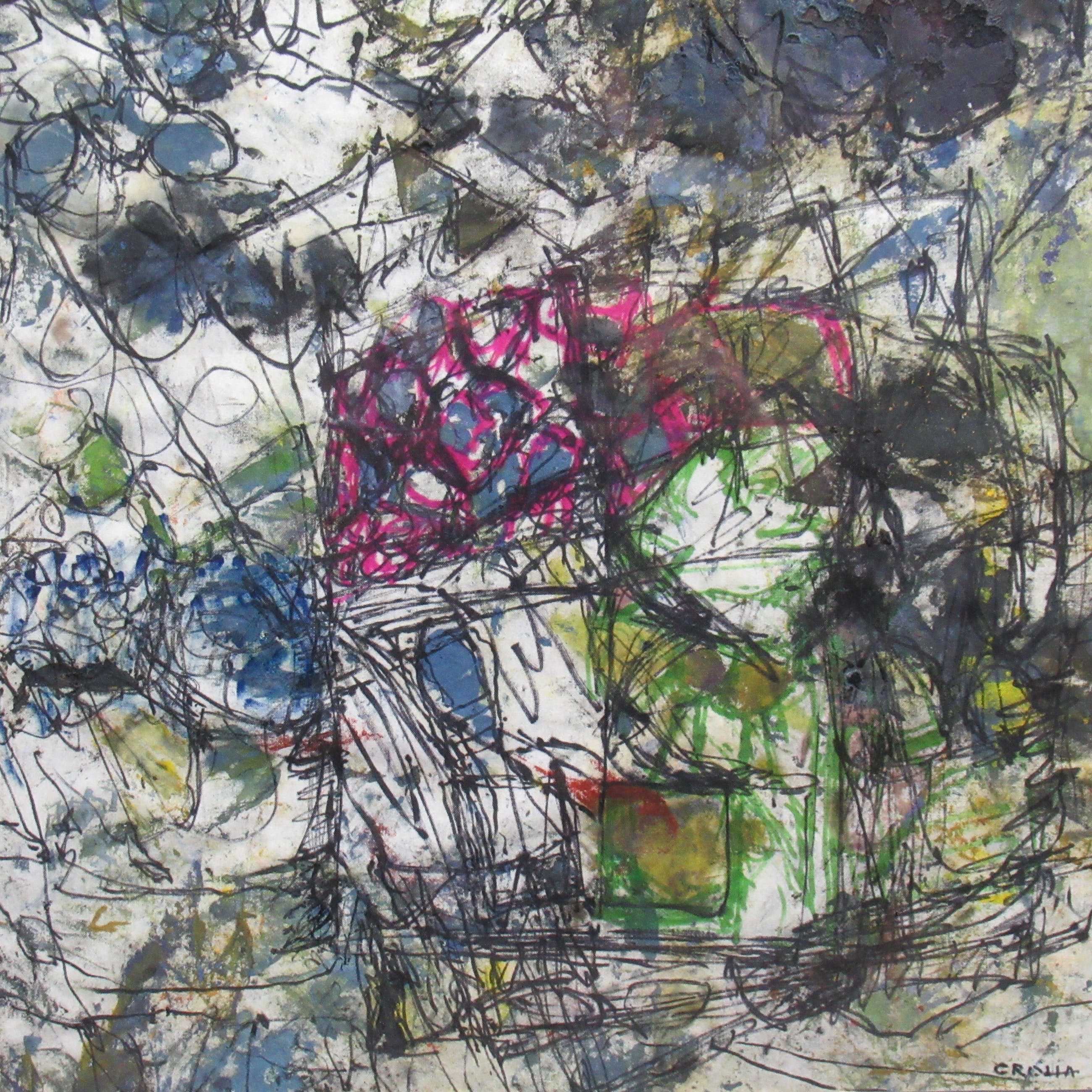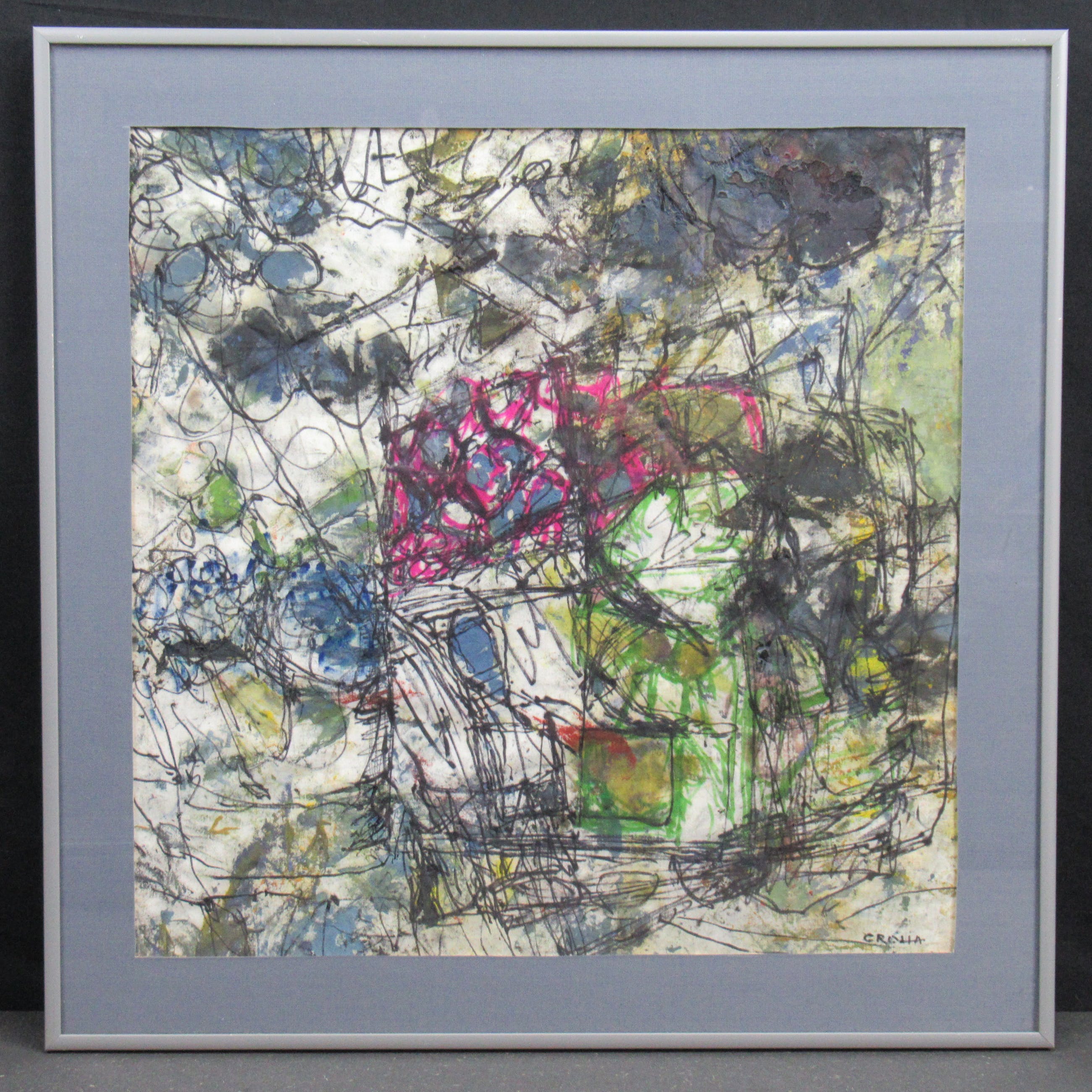 Mooi werk van de hand van Resi Crolla. Resi Crolla is geboren in 1928 in Maastricht (Nederland). Ze maakte veelal abstracte moderne werken in haar atelier in Wassenaar. Ze is geschoold aan de Academie van Beeldende Kunsten Den Haag. Ze was lid van de Haagse kunstkring. In 2018 is ze komen te overlijden. Het werk en de lijst zijn in goede staat. Het is professioneel ingelijst met een nette passe-partout.