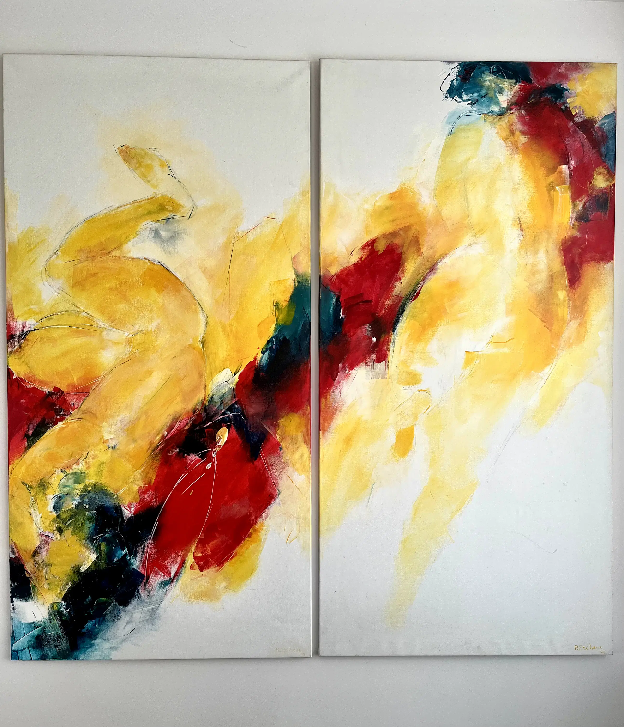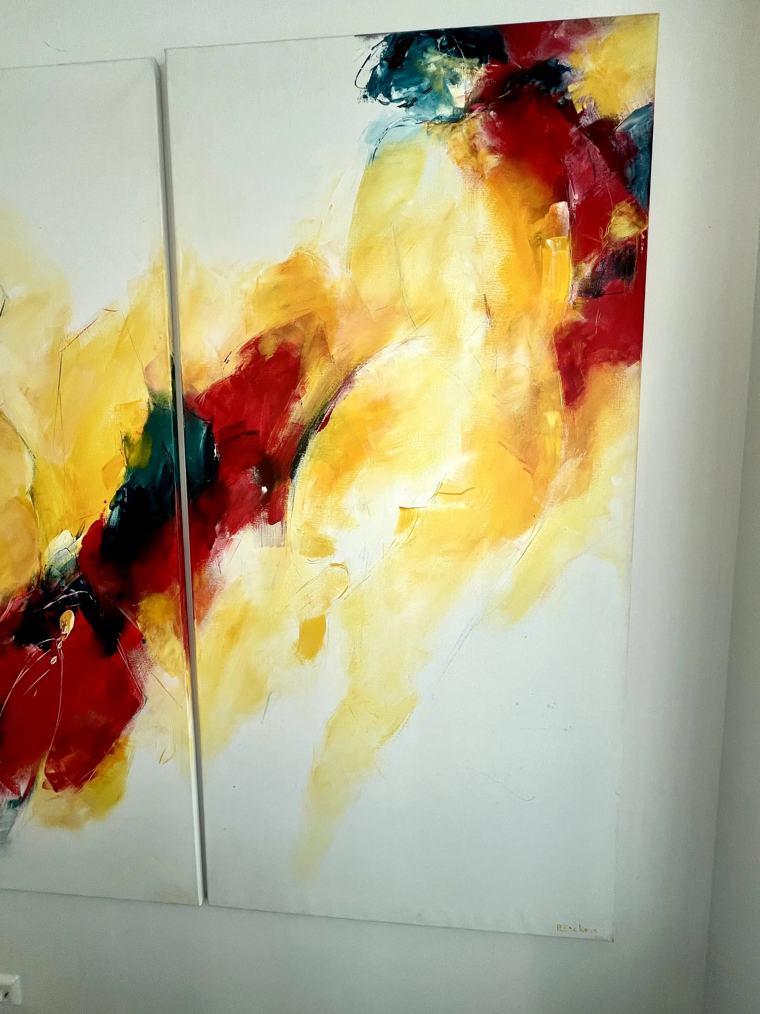 Dit prachtige paneel geschilderd door Ria Erckens in 2004 bieden wij nu ter veiling aan. Wij hebben 2 panelen in ons bezit die wij tezamen hebben gekocht. Het andere paneel bieden wij ook ter verkoop aan. Wij zijn de eerste eigenaar van de schilderijen en ze zijn nog in zeer goede staat. We hebben de schilderijen rechtstreeks bij de kunstenaar gekocht. Beide panelen zijn 90 bij 180 groot.