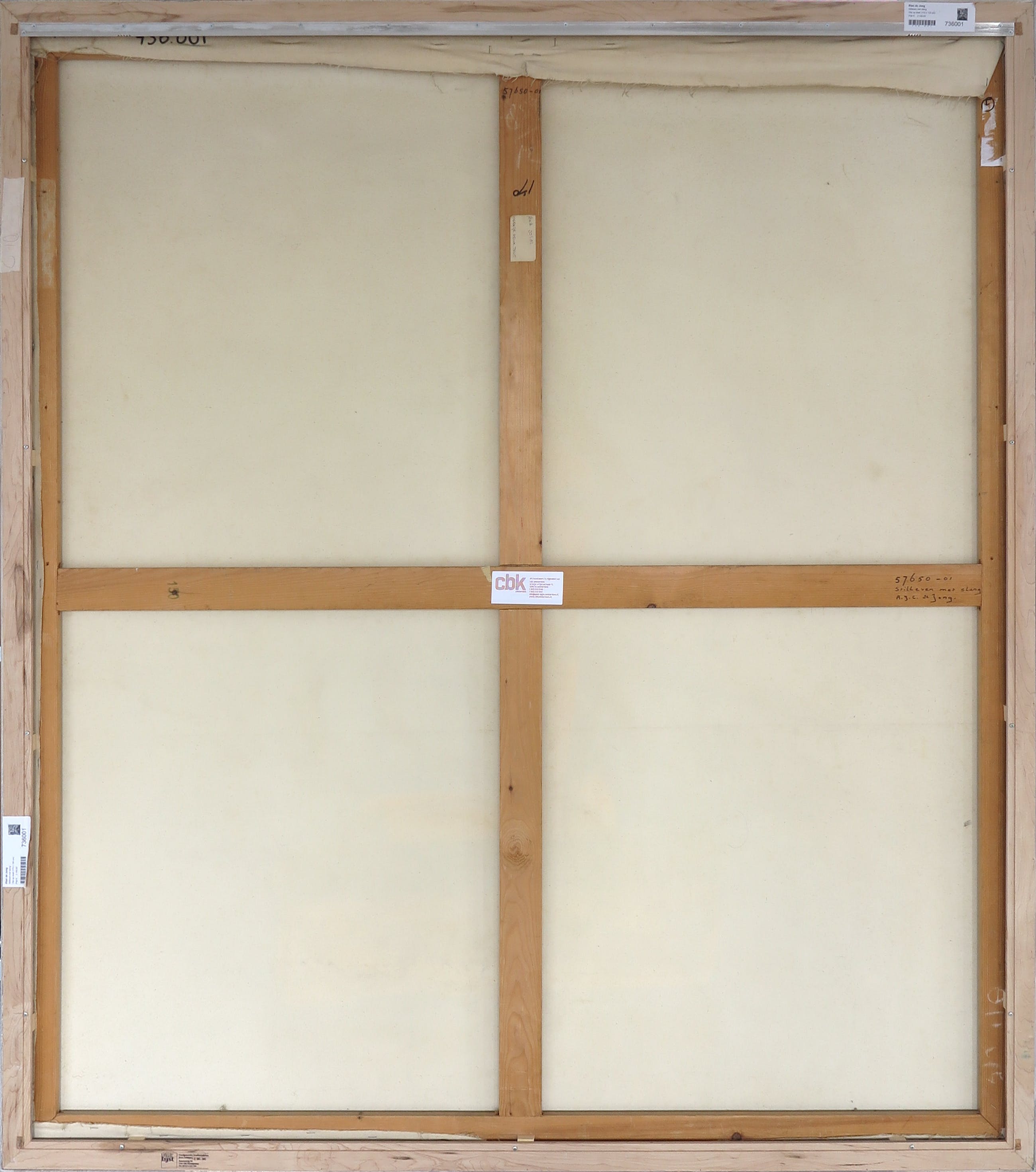 | Goede conditie, met een paar minimale plekjes verfverlies, waarbij het canvas zichtbaar is (links op 'de rand van de tafel'). Wat lichte slijtage/veegjes langs de onderste rand. Ook wat oppervlakte vuil/vlekjes. | |