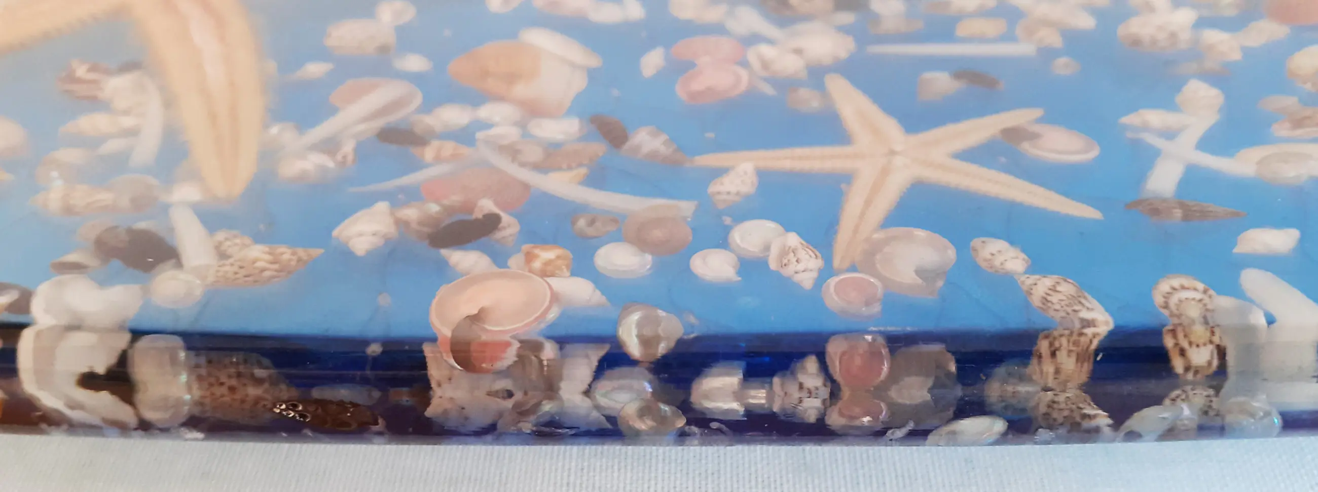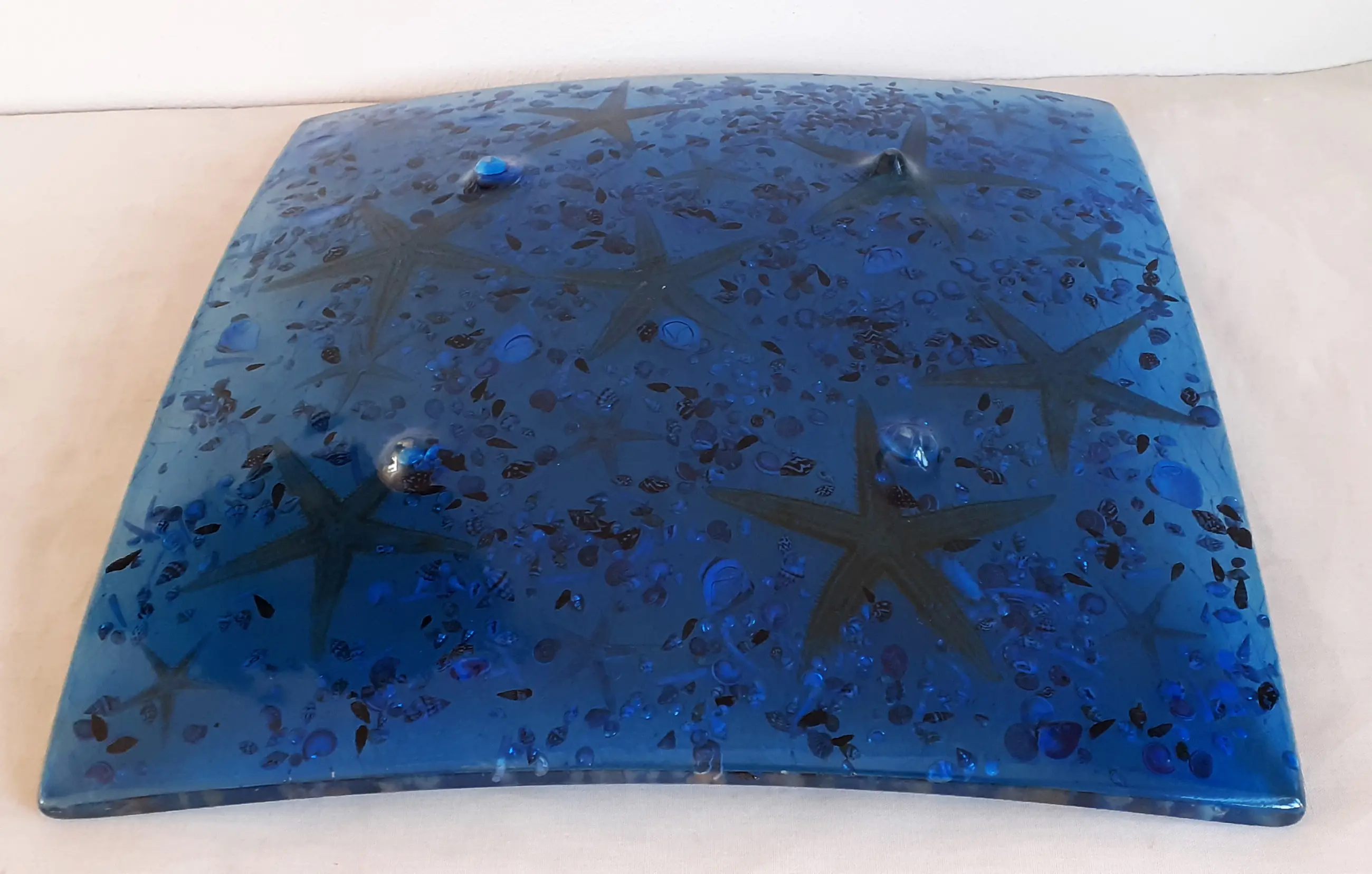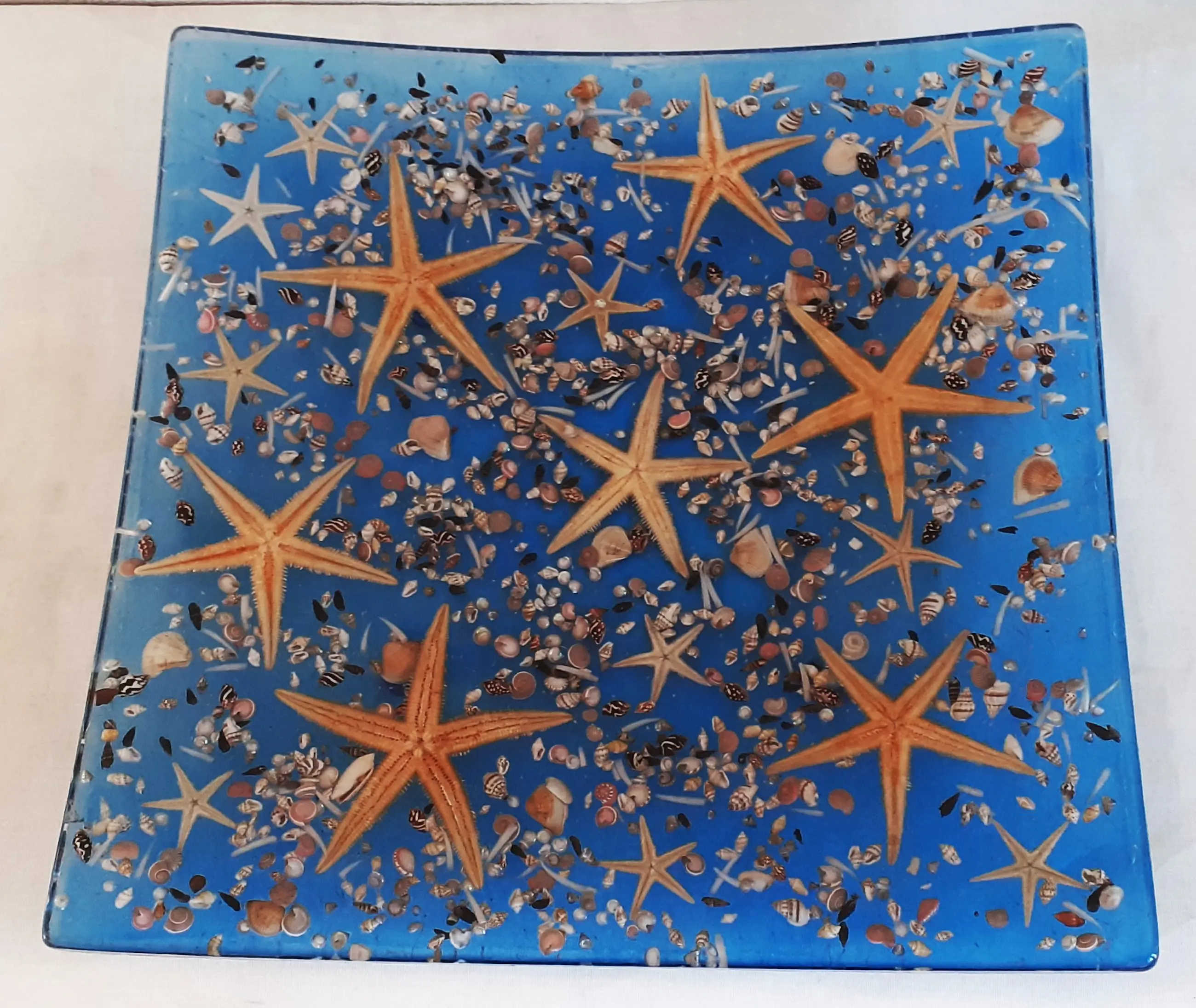 Grote unieke schaal, met zeesterren en schelpen (handgemaakt).