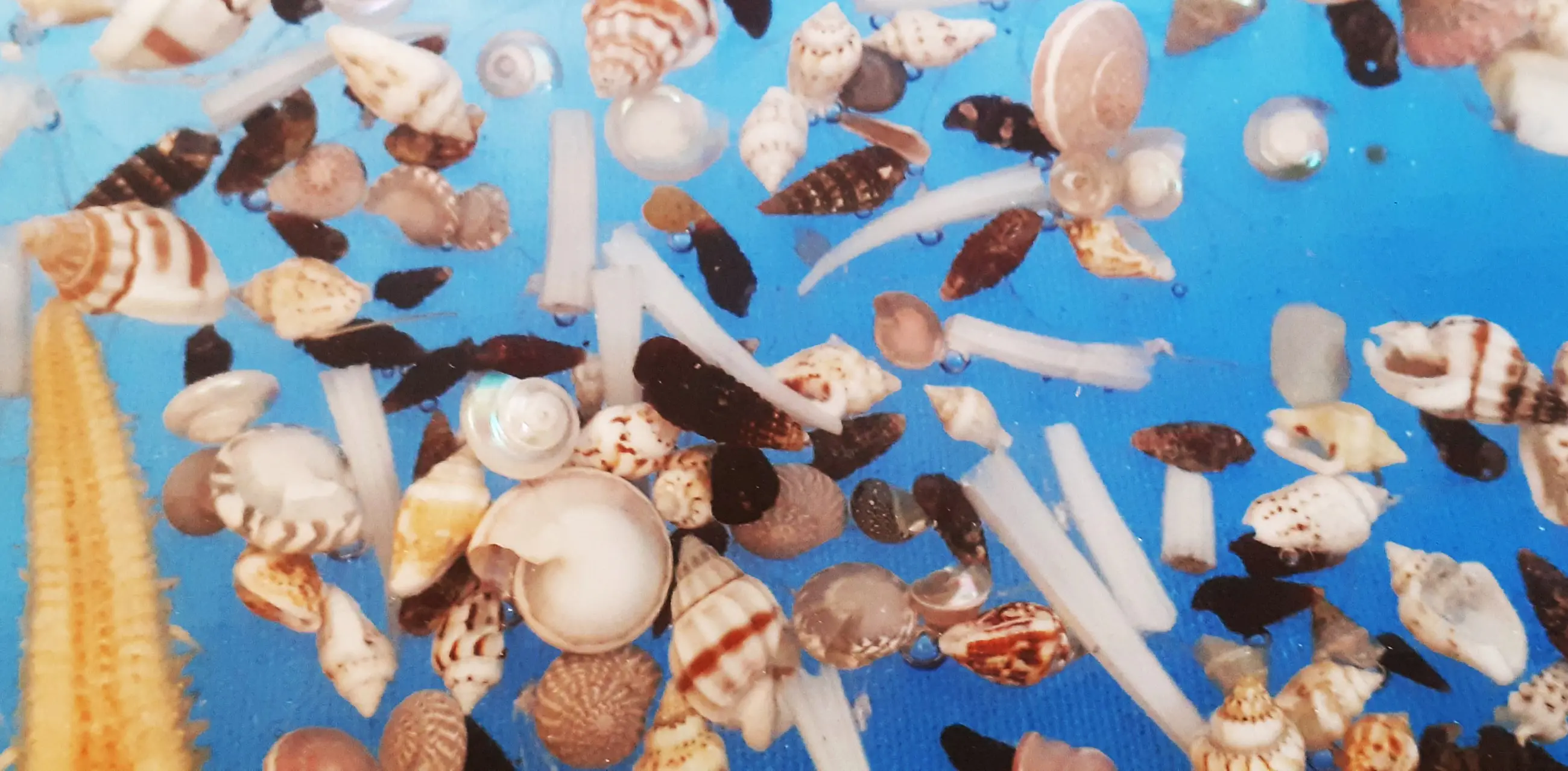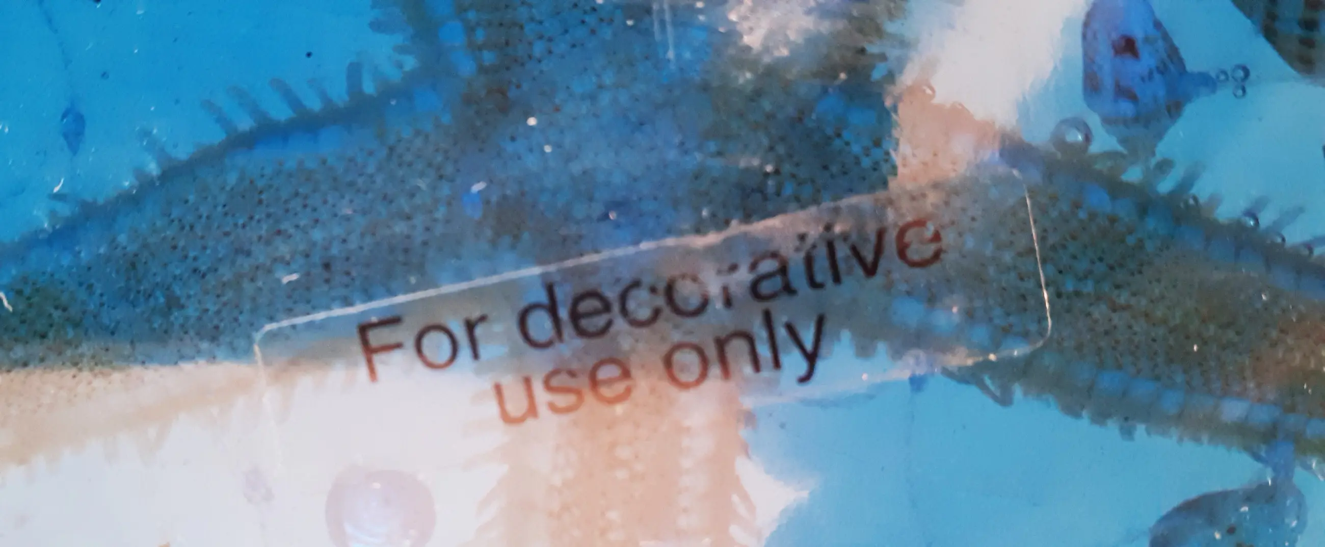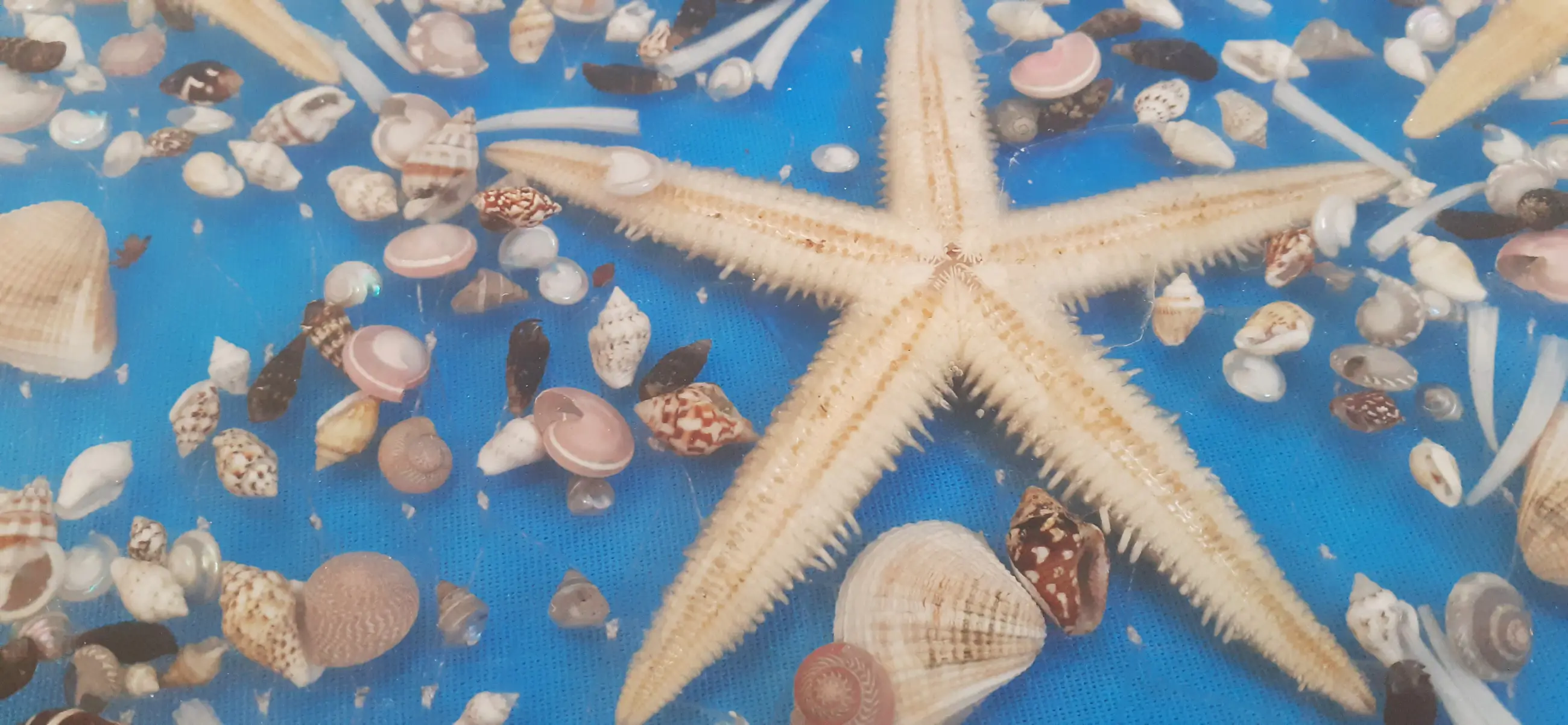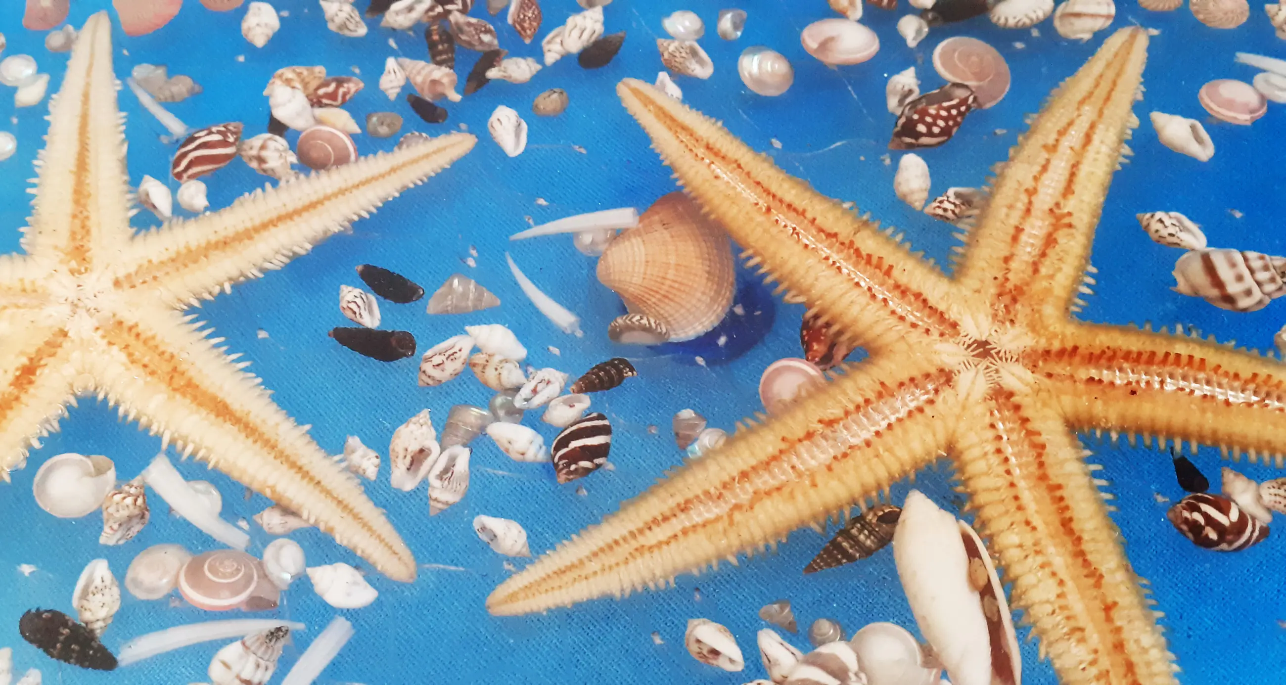 Grote unieke schaal, met zeesterren en schelpen (handgemaakt).