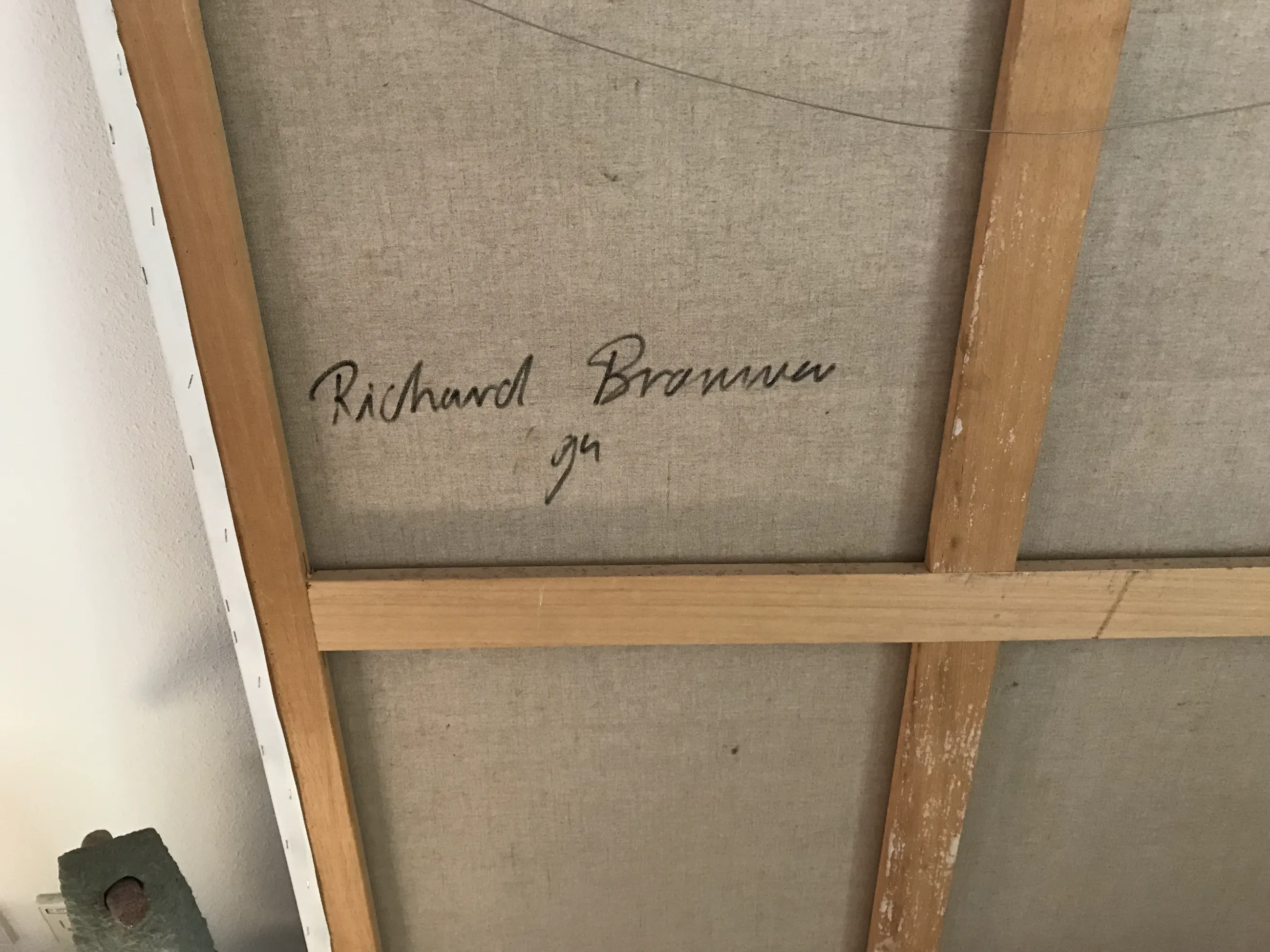 Richard Brouwer (1964) was in 1993 een van de winnaars van de koninklijke subsidie voor de vrije schilderkunst. Zijn werk gaat over de tweedeling in de schilderkunst, over de abstracte en geometrische benadering enerzijds en de schilderachtige expressive beweging anderzijds. Deze tegenstelling is een overbekend en een eindeloos uitgeplozen kunsthistorisch probleem. Consequent en gewetensvol bekijkt Brouwe dit afgesleten probleem opnieuw.