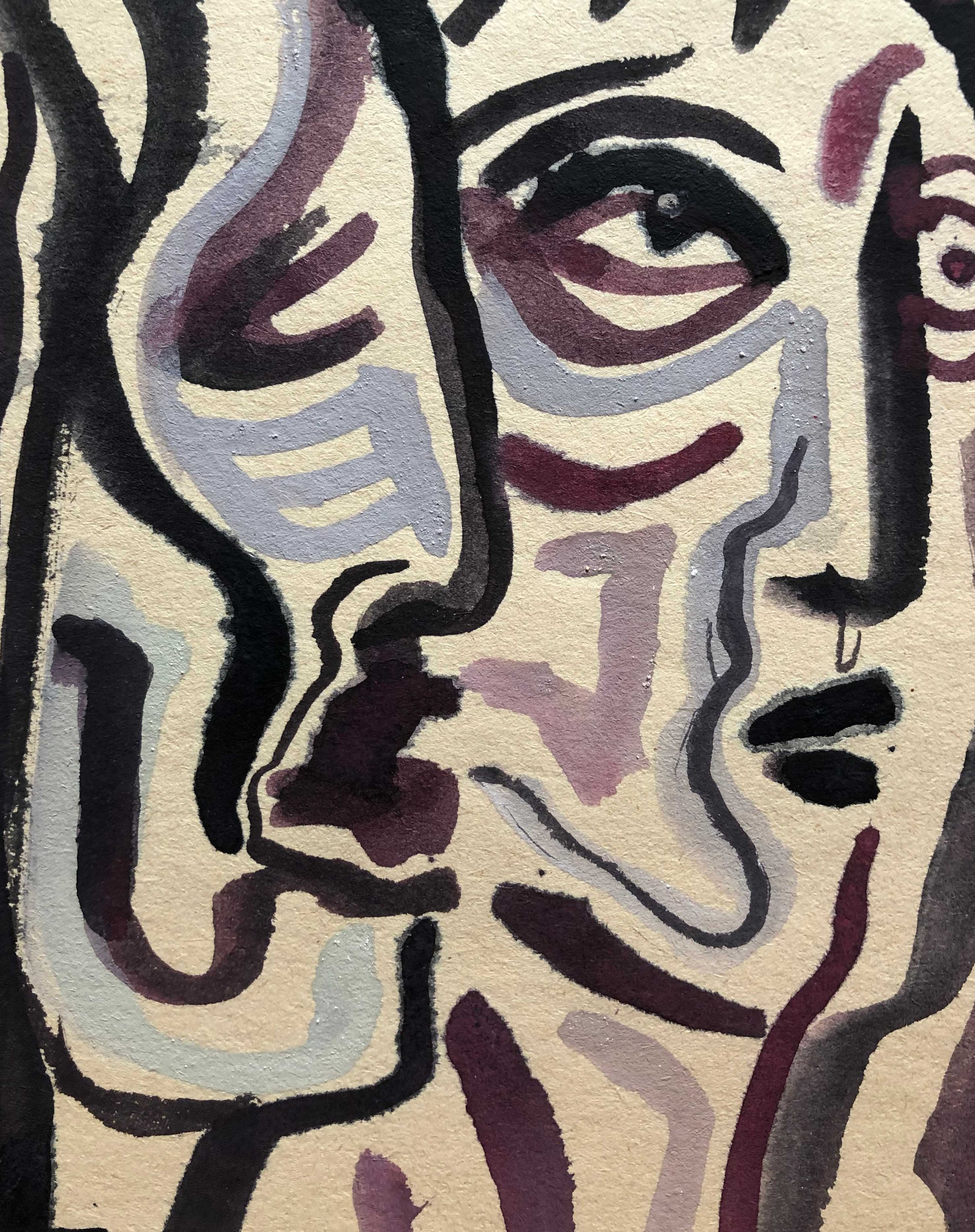 Richard Lee Barton (1952) Two Indians thoughtfully Gouache on paper Unsigned 1989 Afmeting 13 x 18 cm Afmeting passe-partout 20 x 28 cm