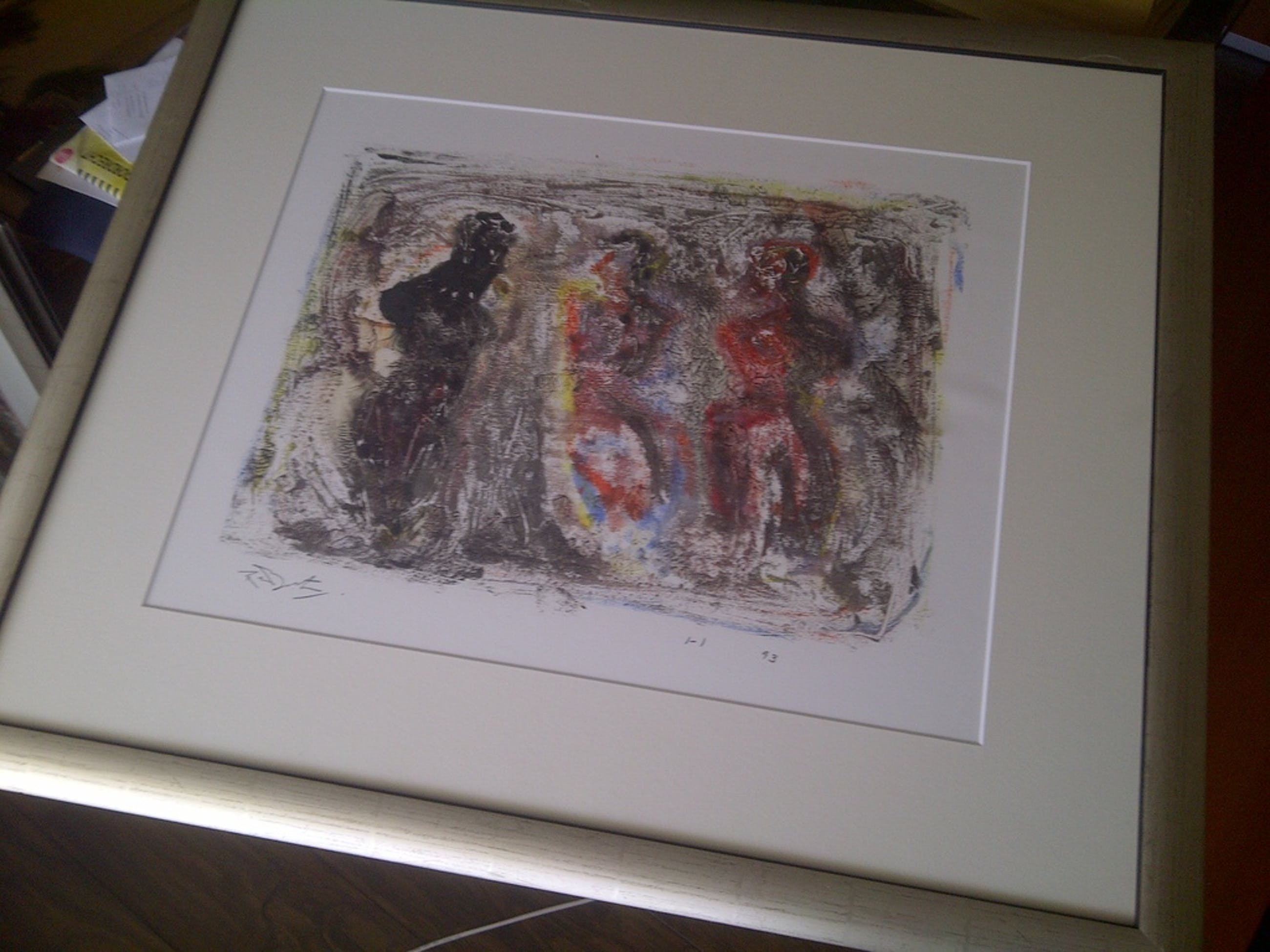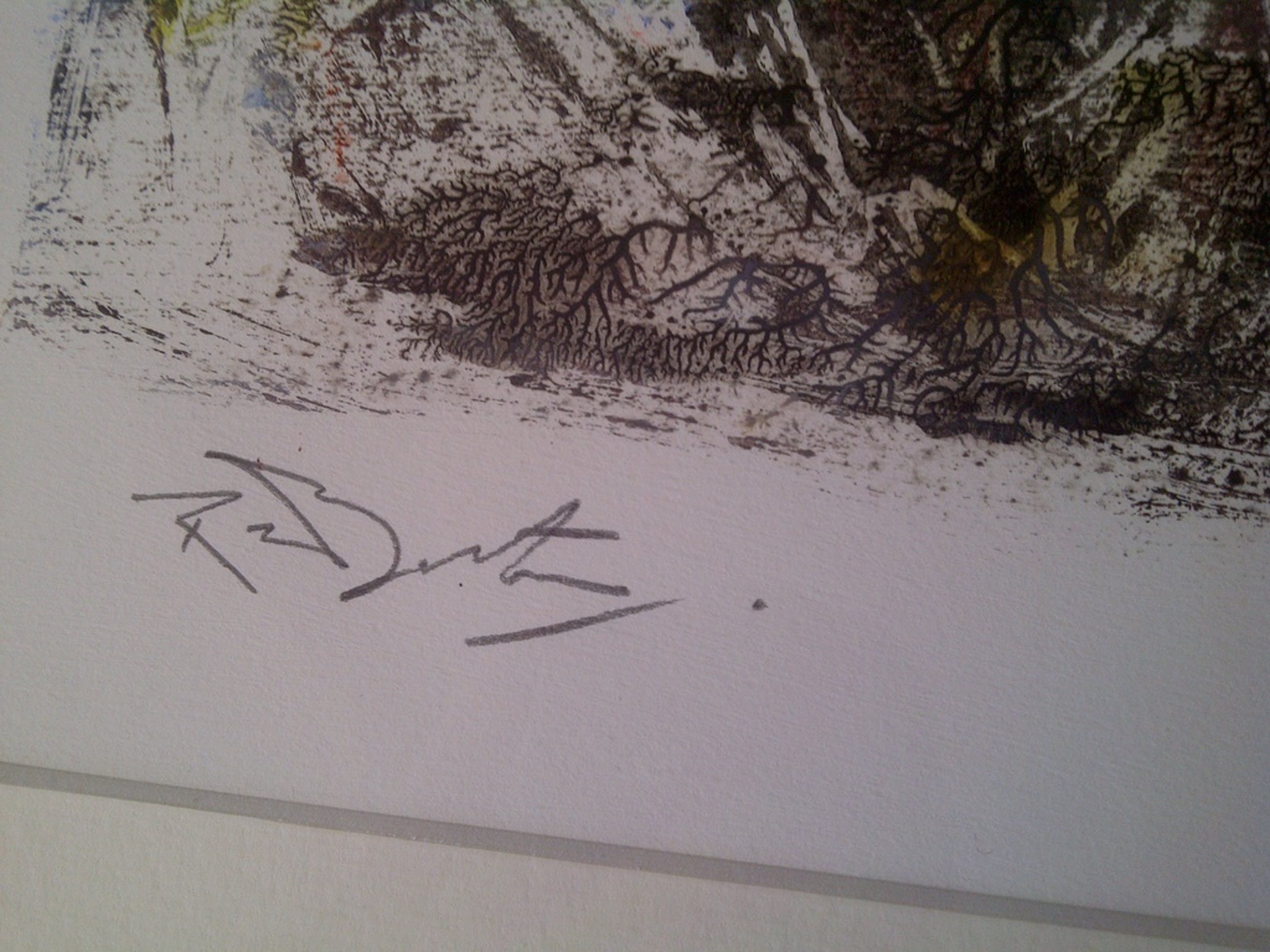 Een ingelijste en gesigneerde monotype van Richard Lee Barton.