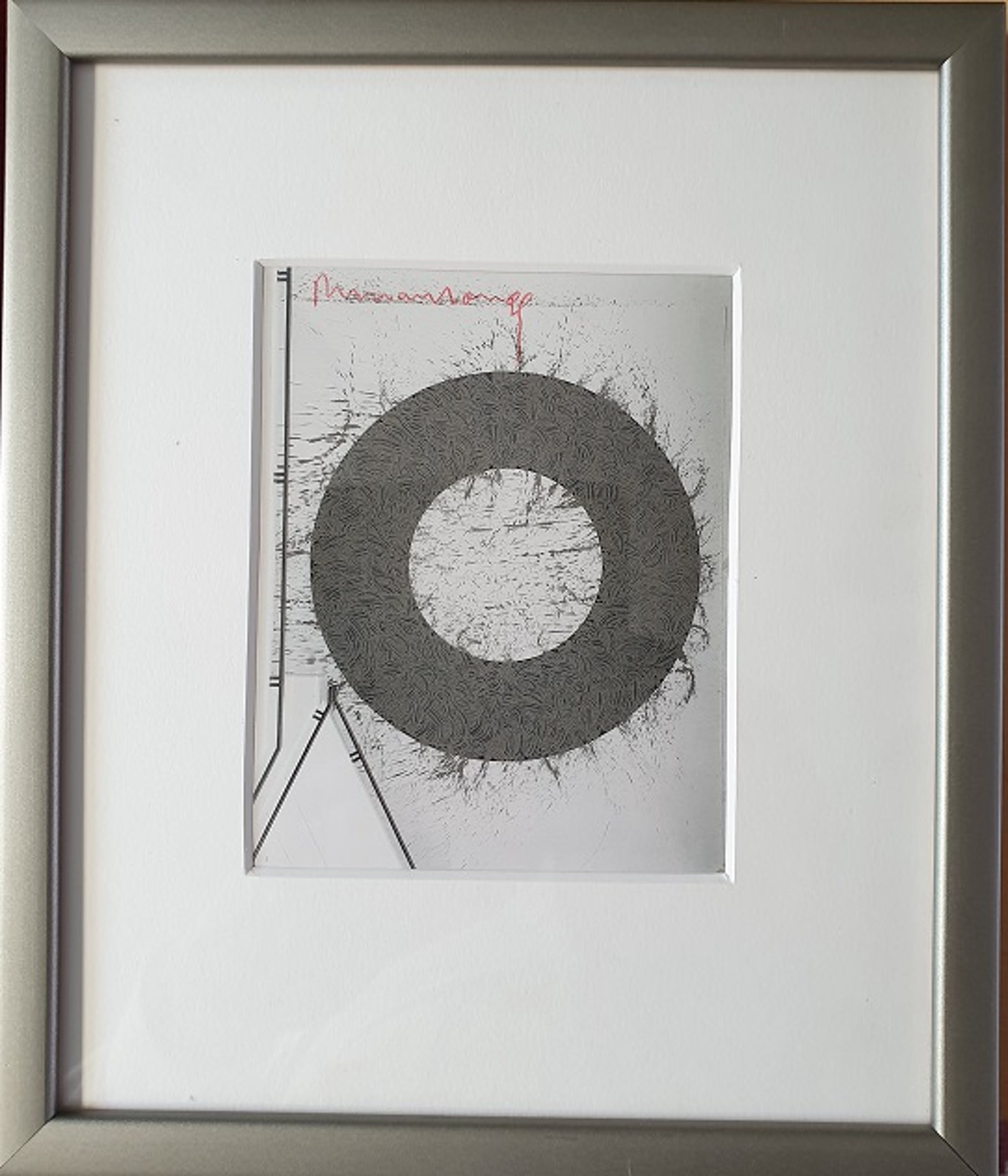 Van Land Art kunstenaar Richard Long (1945) deze met rode pen gesigneerde kaart van een cirkel. Het lijkt een cirkel van klei op een muur. Het werk meet inclusief lijst 26 x 22 cm. Het gelegenheidswerk wordt aangetekend verstuurd, maar kan ook afgehaald worden.