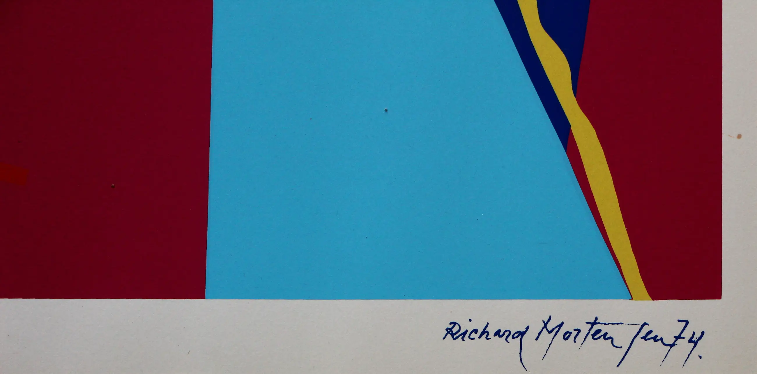 Geometrische compositie van Richard Mortensen. Nummer: 1079/3976. De authenticiteit van het aangeboden werk wordt voor 100% gegarandeerd. Een certificaat van echtheid kan, op aanvraag worden gemaild.