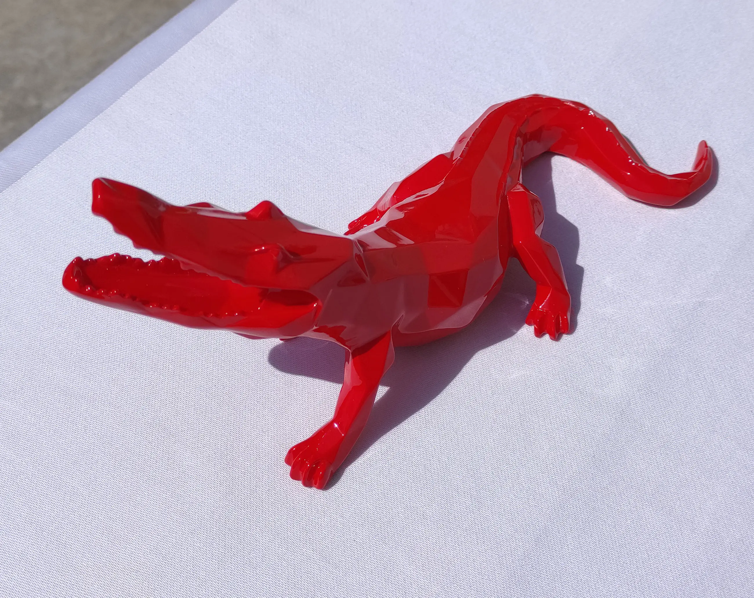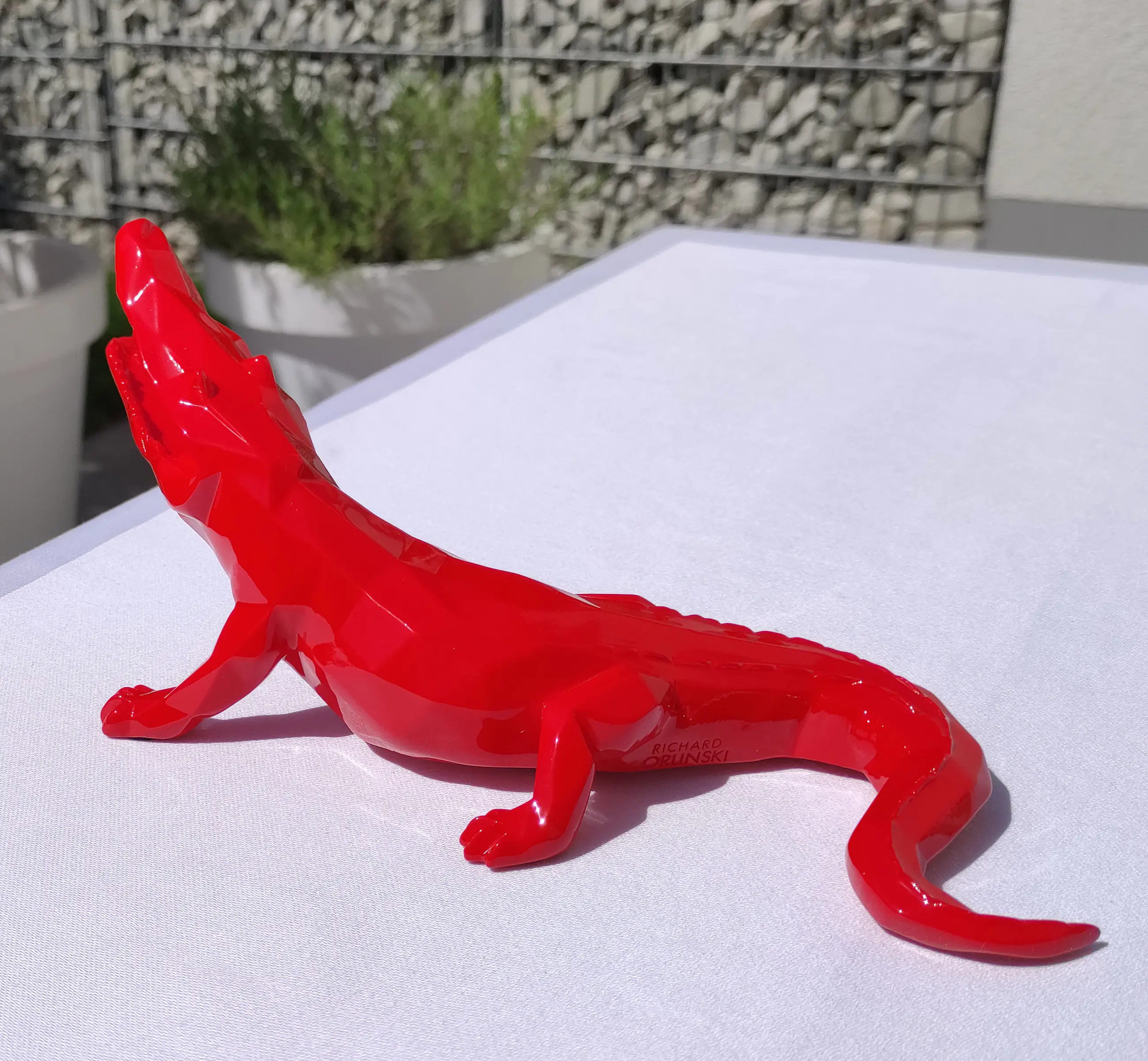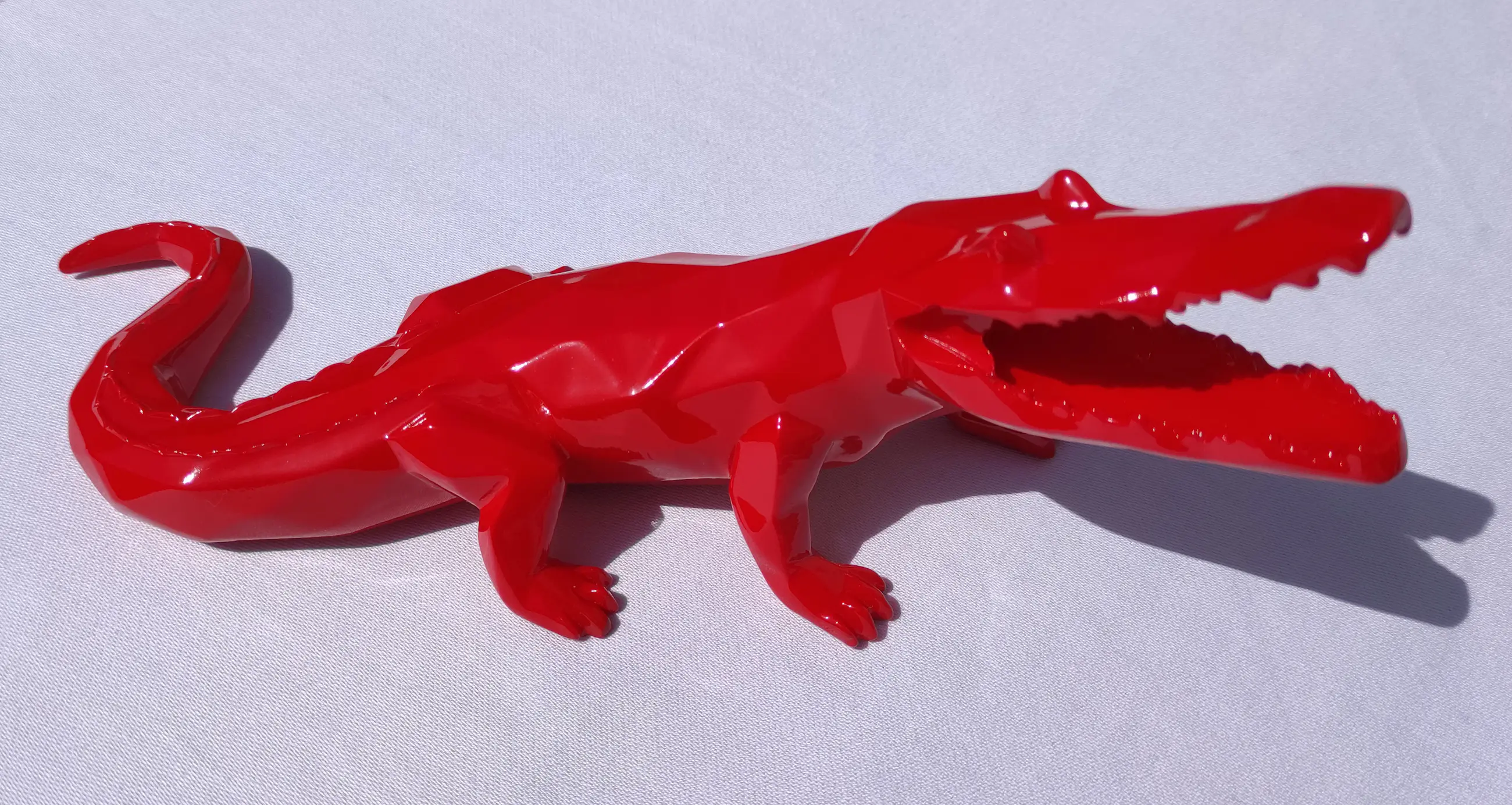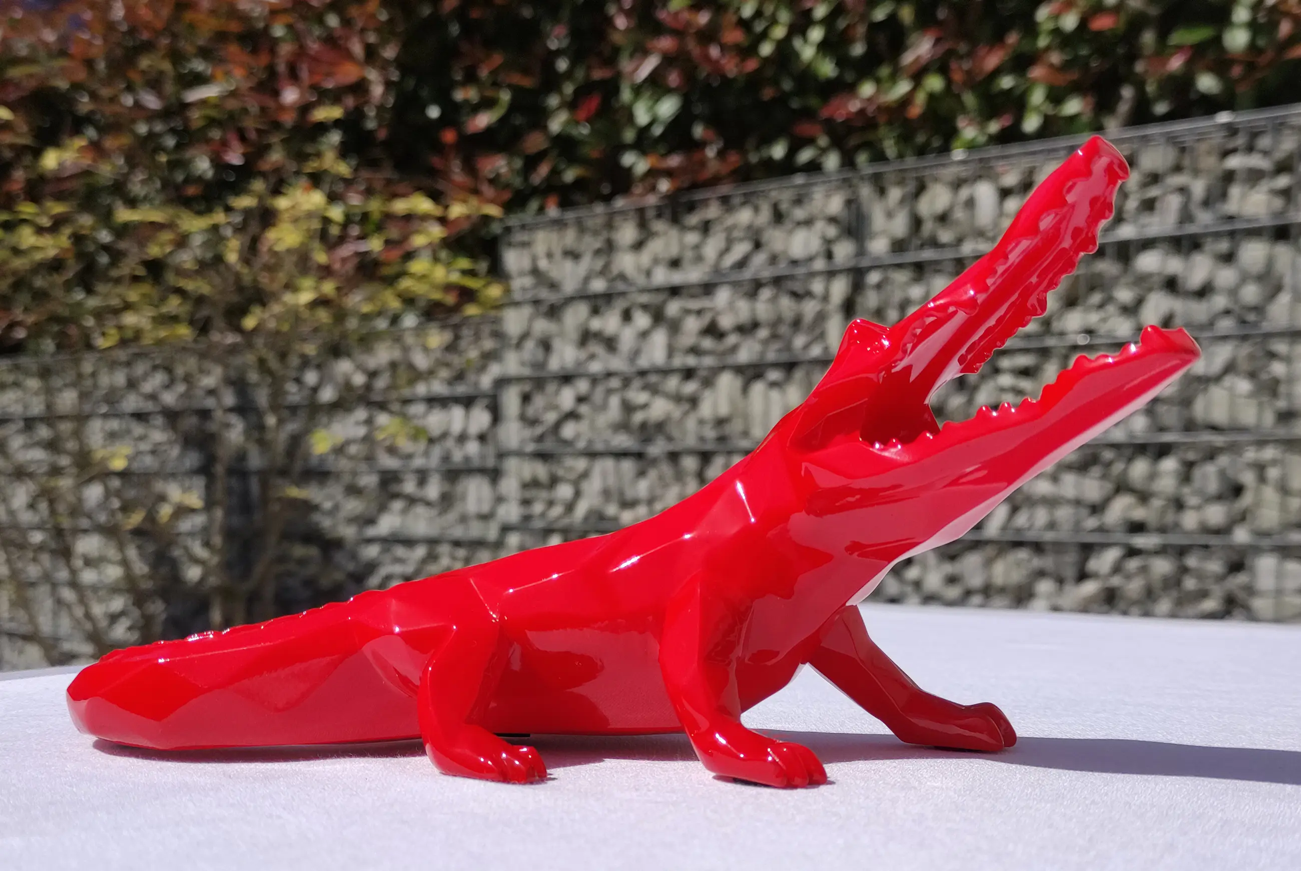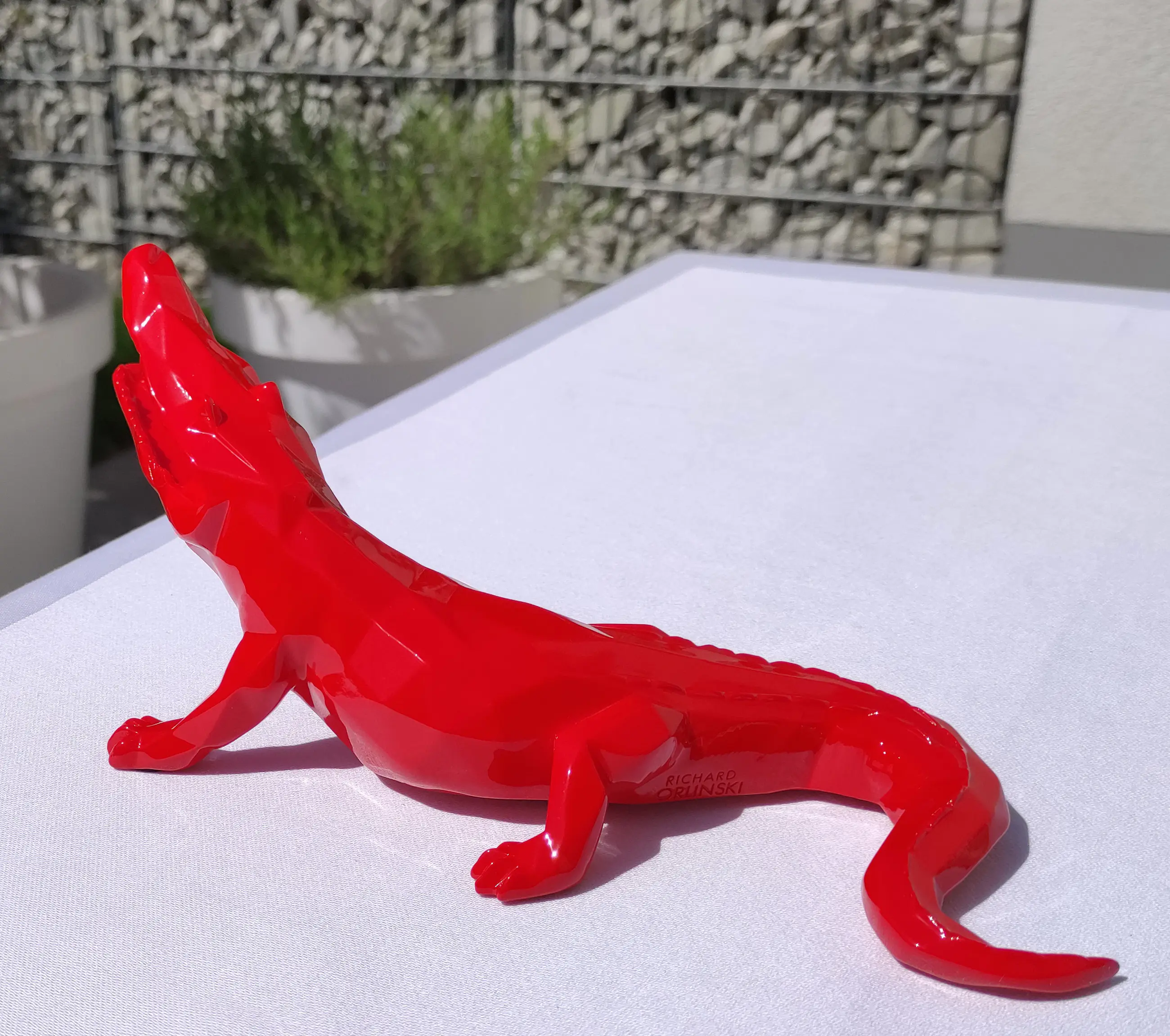 Het beeldhouwwerk CROCO SPIRIT (RED EDITION) van Richard Orlinski.