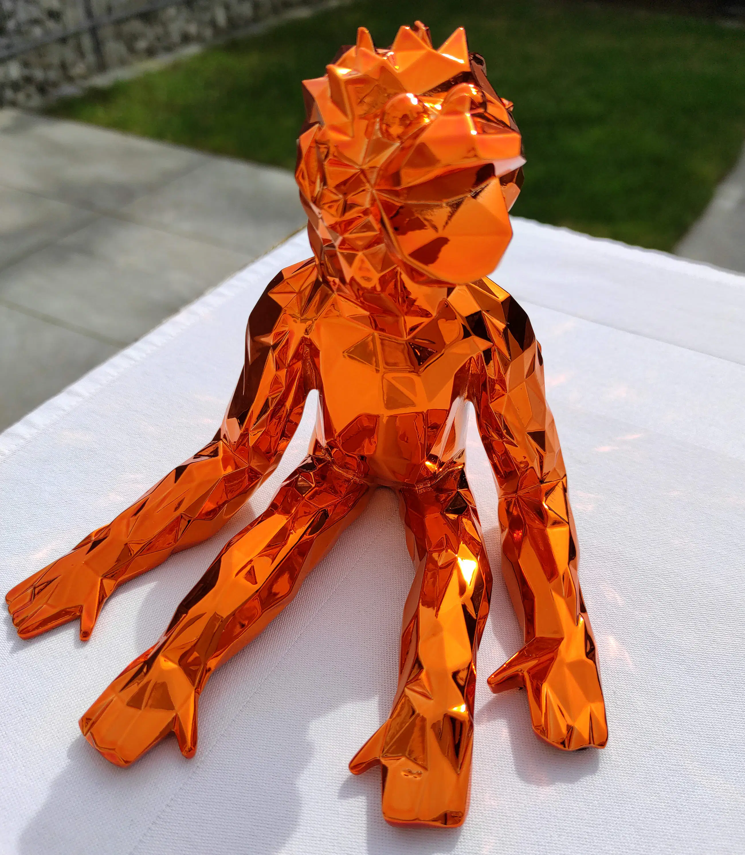 Het beeldhouwwerk JEAN-MARC SPIRIT (ORANJE EDITIE) van Richard Orlinski.
