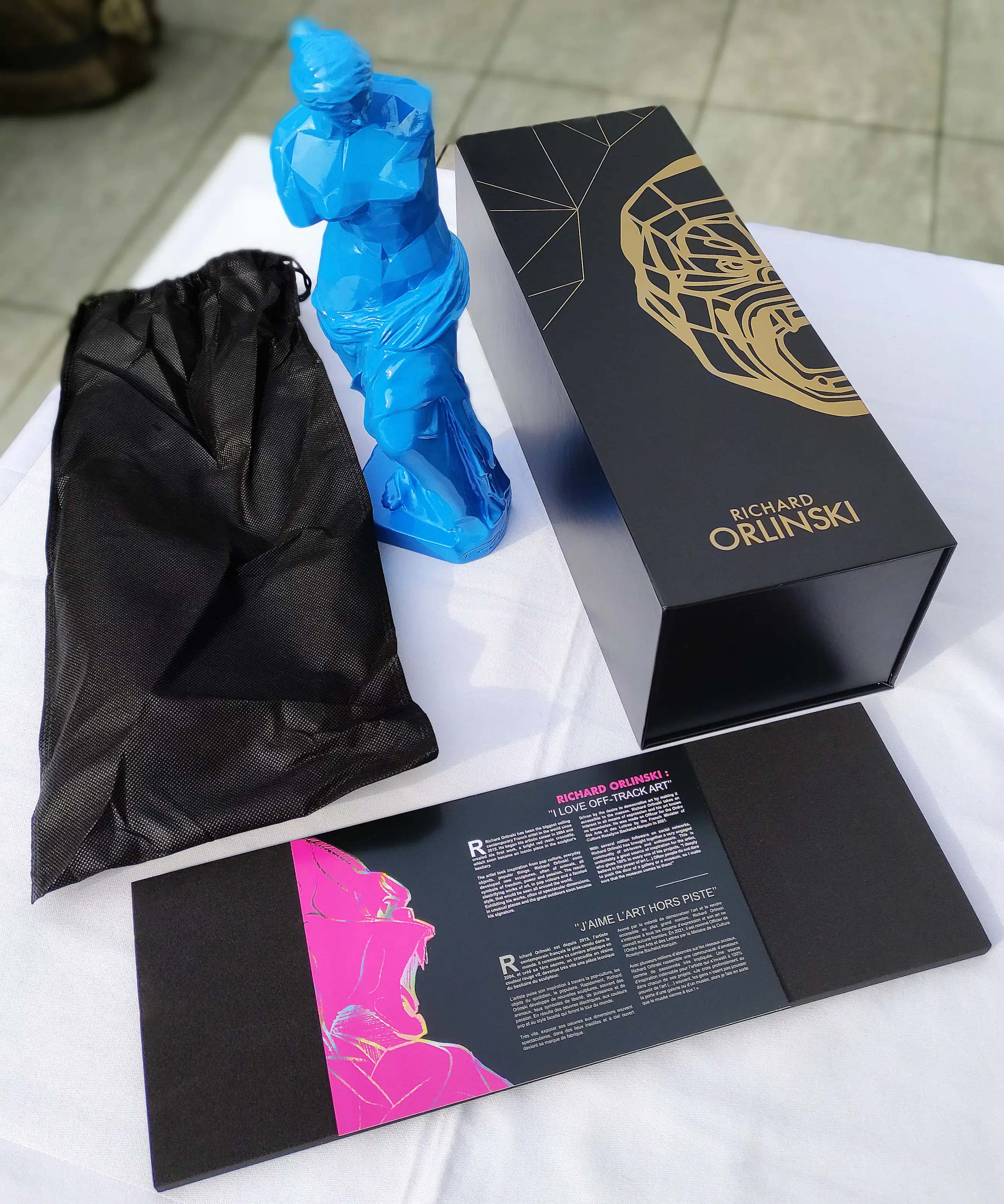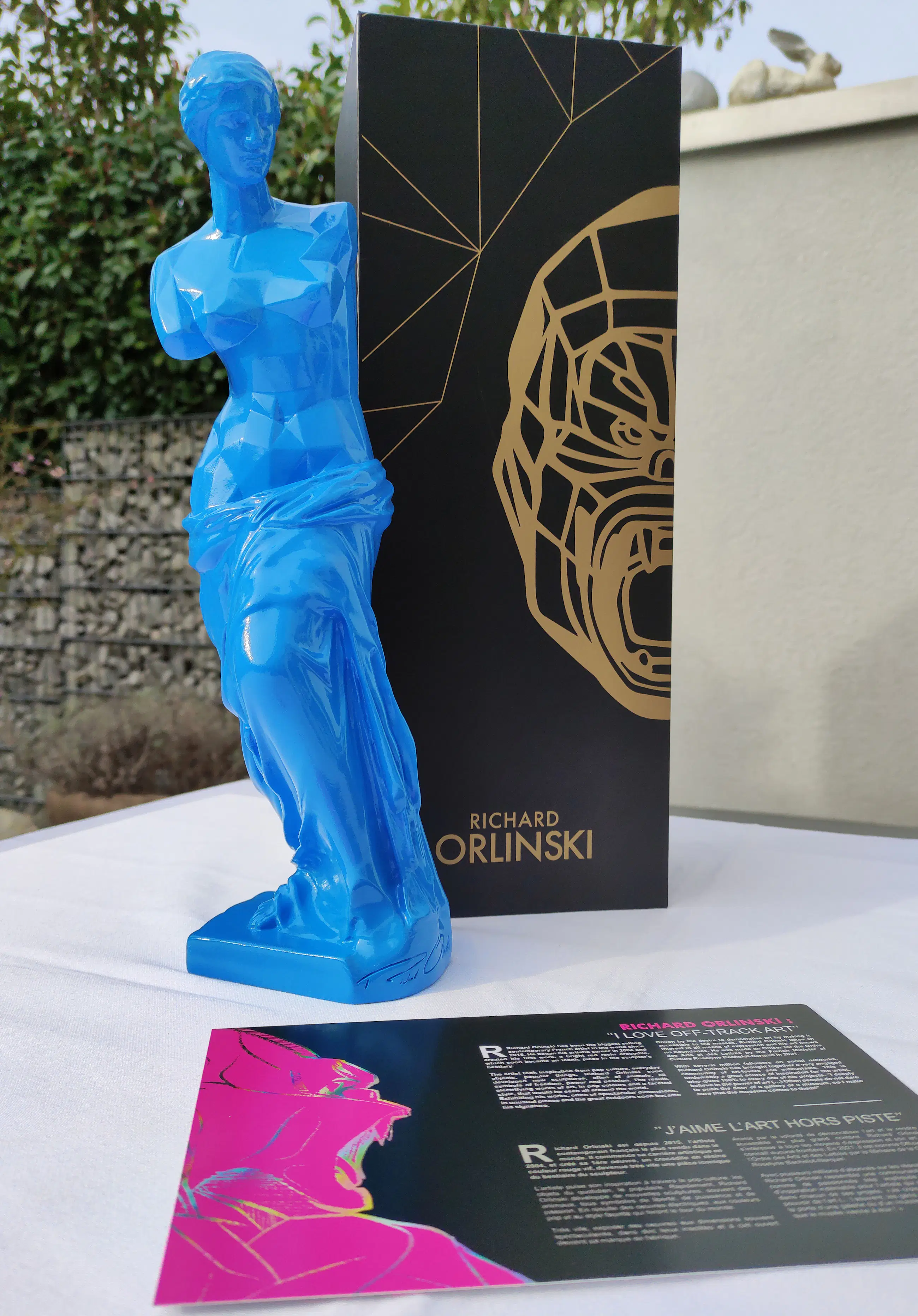 Het Venusbeeld draagt de reliëfsignatuur van Richard Orlinski en is een eerbetoon aan de kunst uit de oudheid. Het werd uitgebracht in een gelimiteerde, ongenummerde oplage.