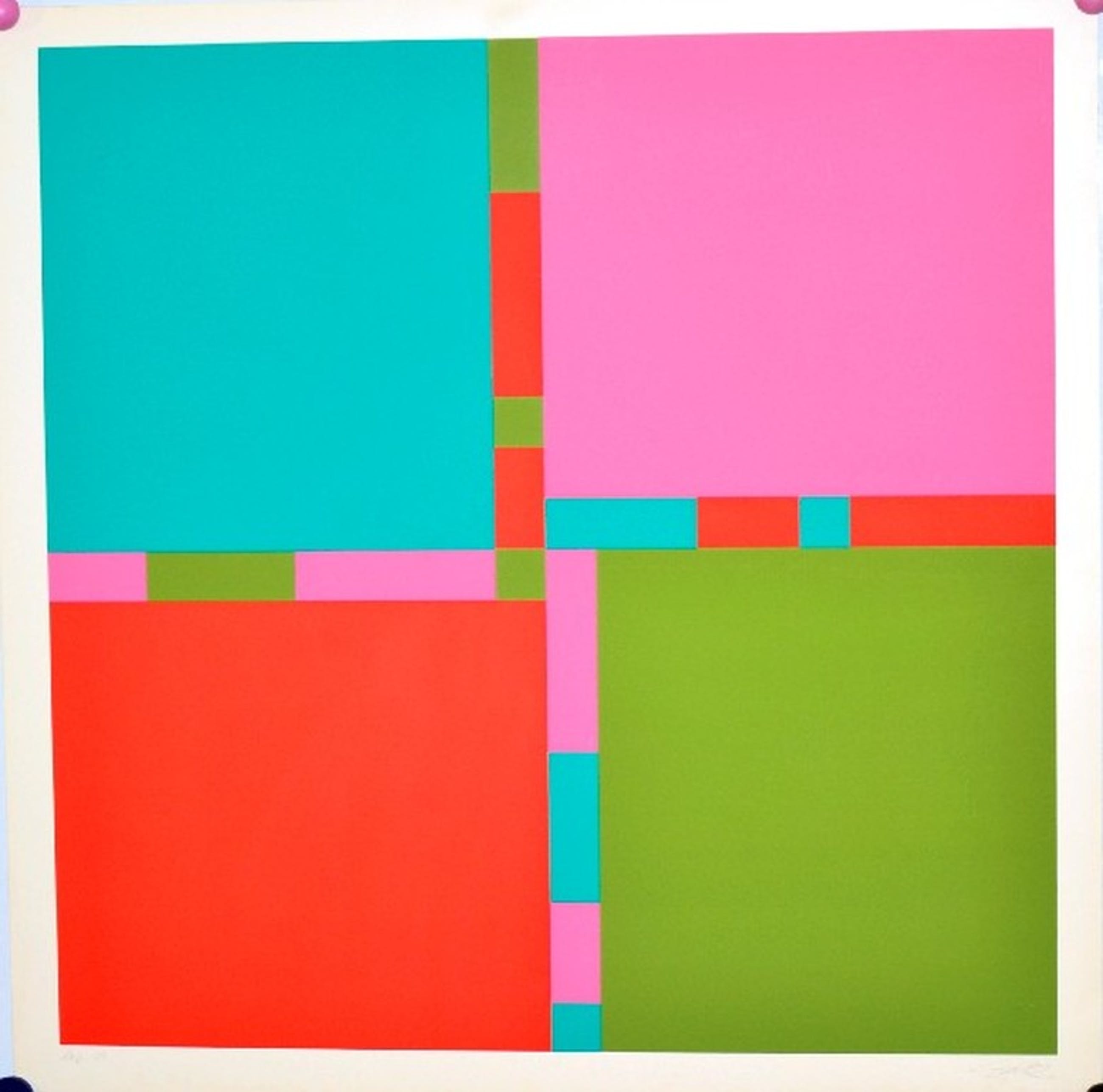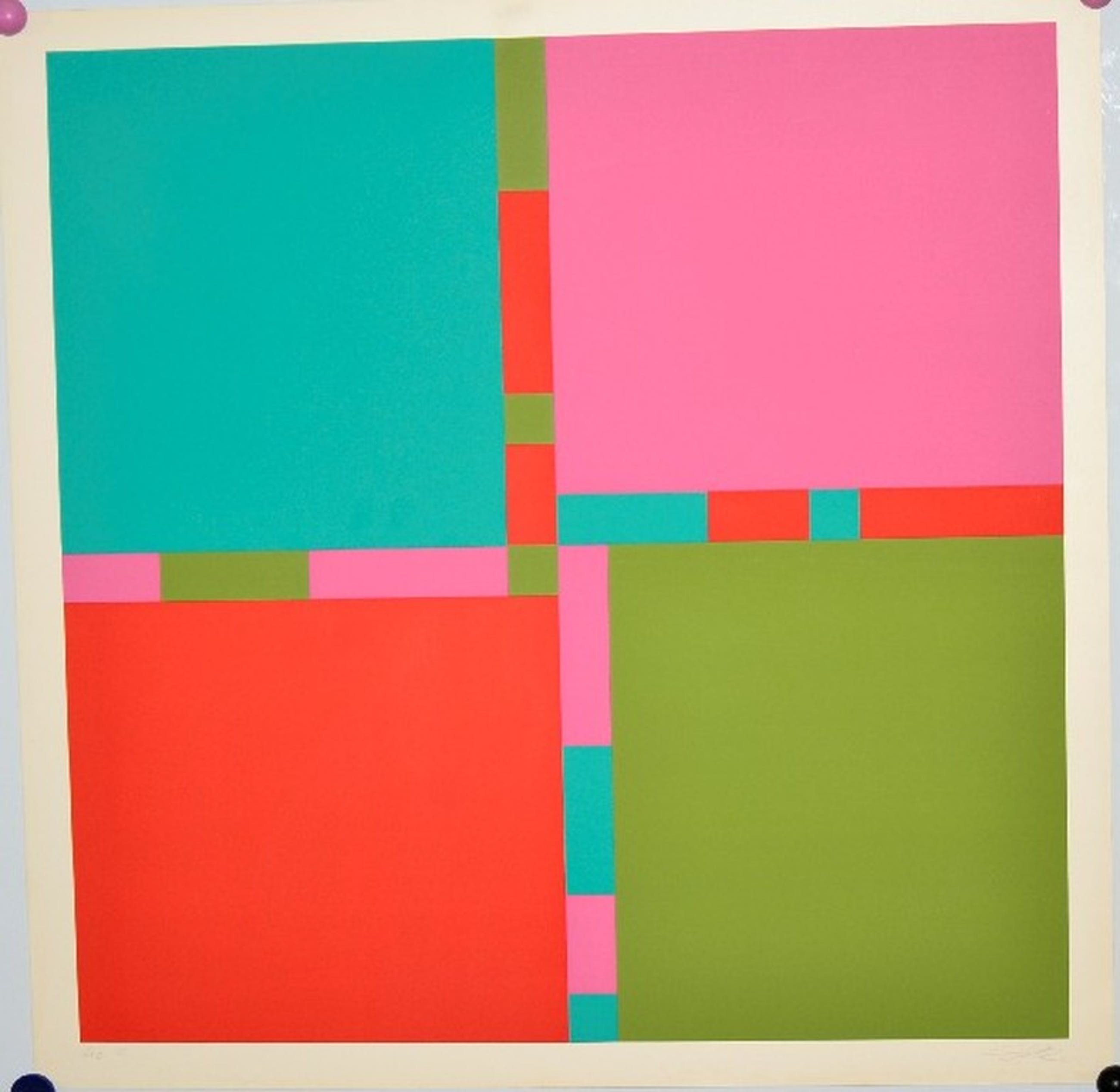 Mooie grote zeefdruk van Richard Lohse gedrukt op wit stevig papier/dun karton.