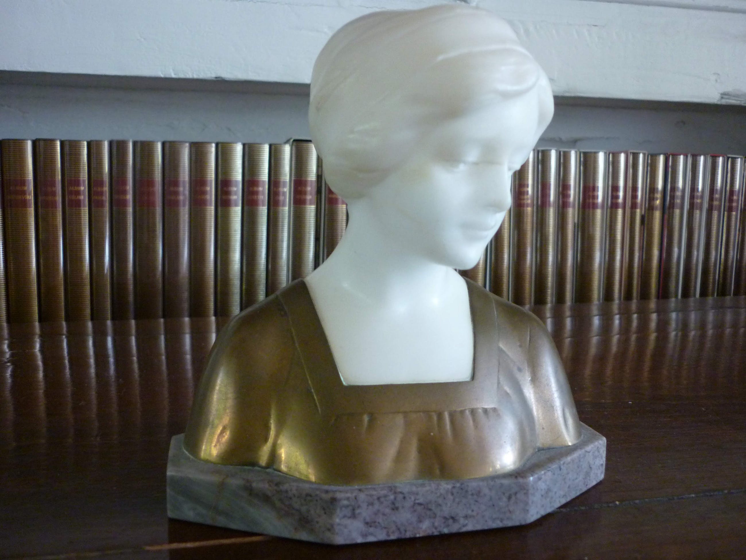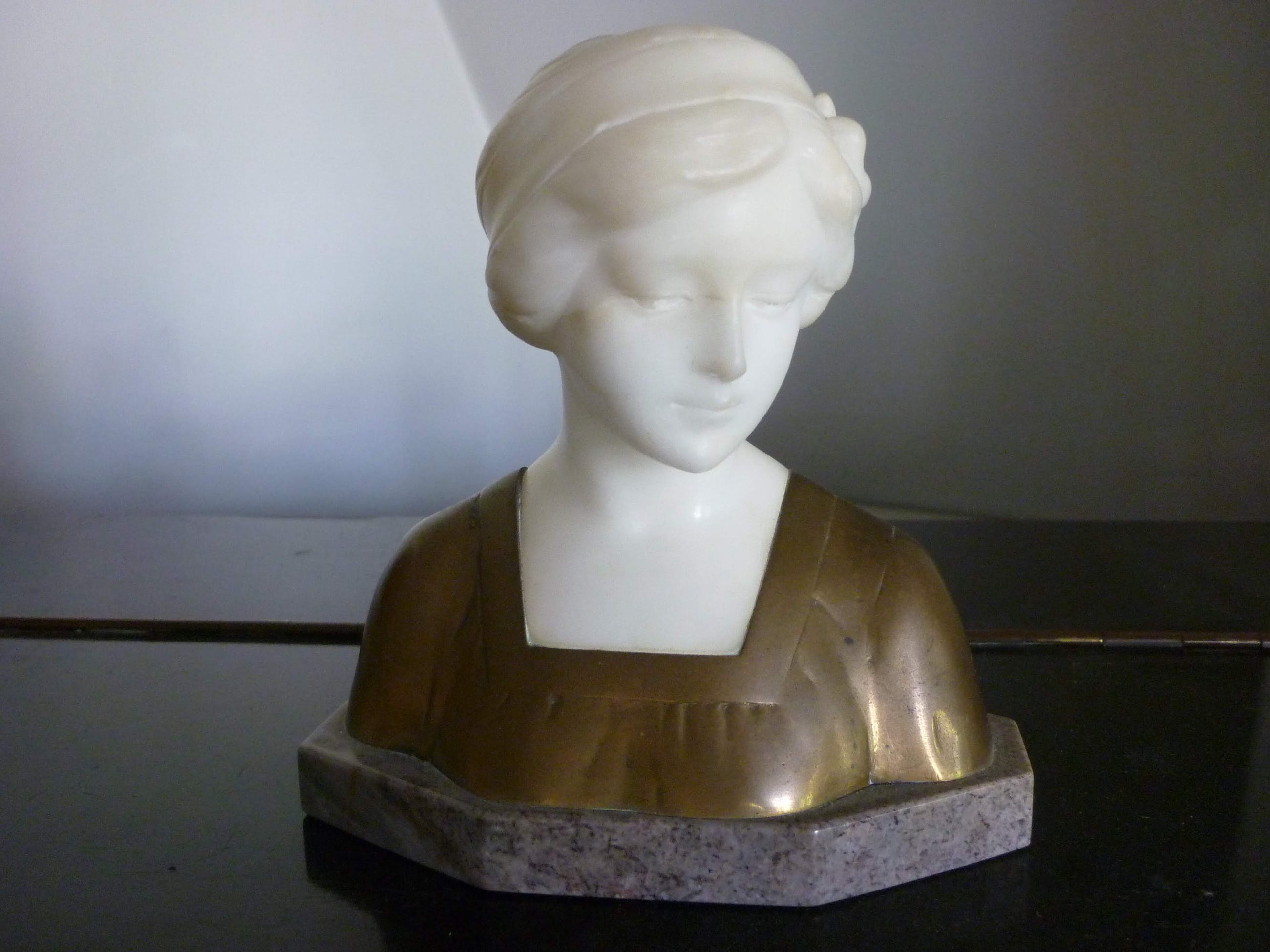 Büste albast en brons, op marmeren voet, achteraan gesigneerd. Plusminus 1880.Zie ook https://www.hampel-auctions.com/a/Richard-Pauli-1855-1892.html?a=112&s=572&id=545600&g=Skulpturen