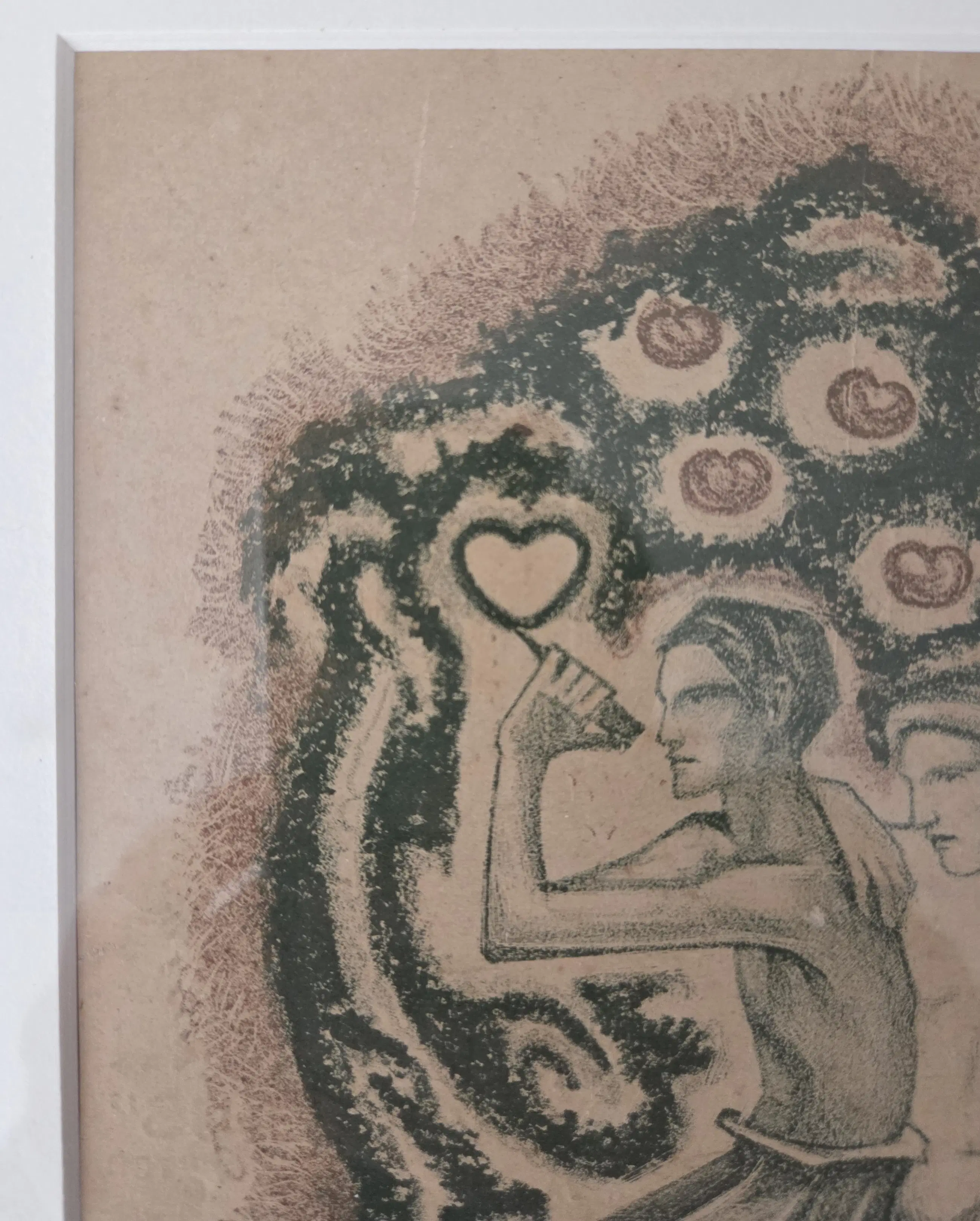 Illustratie voorzijde beroemd tijdschrift. Drukgesigneerd met monogram. Ingelijst. Mooi passe partout. Nette lijst. Afbeelding goede staat gezien ouderdom. Zie foto's voor eigen oordeel kwaliteit.