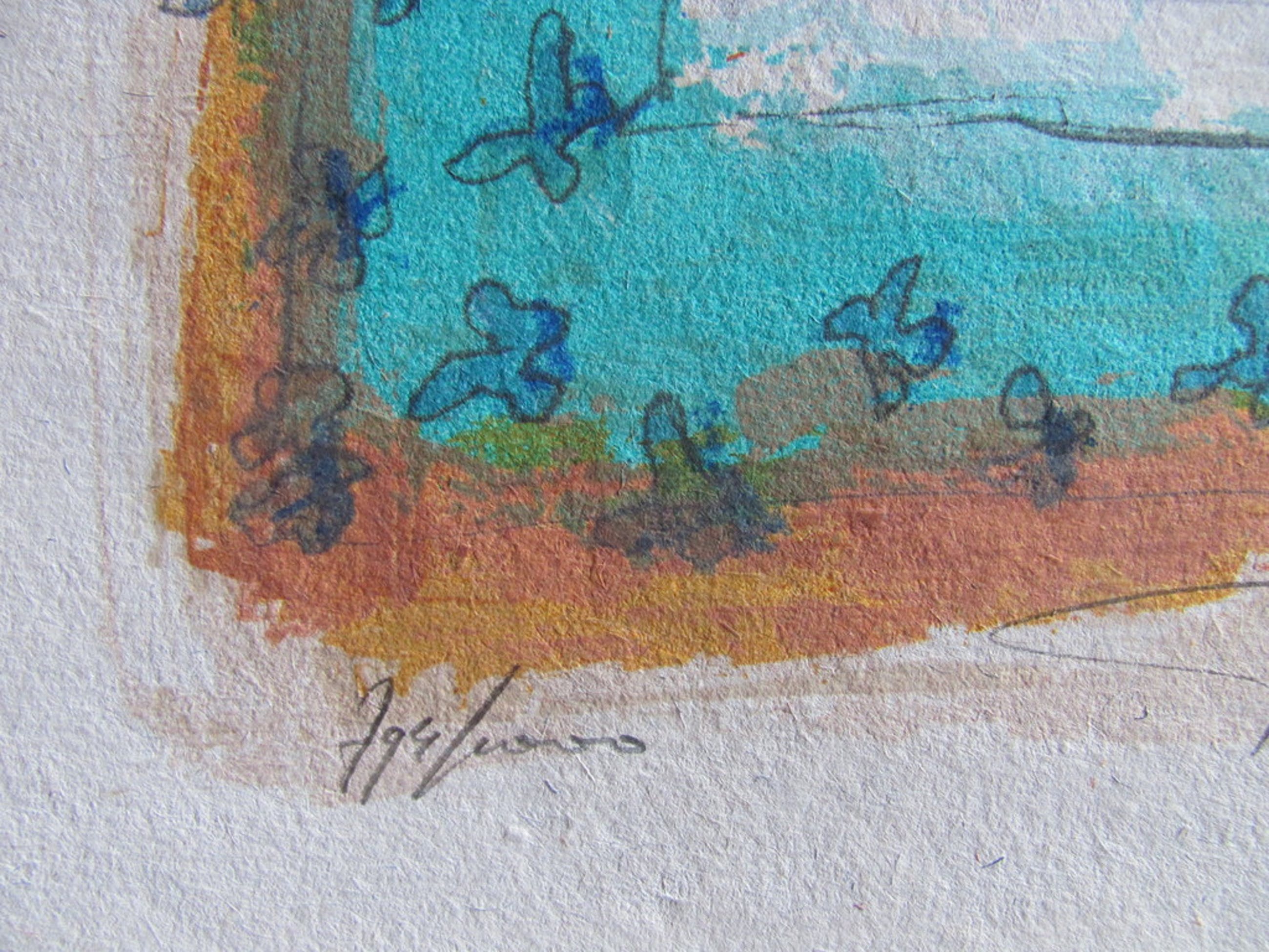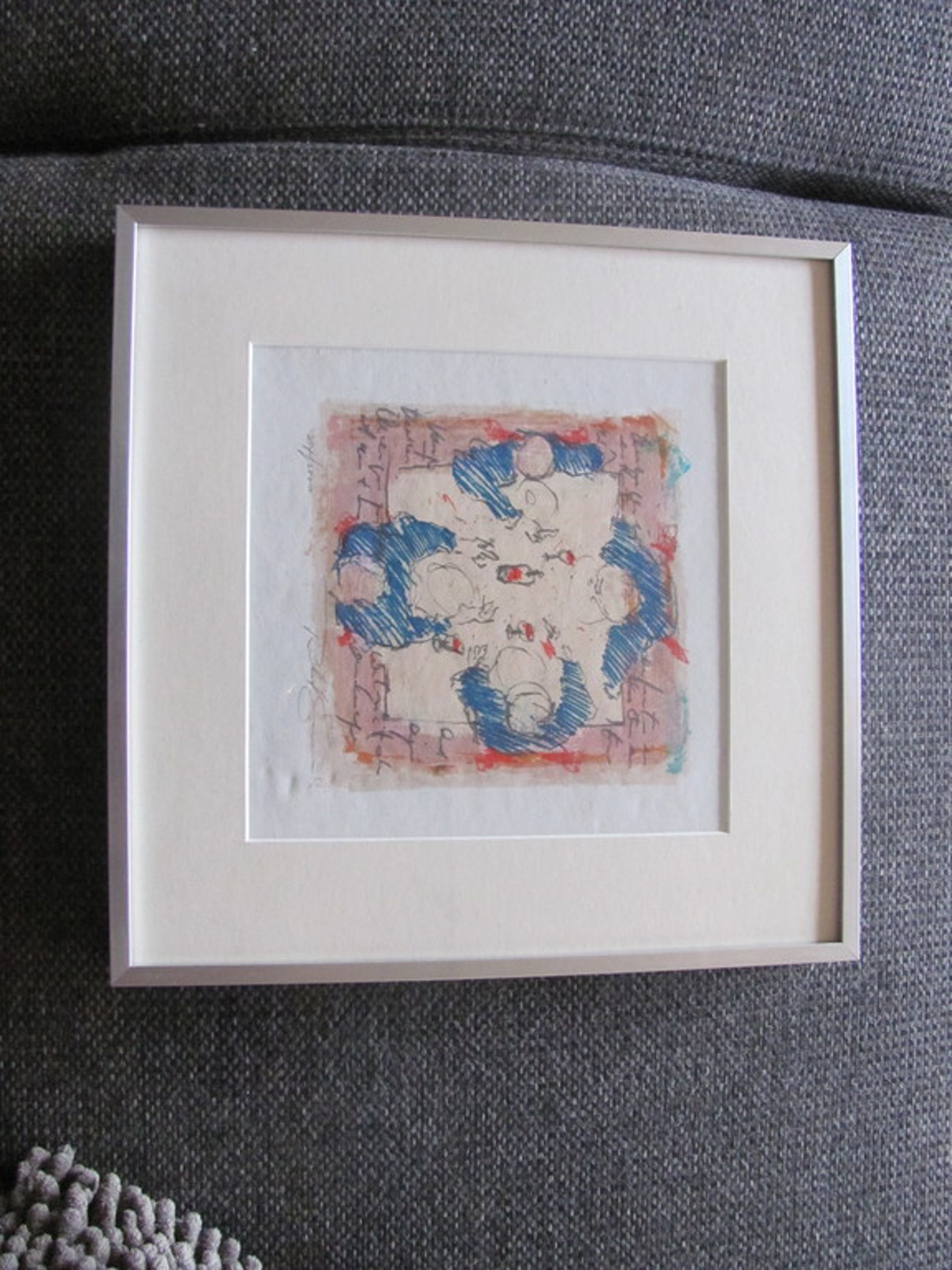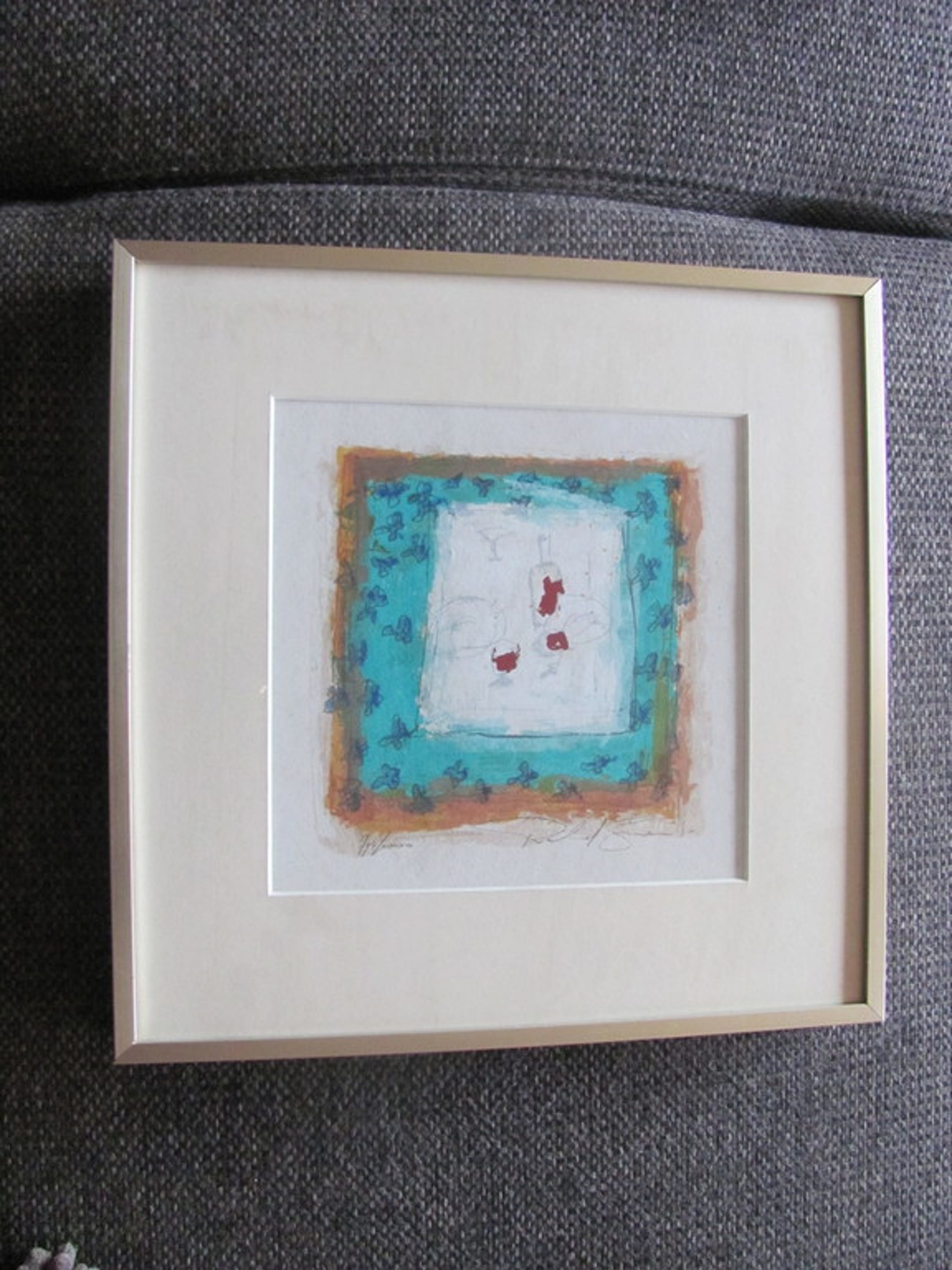 Ingelijst achter glas en in passepartout, 30 cm x 30 cm.