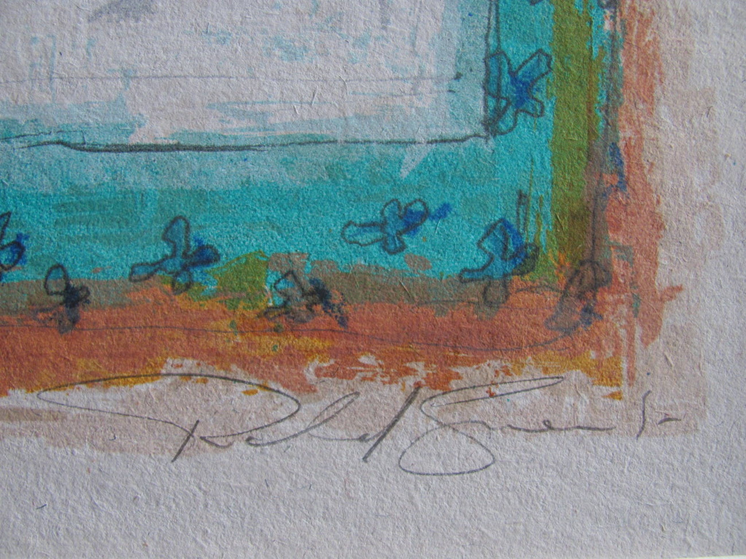 RICHARD SMEETS: Geboren op 12 januari in 1955 te Gennep. Opleiding aan de Stadsacademie voor Toegepaste Kunsten te Maastricht. Richard Smeets is begonnen met het schilderen van naturalistische voorstellingen. In zijn huidige meer abstracte werk gaat hij uit van de figuratieve wereld. In de uiteindelijke compositie is echter sporadisch een herkenbare vorm waar te nemen. De onderwerpen van zijn schilderijen ontstaan naar aanleiding van ervaringen in het dagelijks leven of tijdens zijn reizen in Europa. Wat Smeets schildert is in staat van ontstaan; lentelijk of pas geboren, soms paradijselijk, romantisch of landschappelijk. In een toenemende wisselwerking van gevoelens, indrukken, herkenningen, verbazing, gedach-ten en onvermoede lijnen werkt Smeets aan zijn schilderijen. De uitgangs-punten zijn figuratief, maar verliezen binnen het schilderij hun fysieke betekenis zodat van een in verf vertaalde weergave geen sprake meer is. Zij leiden juist naar de verbeelding van een geestelijke gesteltenis. De abstrahering verdringt op een boeiende wijze de aanleiding. Kenmerkend voor het werk van Smeets is zijn gebruik van vele felle en heldere kleuren. De toonzetting is dieper dan zijn vroegere werk.