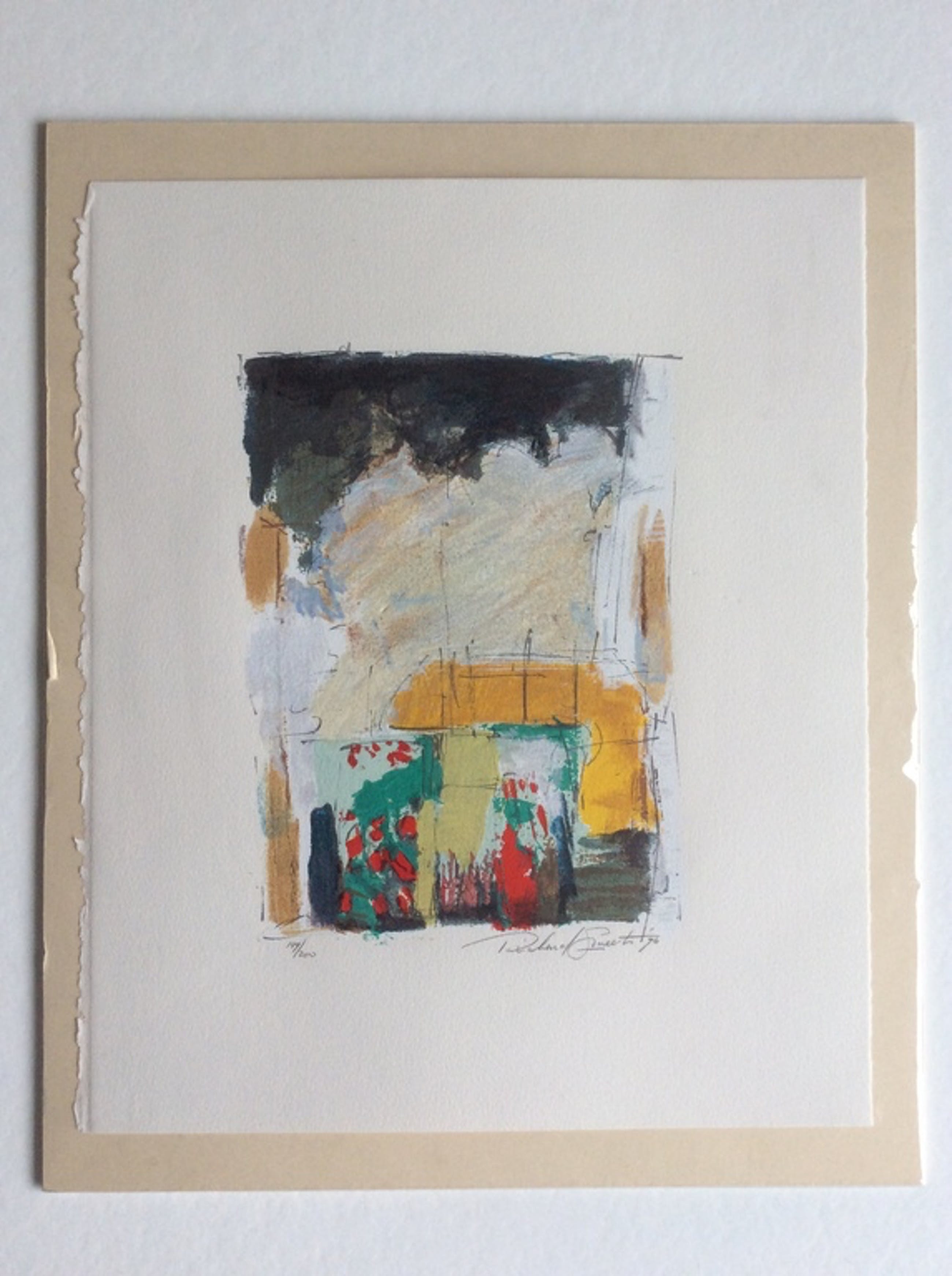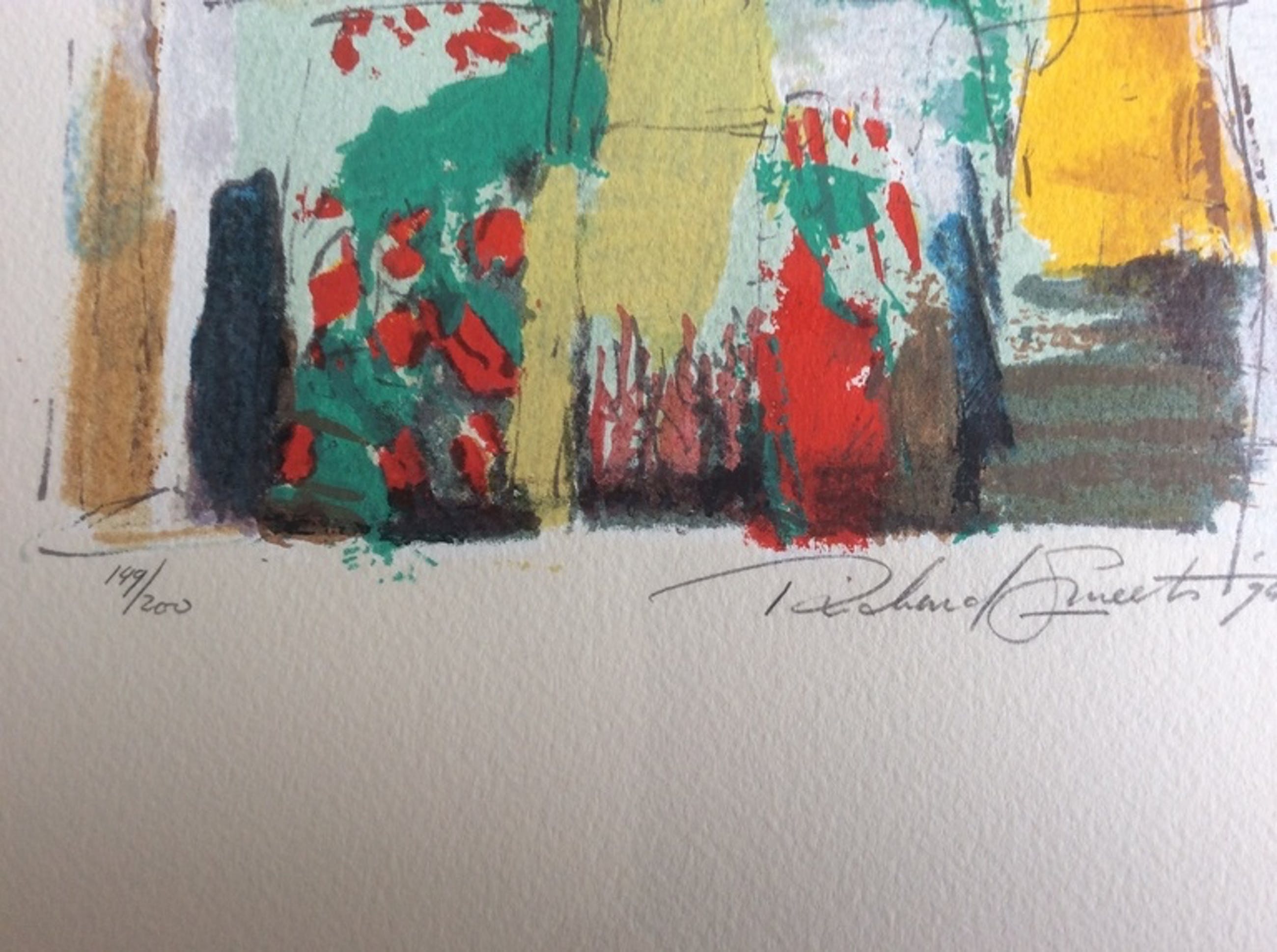 fraaie zeefdruk op Arches papier van Richard Smeets: Trein in landschap. Formaat blad 33 x 40 cm, druk 18 x 25 cm. Hand gesigneerd, genummerd 149/200 en gedateerd 1994. Zit nog in oorspronkelijke verpakking.