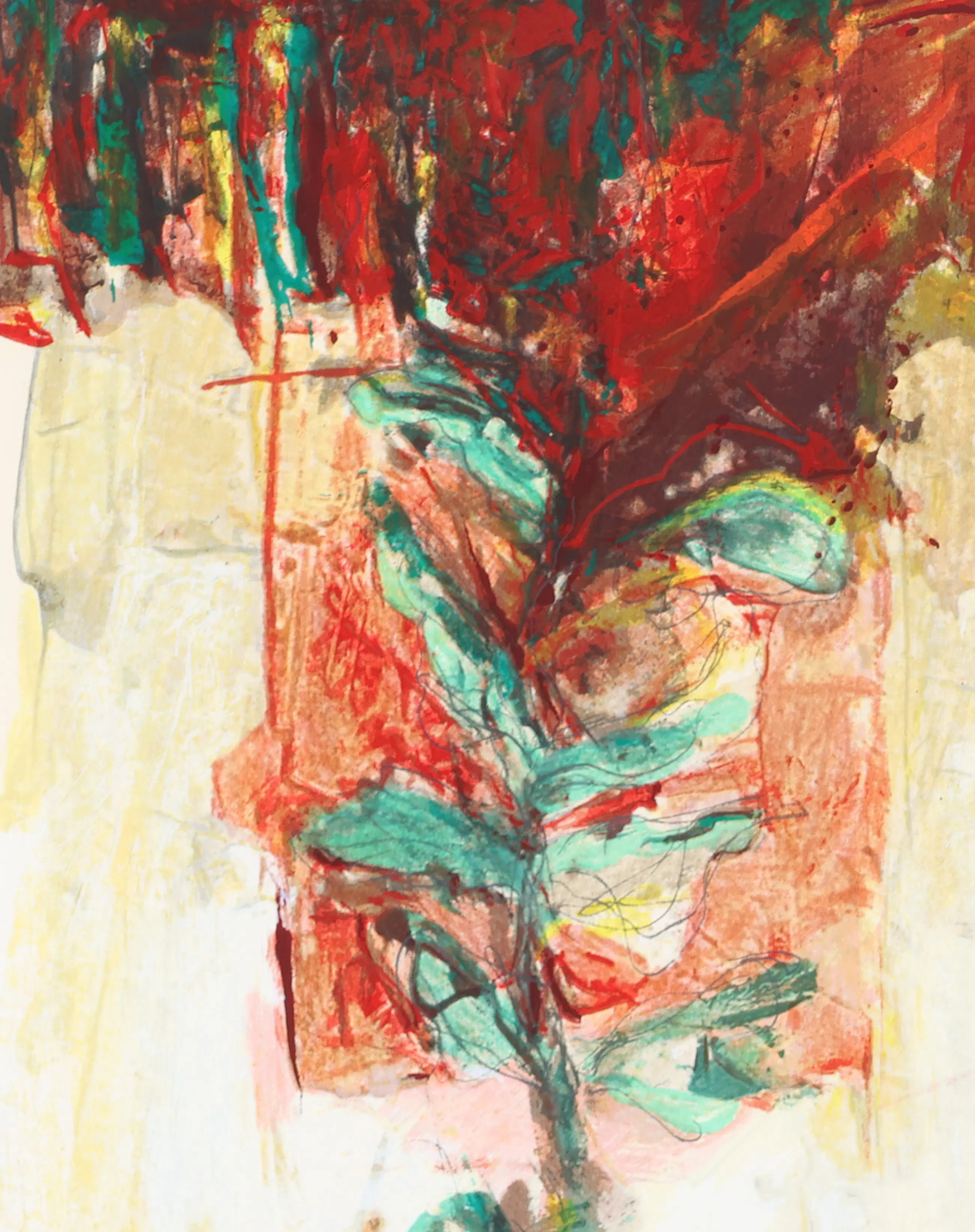 Dit kleurrijke werk is een expressieve compositie van letters en figuren. Het is gemaakt door Richard Smeets (Gennep, 1955), een Nederlandse beeldend kunstenaar die bekendstaat om zijn lyrisch semi-abstracte schilderijen en sculpturen.