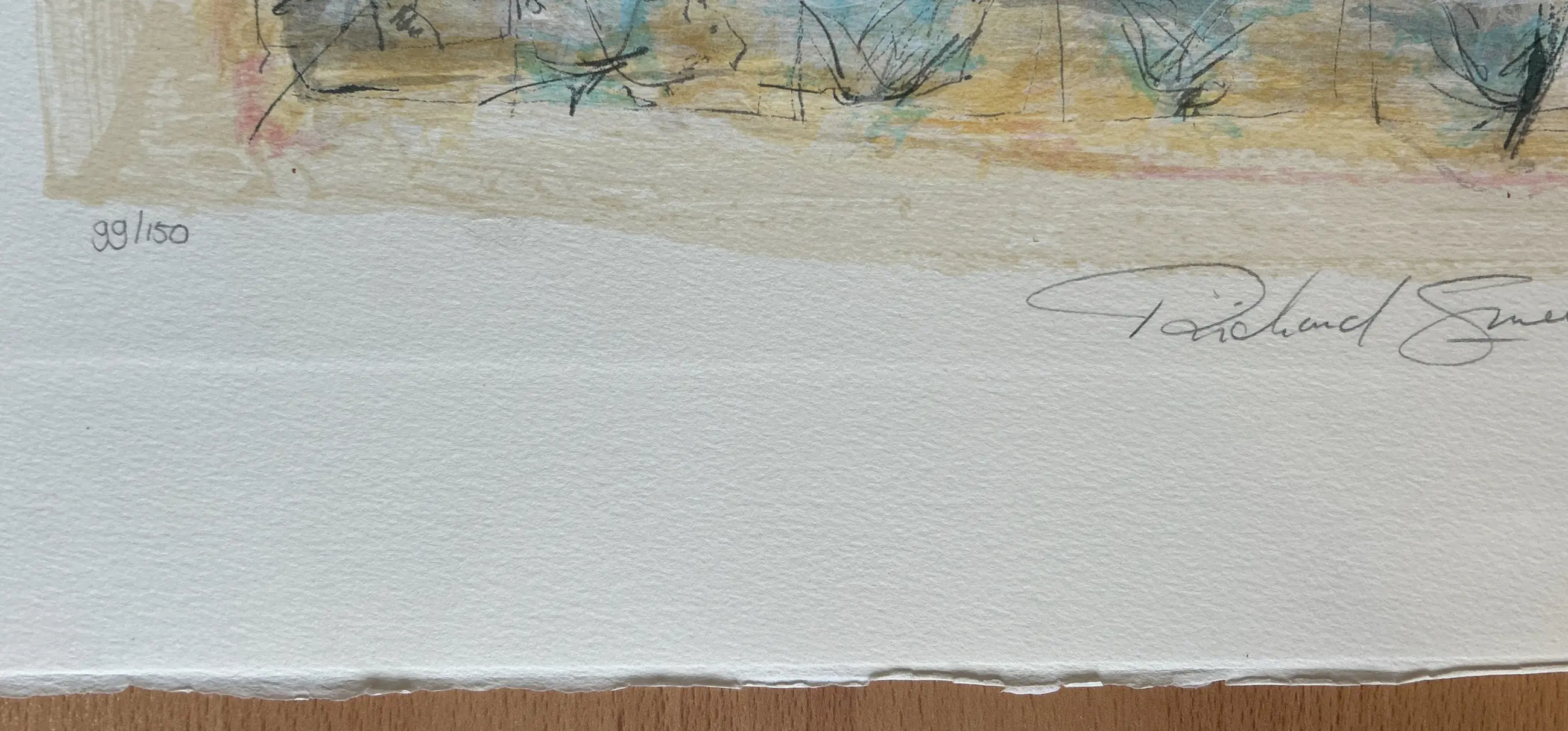Conditie: zeer goed. Licht oneffenheid en verkleuring inlijsten onderkant vel, zie foto's. Editie: 99/150. Afmeting: afbeelding 40 x 39 cm. Wordt verzekerd verzonden in een stevige kartonnen koker.