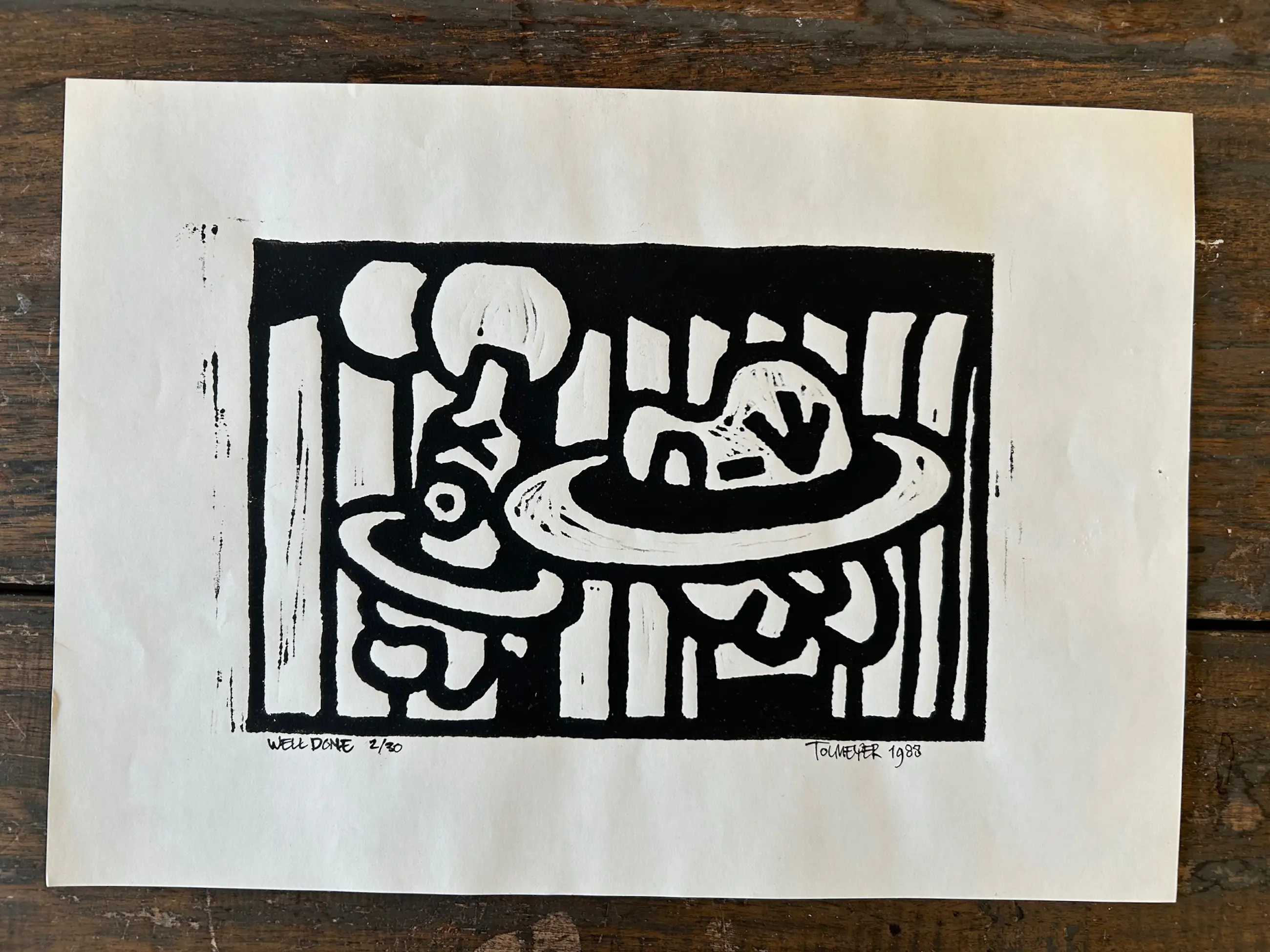 Fraaie houtdruk van Richard Tolmeyer. Prent in goede kwaliteit. U kunt het werk vooraf komen beoordelen bij Rotor onze schatkamer in Gorinchem.