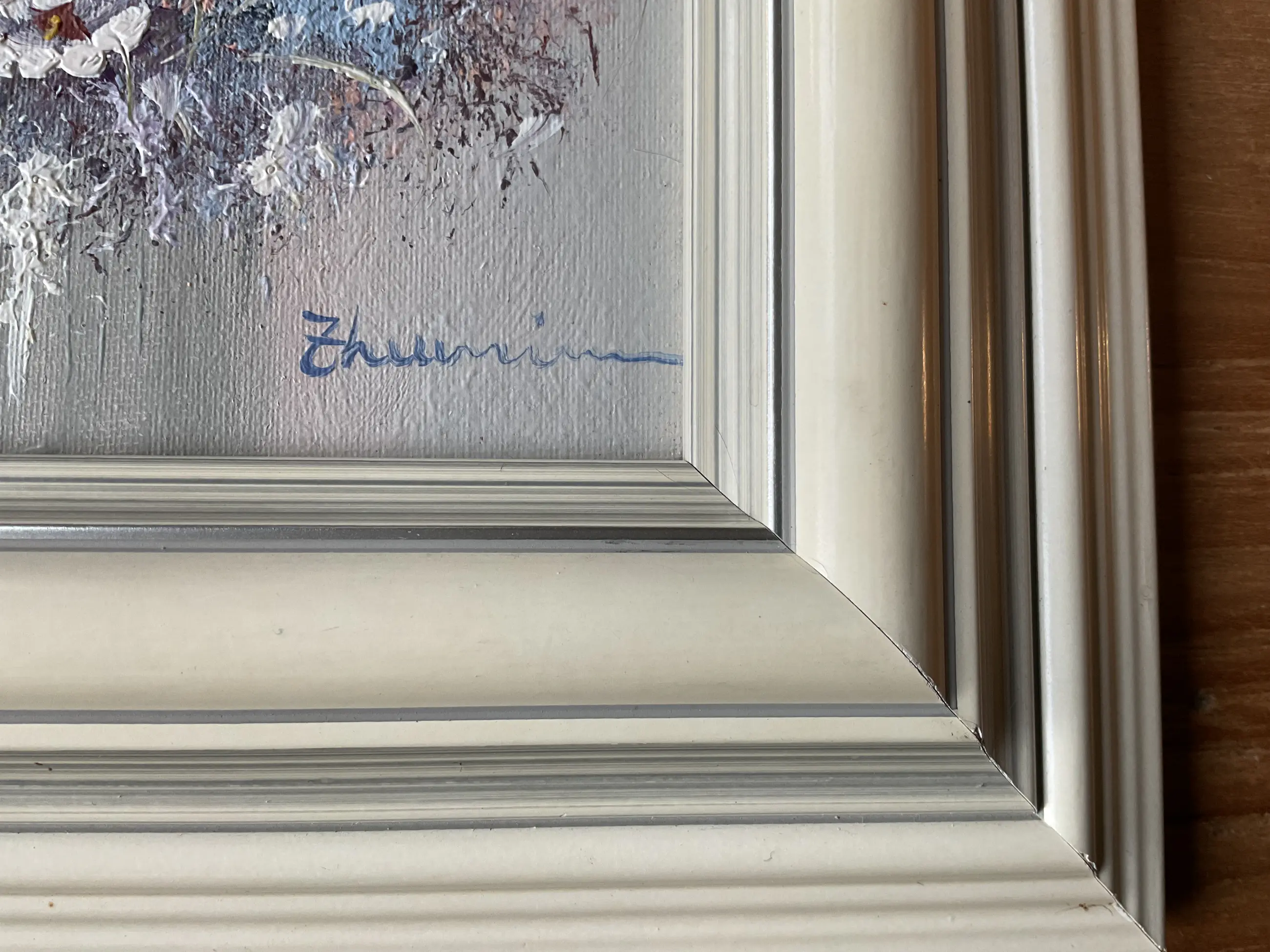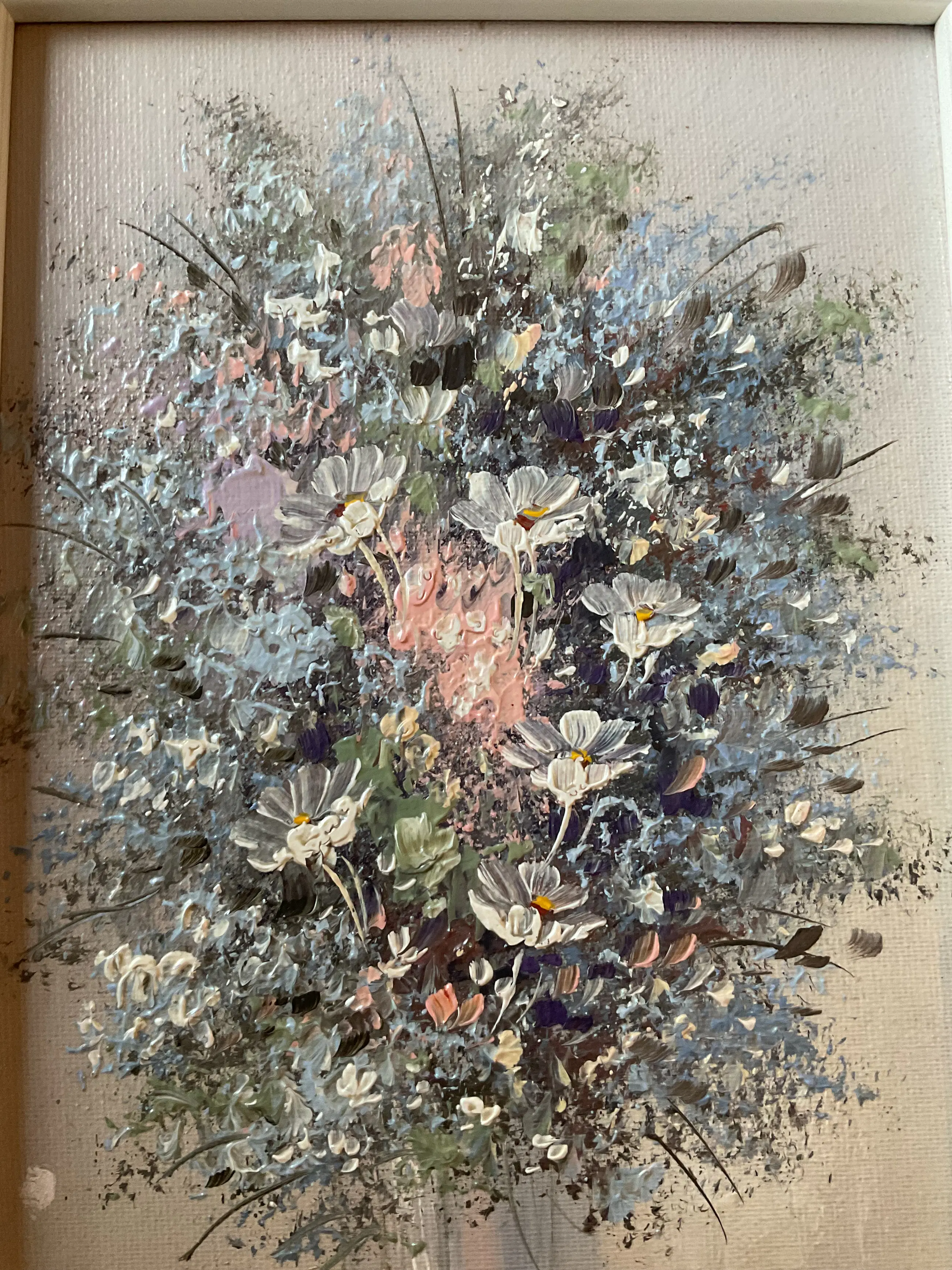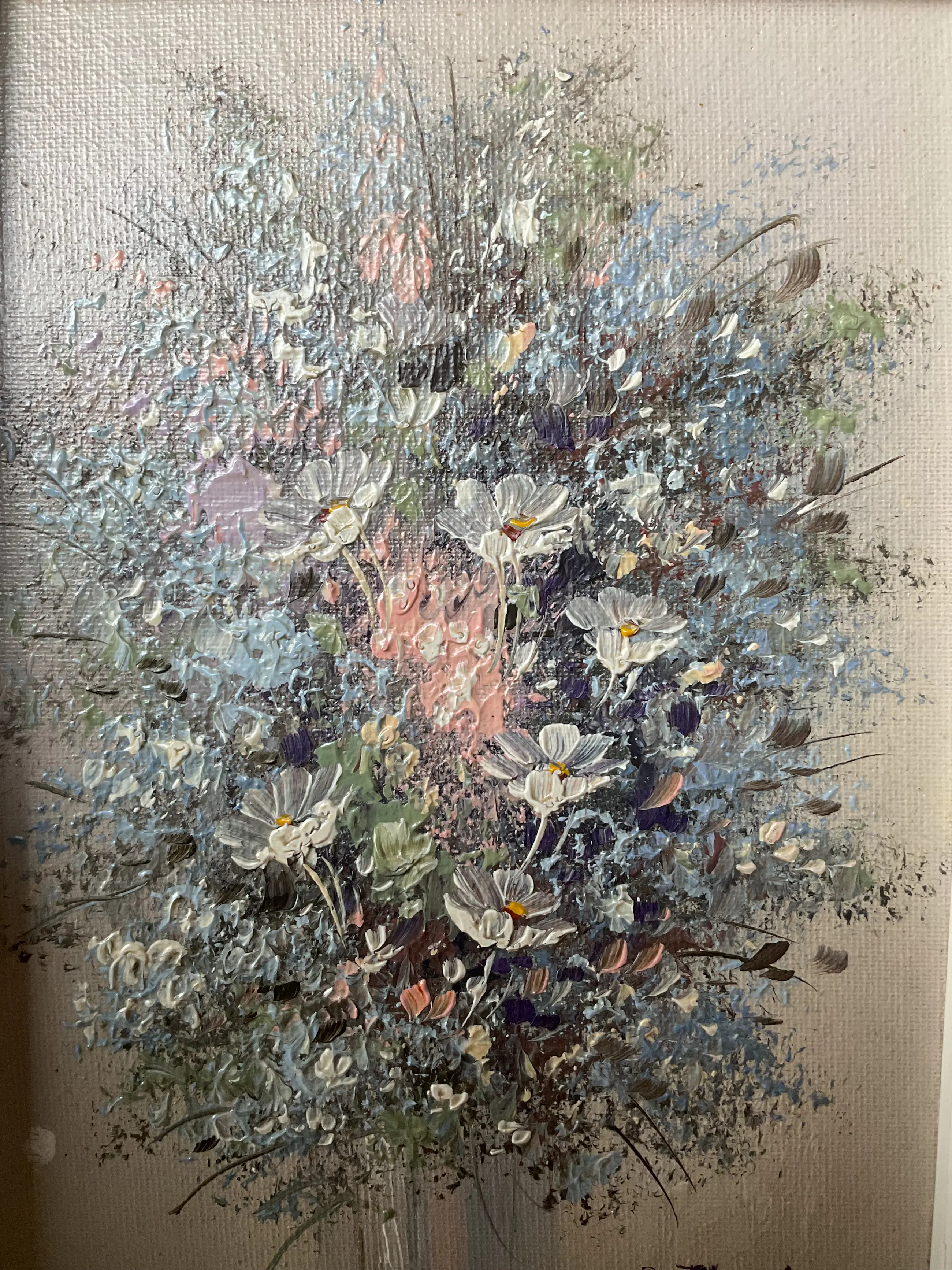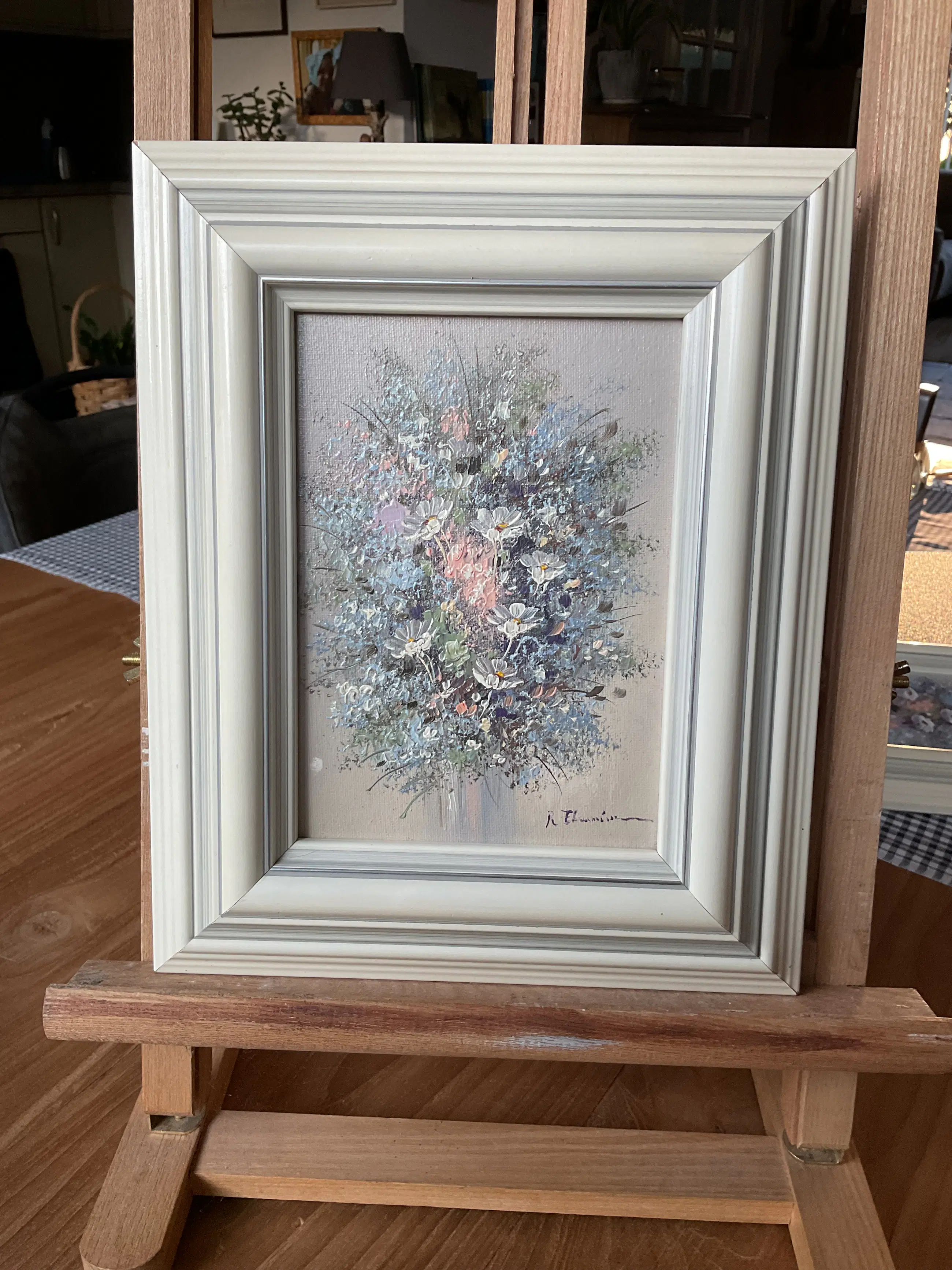 Twee kleine stillevens van de Belgische Rick Theunissen. Op schildersboard en keurig ingelijst.