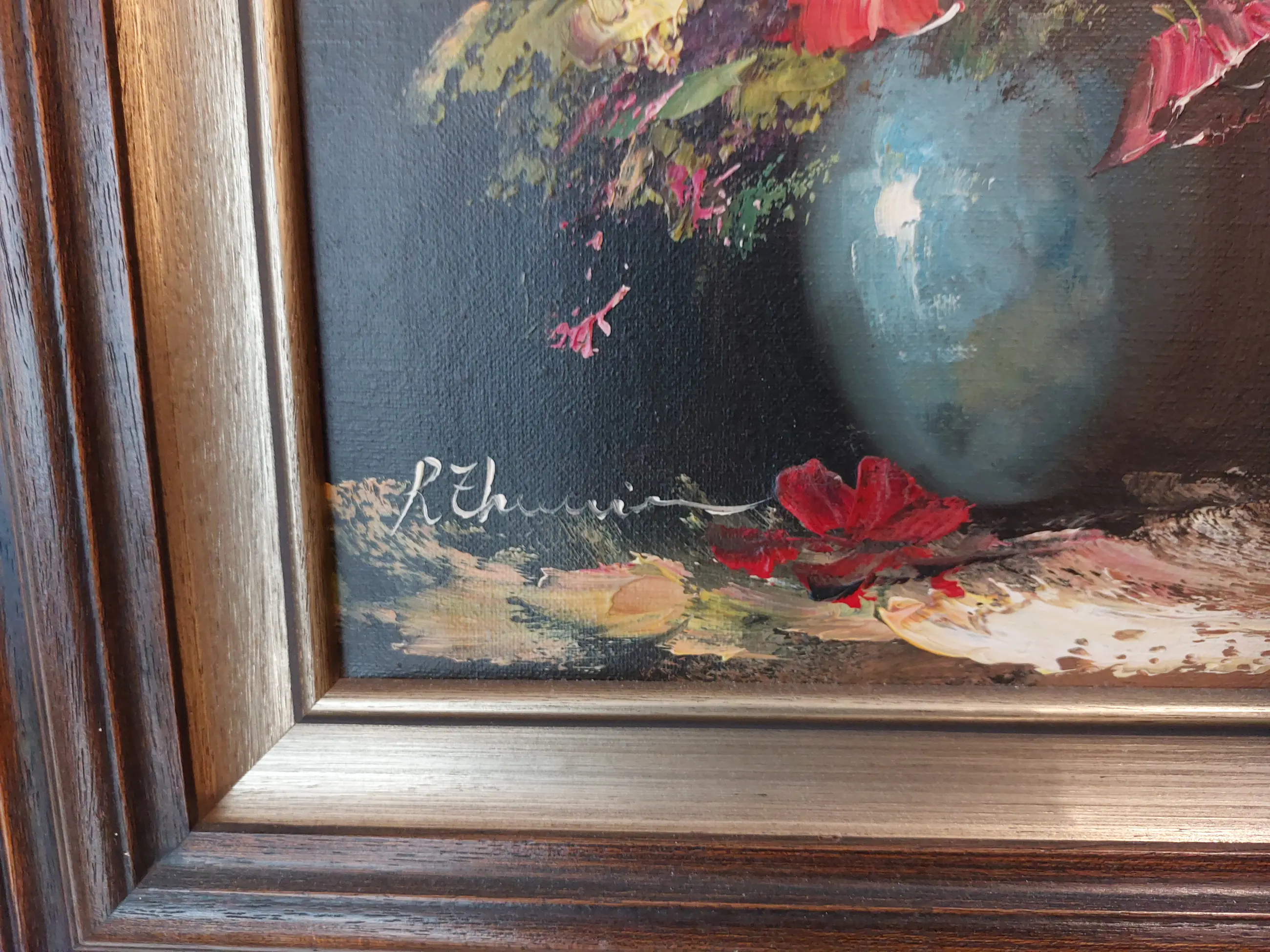 Het schilderij is in perfecte staat, inclusief de lijst.