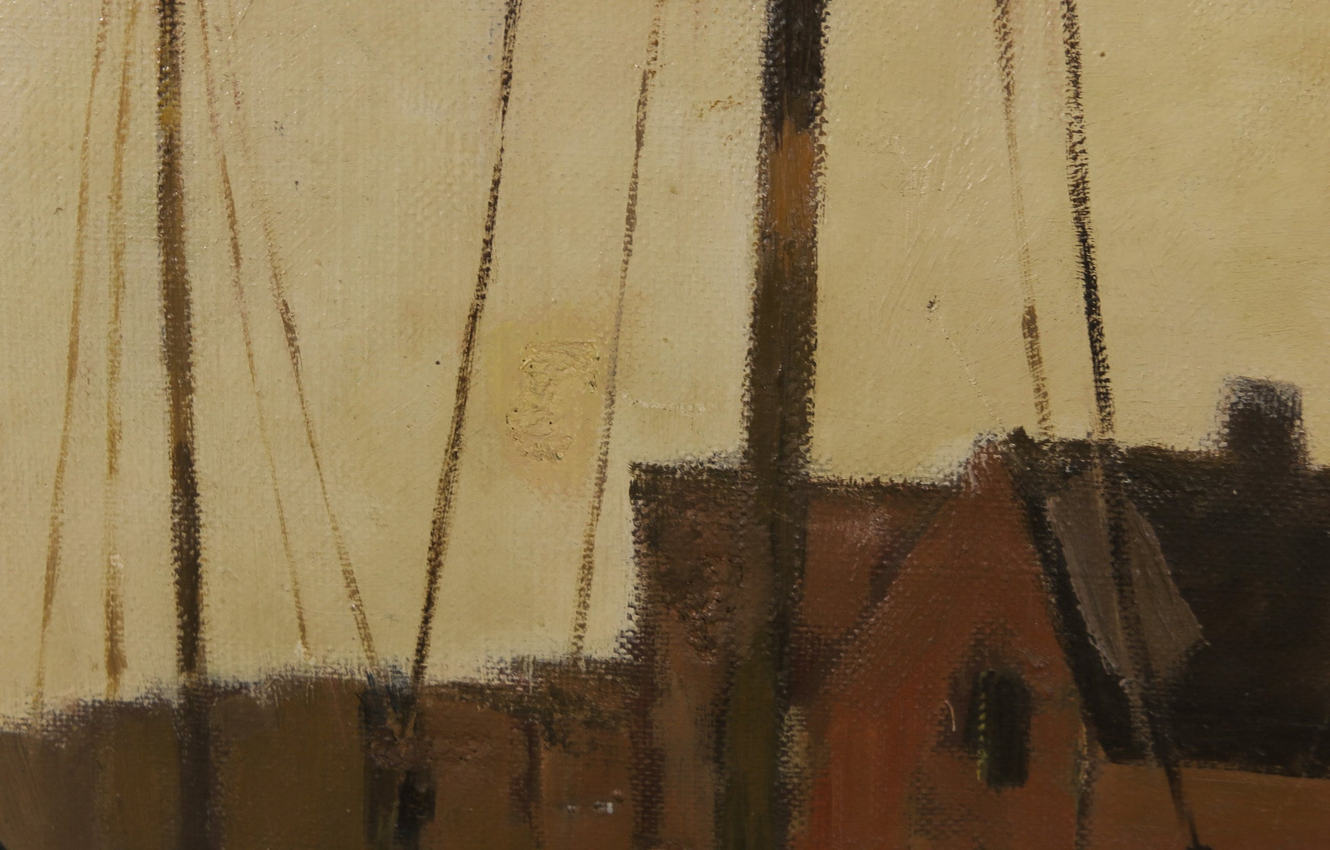 | spanning van het canvas is verminderd. Het doek heeft een paar reparaties ondergaan. | |