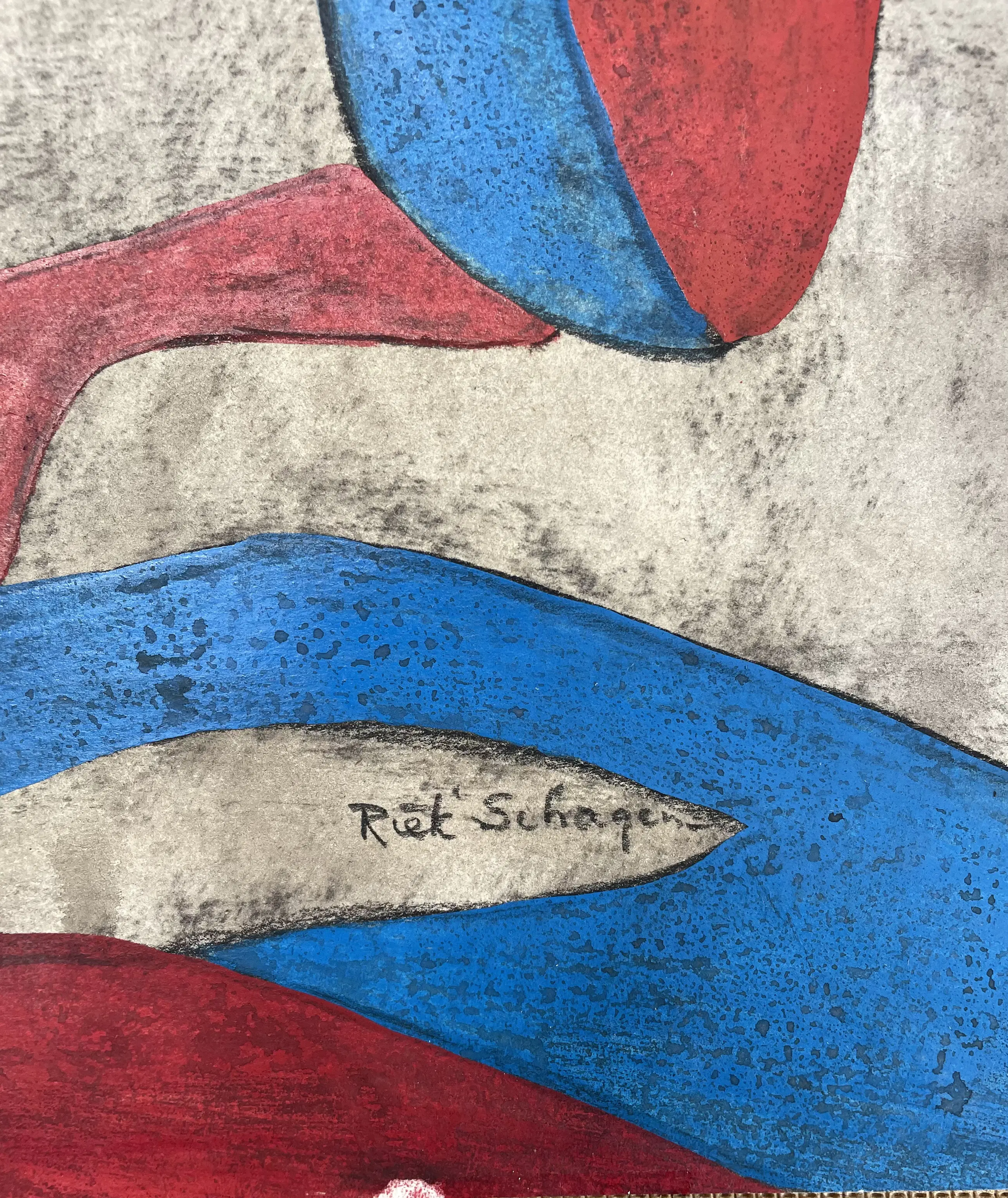 Geertruida Hendrika (Riek) Schagen werd op 15 november 1913 in Amersfoort geboren.Ze overleed op 14 juli 2008 in Vorden.Zij woonde en werkte o.a. in Amsterdam.Zij was actrice(Saartje in de serie Swiebertje),zangeres en nu een zeer gewaardeerd schilderes.Zij schilderde en tekende in hoofdzaak "figuratieve abstrakties'.Tevens was zij emailliste en kunstnijveraarster. Haar echtgenoot, die ze ontmoette toen ze bijna 40 was, was fervent schilder. Schagen nam die passie over en eigenlijk beleefde ze er meer plezier aan dan aan het acteren. „Heerlijk, dat is iets dat helemaal van jezelf is. Als actrice krijg je de rollen aangewezen, dit verzin je zelf.