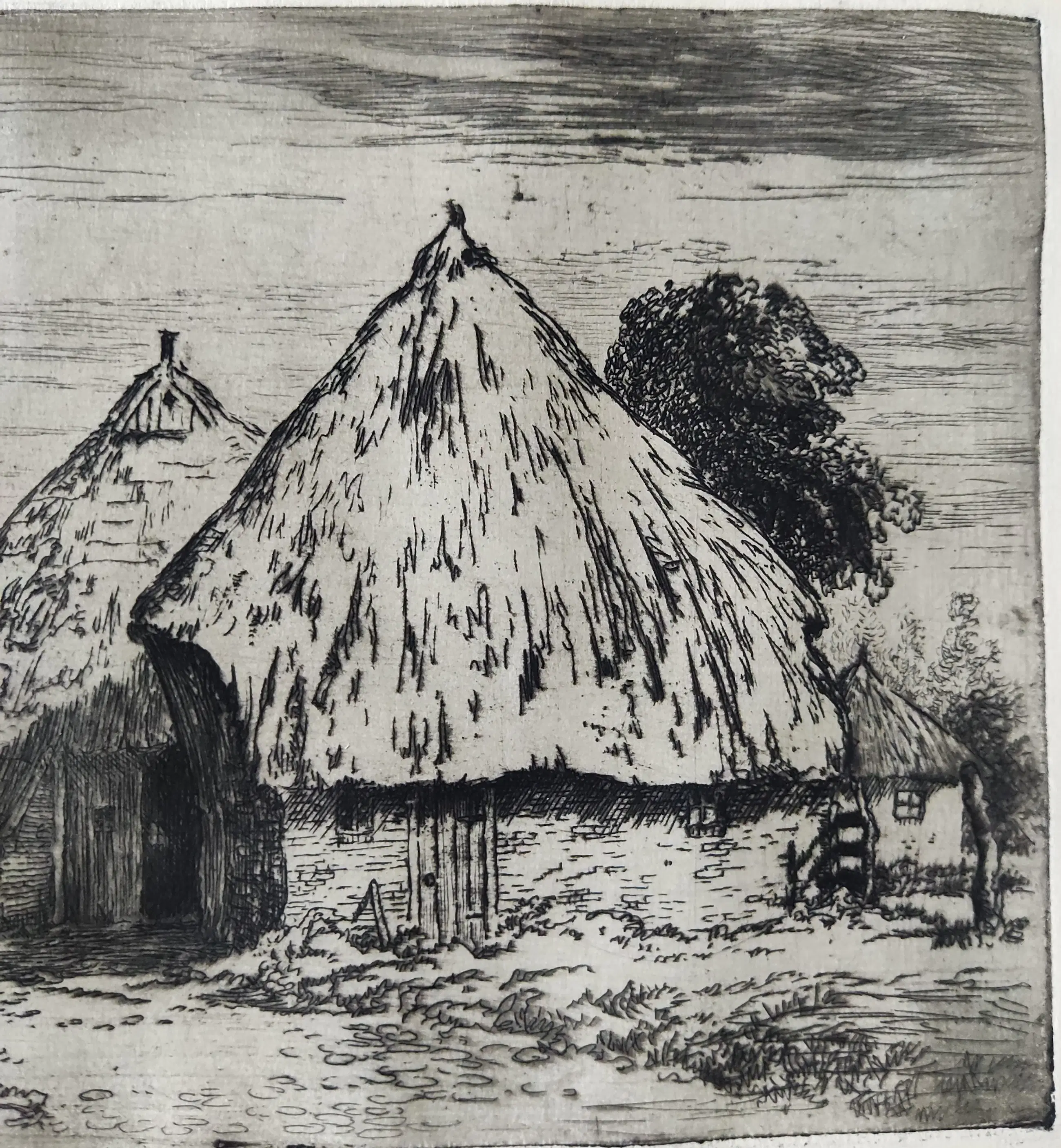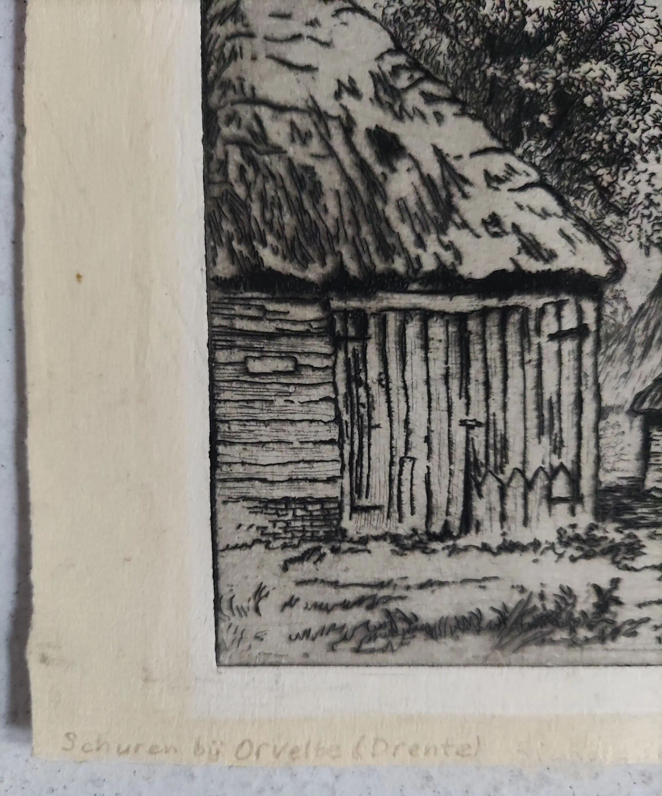 Beeldmaat 13,5x22,5 cm. Bladmaat 16x28,5 cm. Losbladig. Potlood gesigneerd rechtsonder.Riekele Prins werd geboren te Kollumerzwaag op 25 april 1905 en overleed te Groningen op 14 mei 1954. Leerling van Jan Derksen Staats. Verder autodidact. Graficus, schilder en tekenaar van vooral het Groninger landschap. Lid van de Vereniging tot bevordering der grafische kunsten "De Grafische".