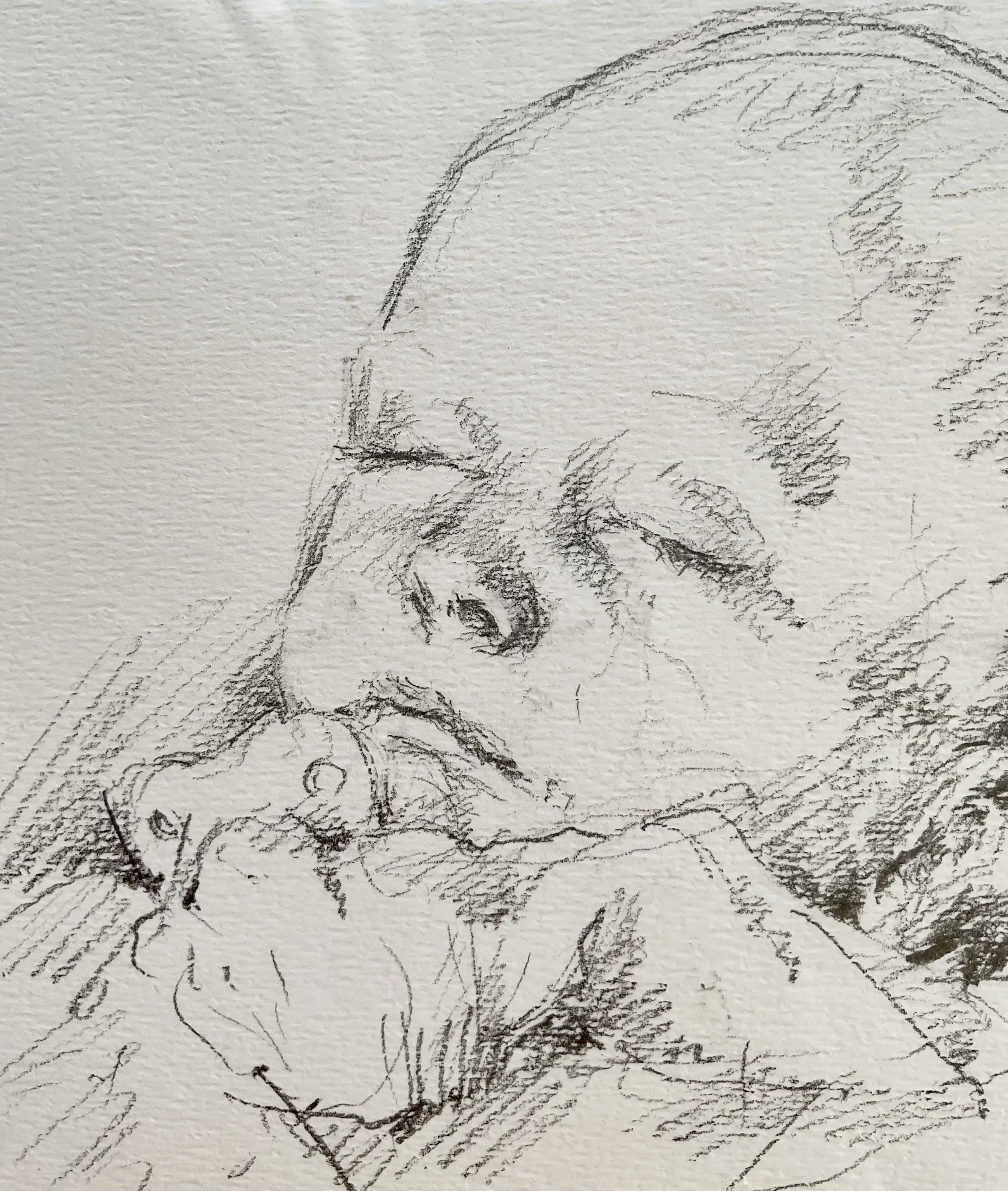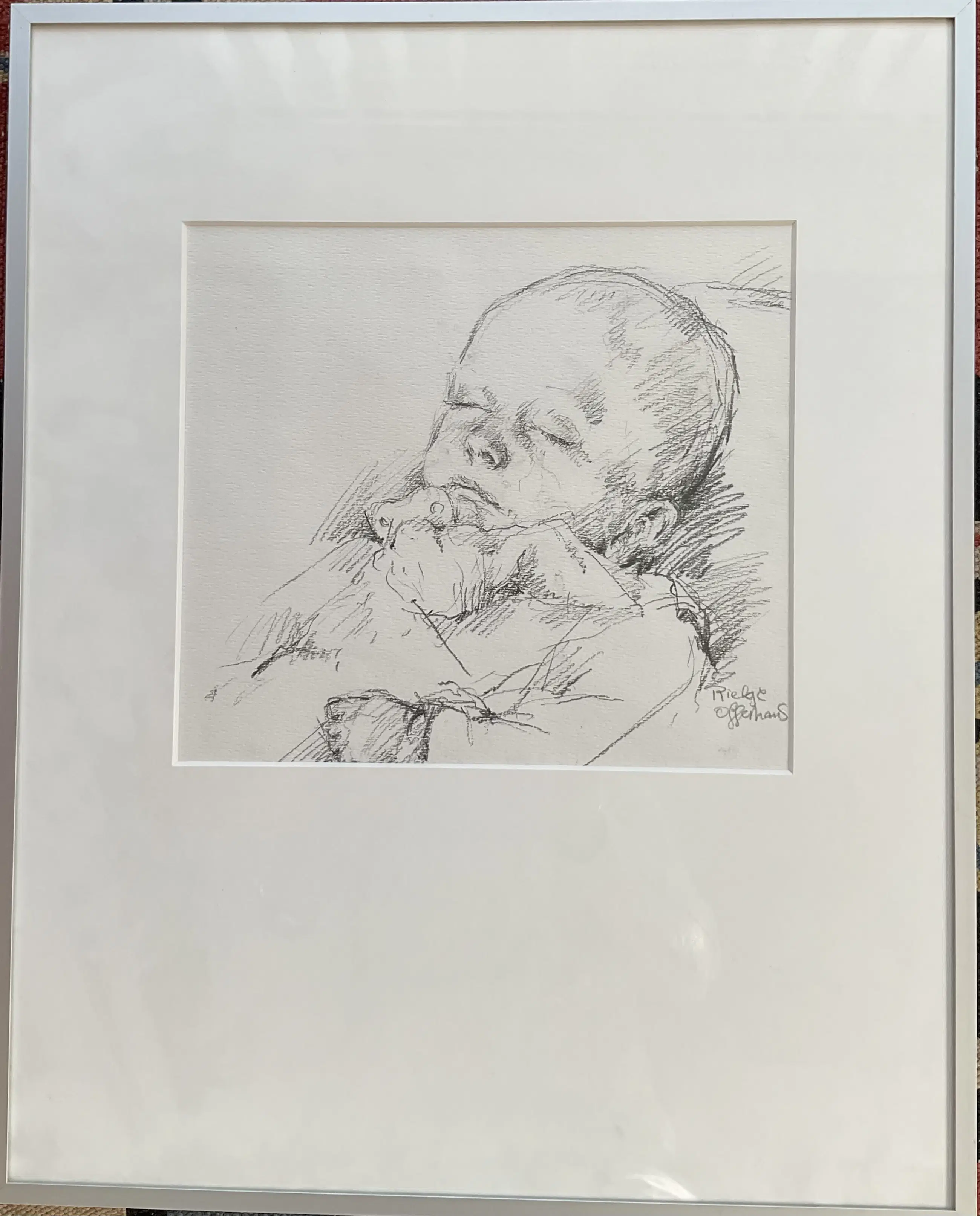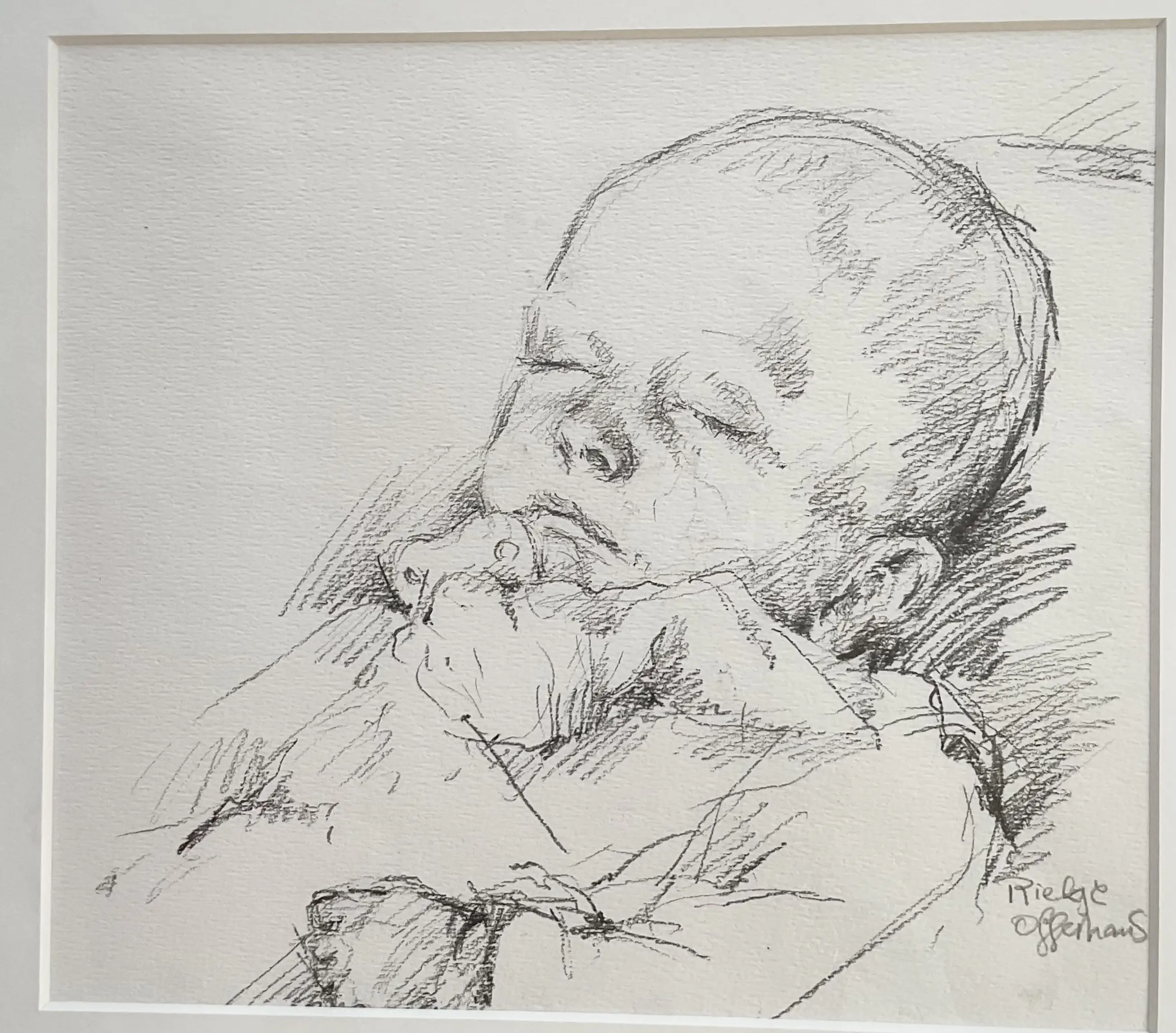 Riekje Offerhaus, Slapende baby Potloodtekening, gesigneerd In passe-partout Afmetingen 51x41 cm Conditie uitstekend